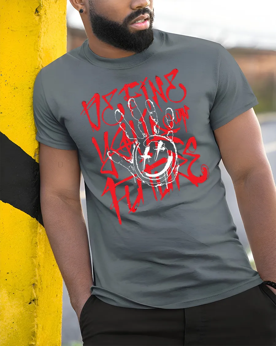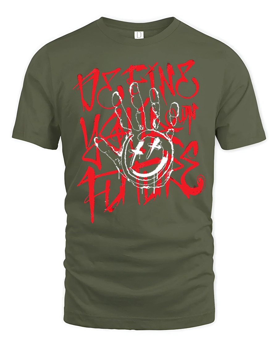Define Your Own Rules Graffiti Hand Street Art T Shirt delivers a bold and rebellious message through an expressive graffiti inspired design featuring a striking hand graphic and edgy typography.