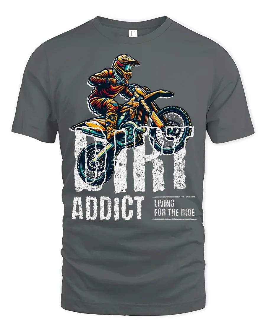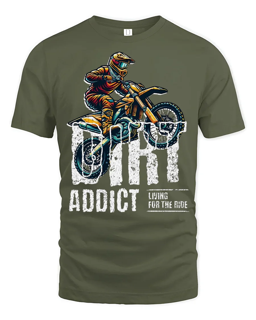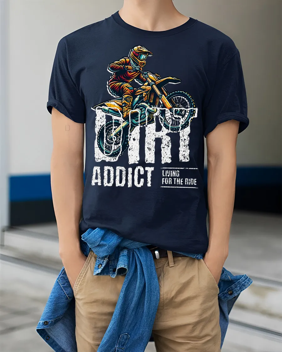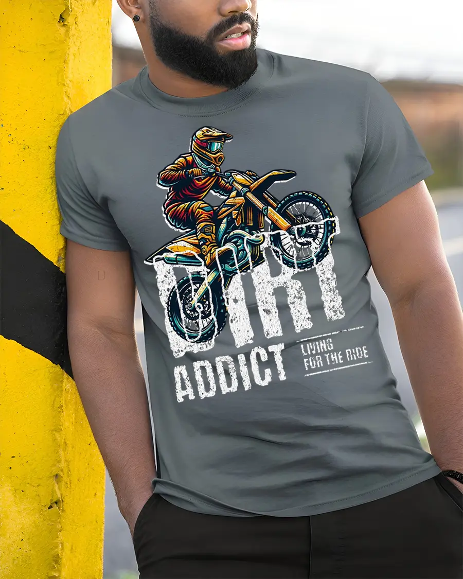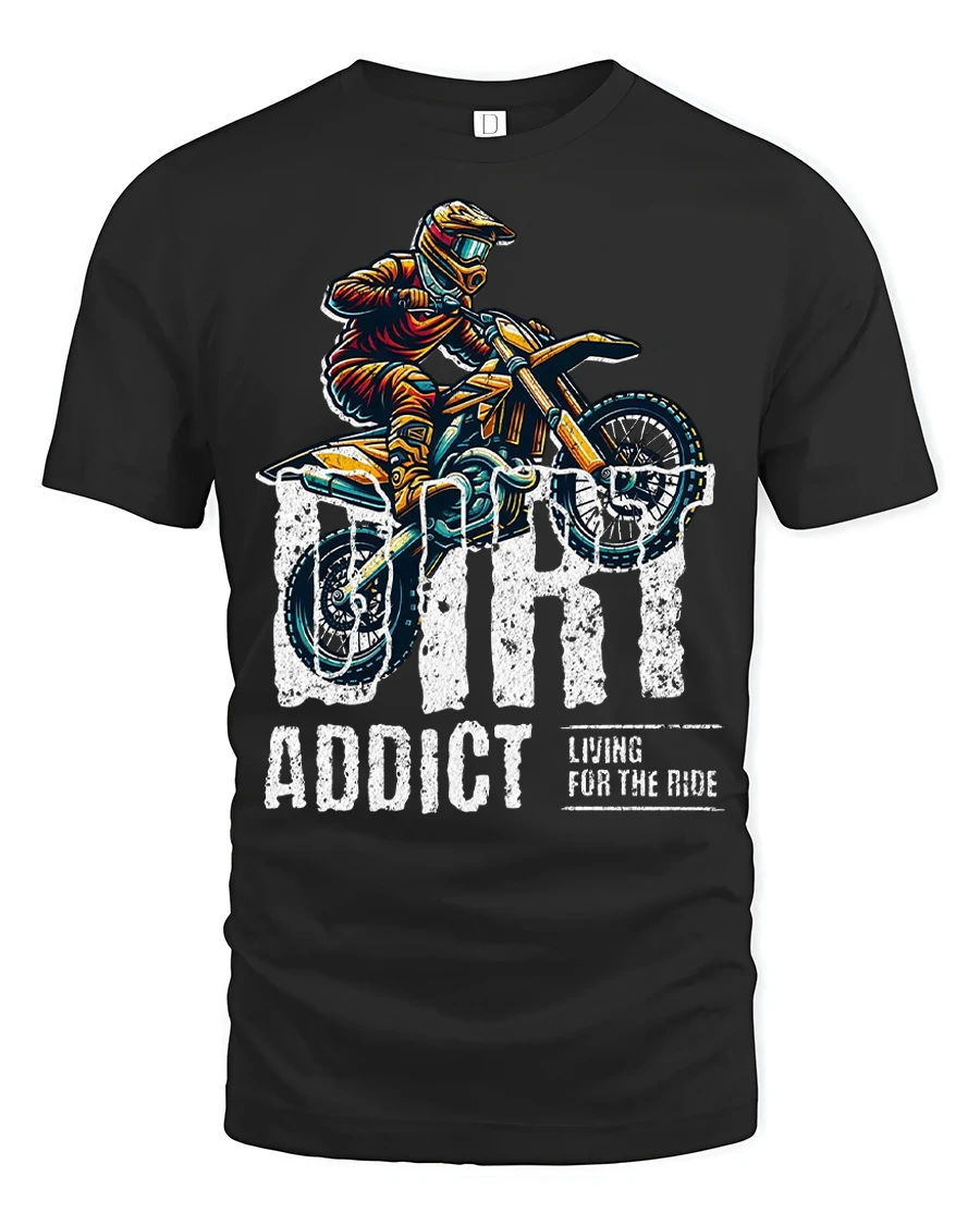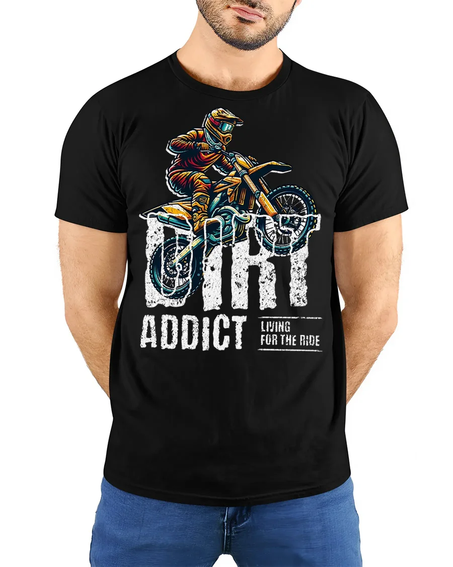Fuel your passion for speed and adrenaline with the Dirt Addict Graphic T Shirt Motocross Rider Adventure Tee. Featuring an action packed dirt bike design and bold lettering, this shirt captures the thrill of every jump, trail, and ride. It is a standout choice for anyone who loves motocross culture and adventurous style.