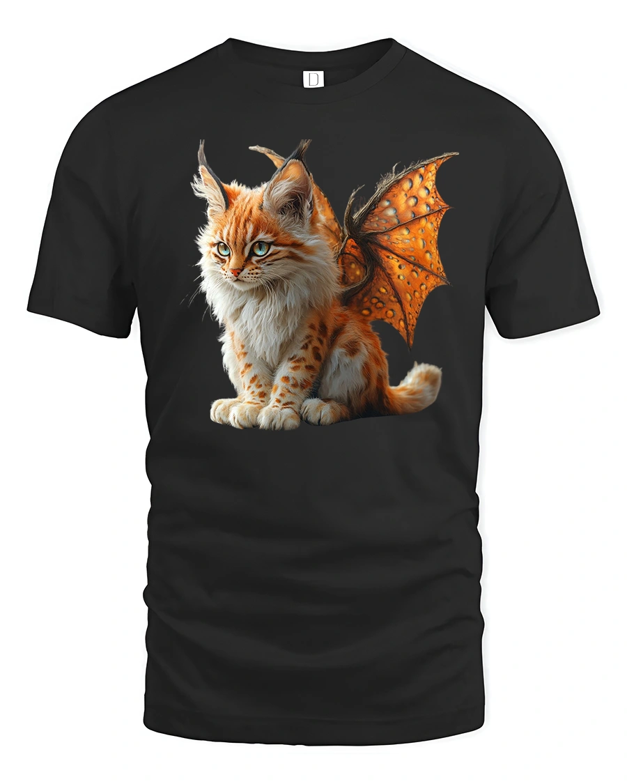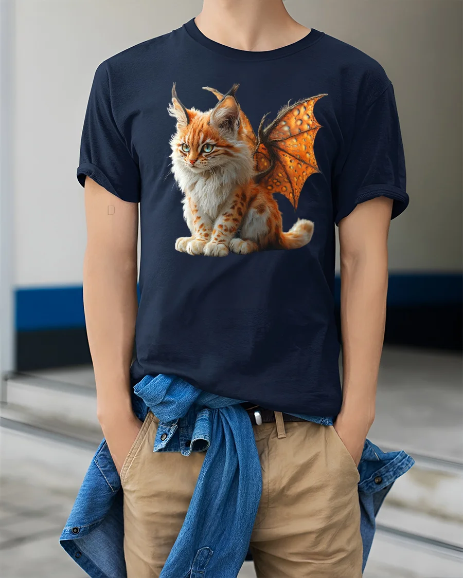 Crafted from soft, durable cotton blend material, this fantasy dragon cat t-shirt ensures comfort while maintaining its vivid print quality.