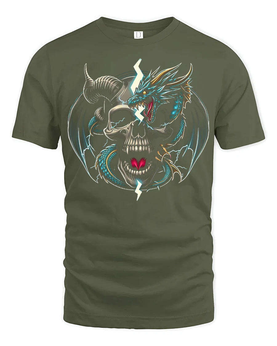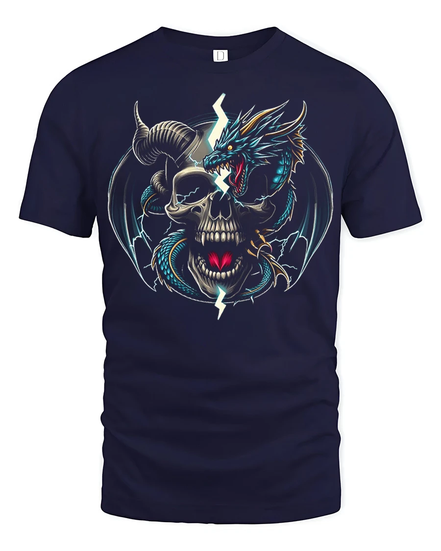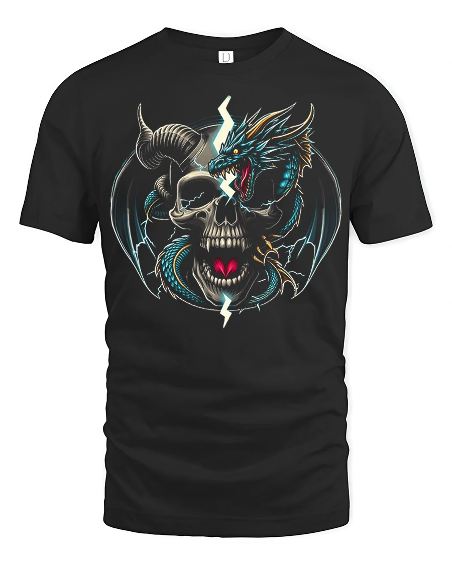 Dragon Skull Lightning T Shirt Dark Fantasy Graphic Tee delivers a bold fusion of mythic energy and striking design that instantly commands attention.