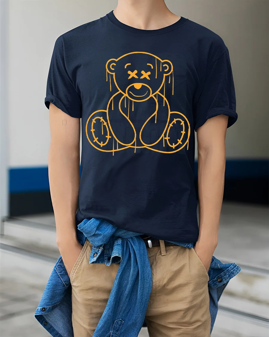 This design captures modern streetwear vibes, turning a classic teddy bear into a unique piece of wearable art.