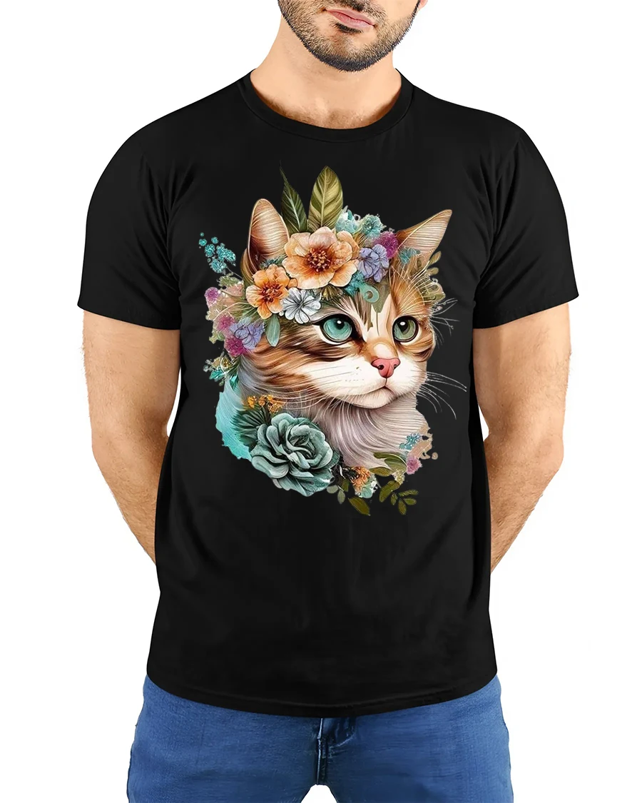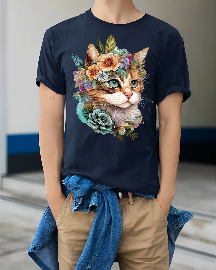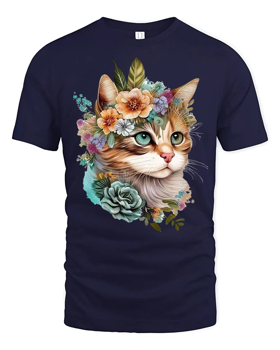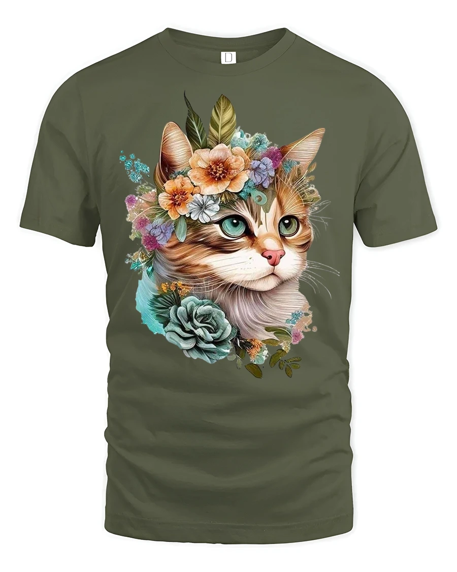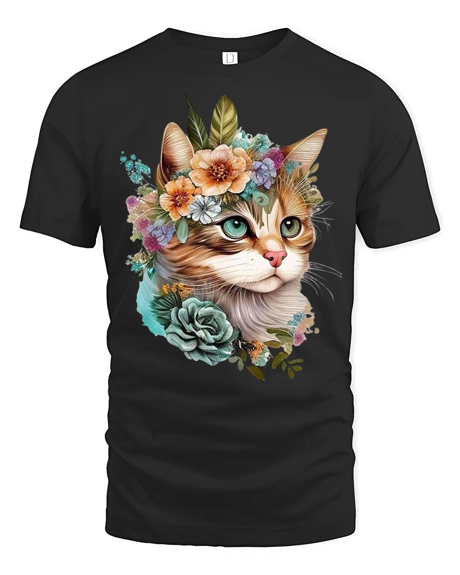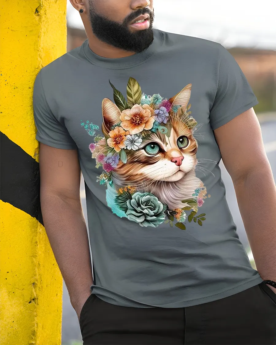 Elegant Floral Cat Tee with Cute Artistic Kitty Illustration brings a graceful blend of charm, nature, and artistic detail to your wardrobe. This design features a beautifully illustrated cat wearing a crown of flowers, combining soft botanical elements with warm expressive features that make the artwork feel lively and heartfelt. The floral arrangement adds a romantic and serene touch, creating a visually stunning composition that stands out effortlessly.