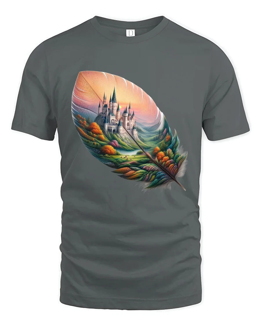 Fantasy Castle Feather Artwork Magical Landscape T-Shirt