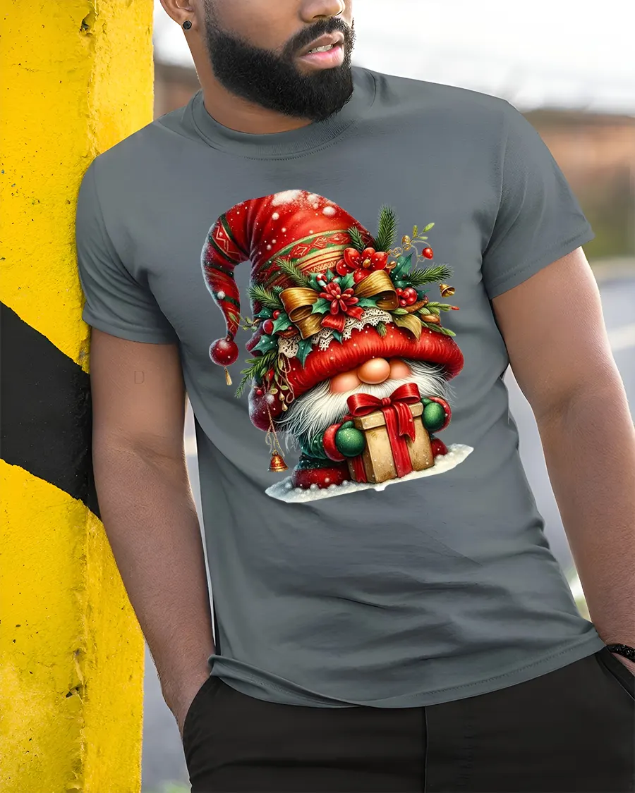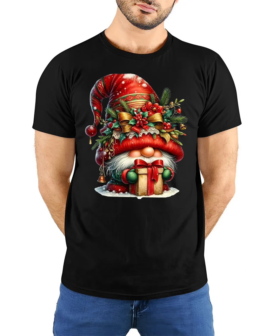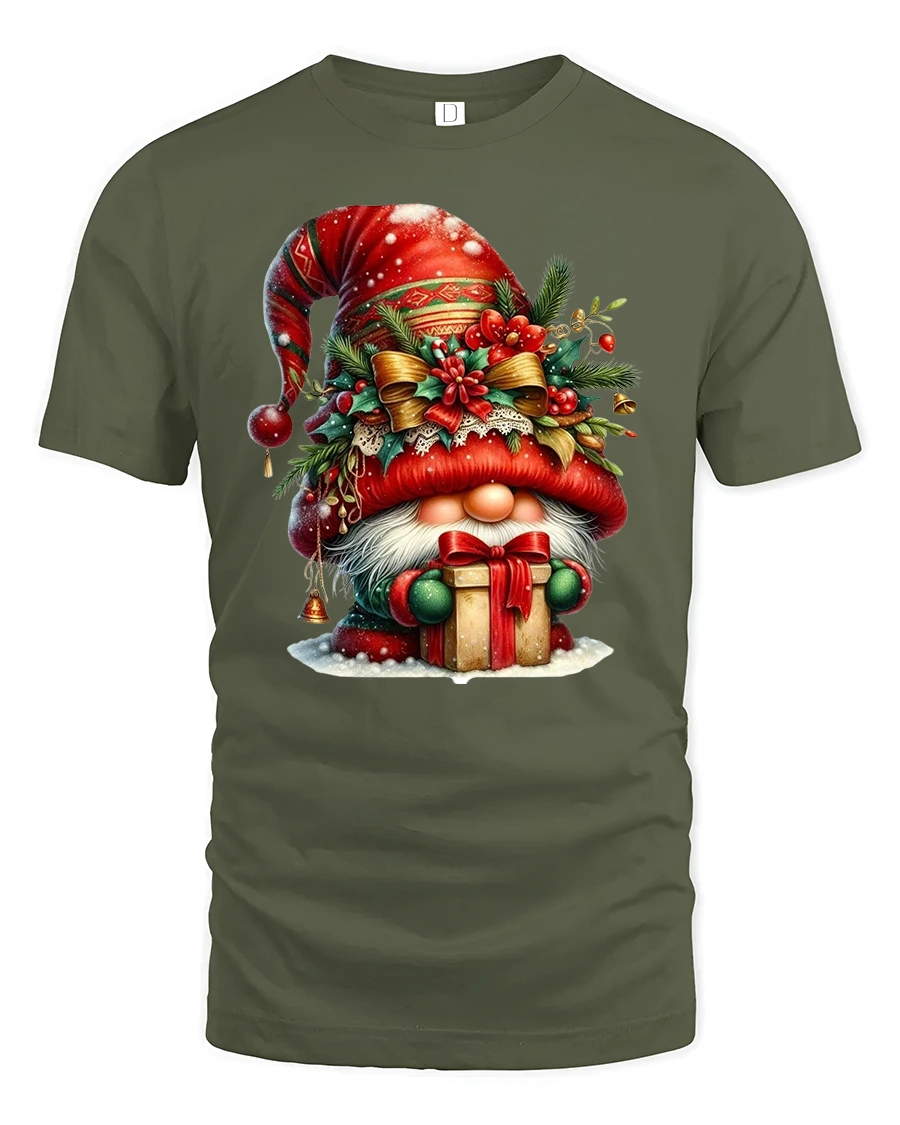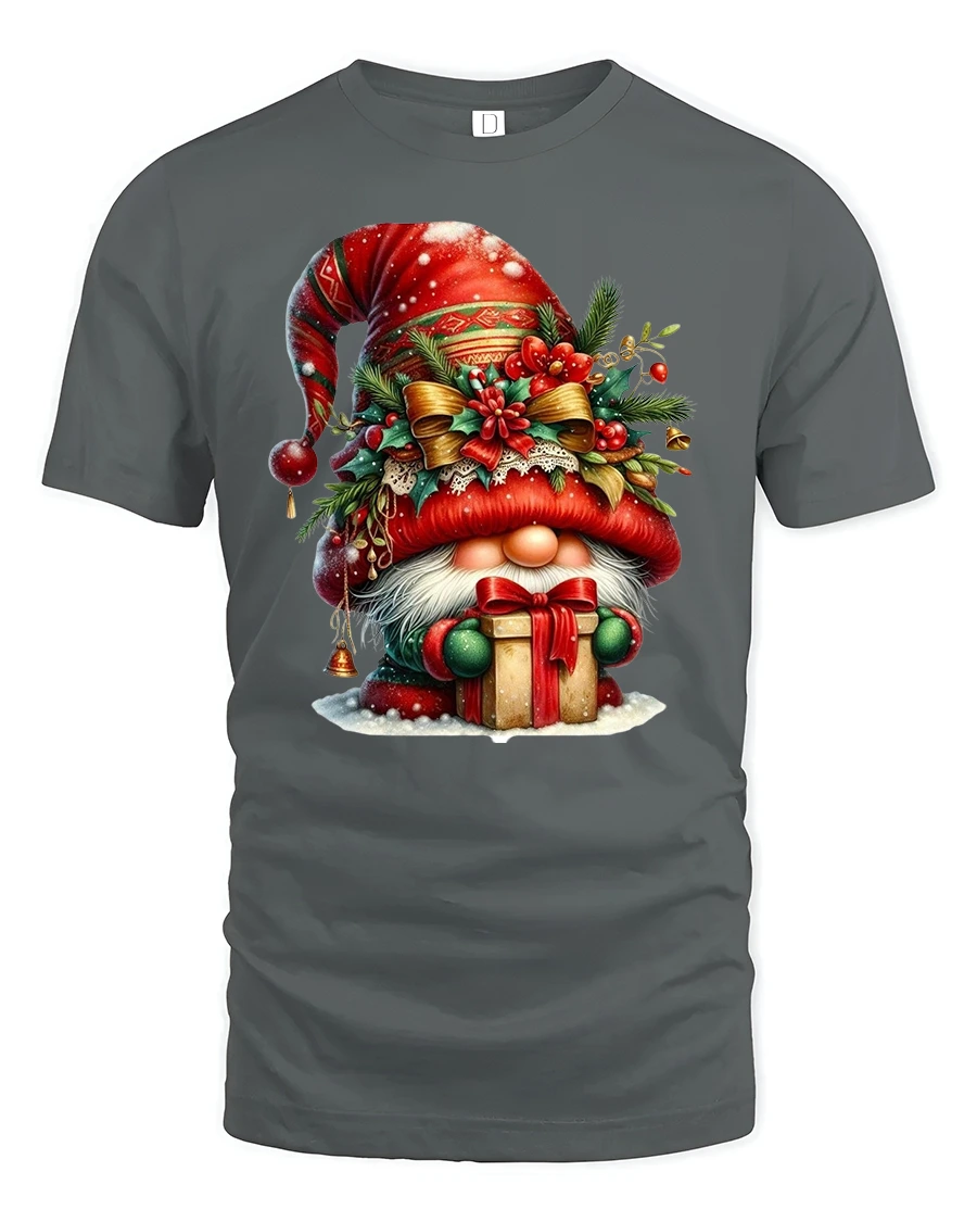 This Festive Christmas Gnome Holding Gift Graphic Tee Holiday Tshirt captures the whimsical charm of the season with a beautifully detailed holiday gnome. Dressed in a cozy red hat adorned with berries, bows and greenery, the cheerful gnome holds a wrapped present, creating the perfect blend of warmth, magic and Christmas spirit. The vibrant colors and charming illustration make this tee a standout choice for holiday lovers of all ages.