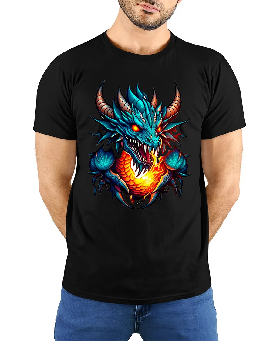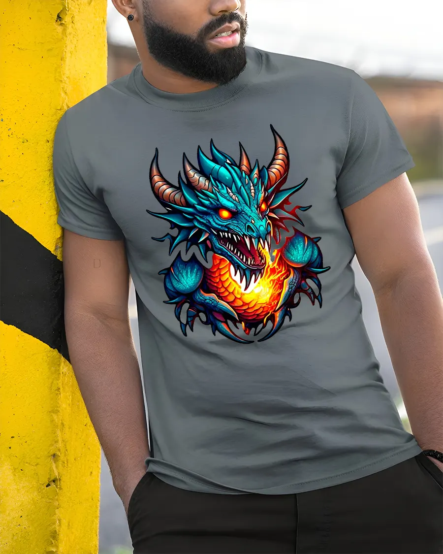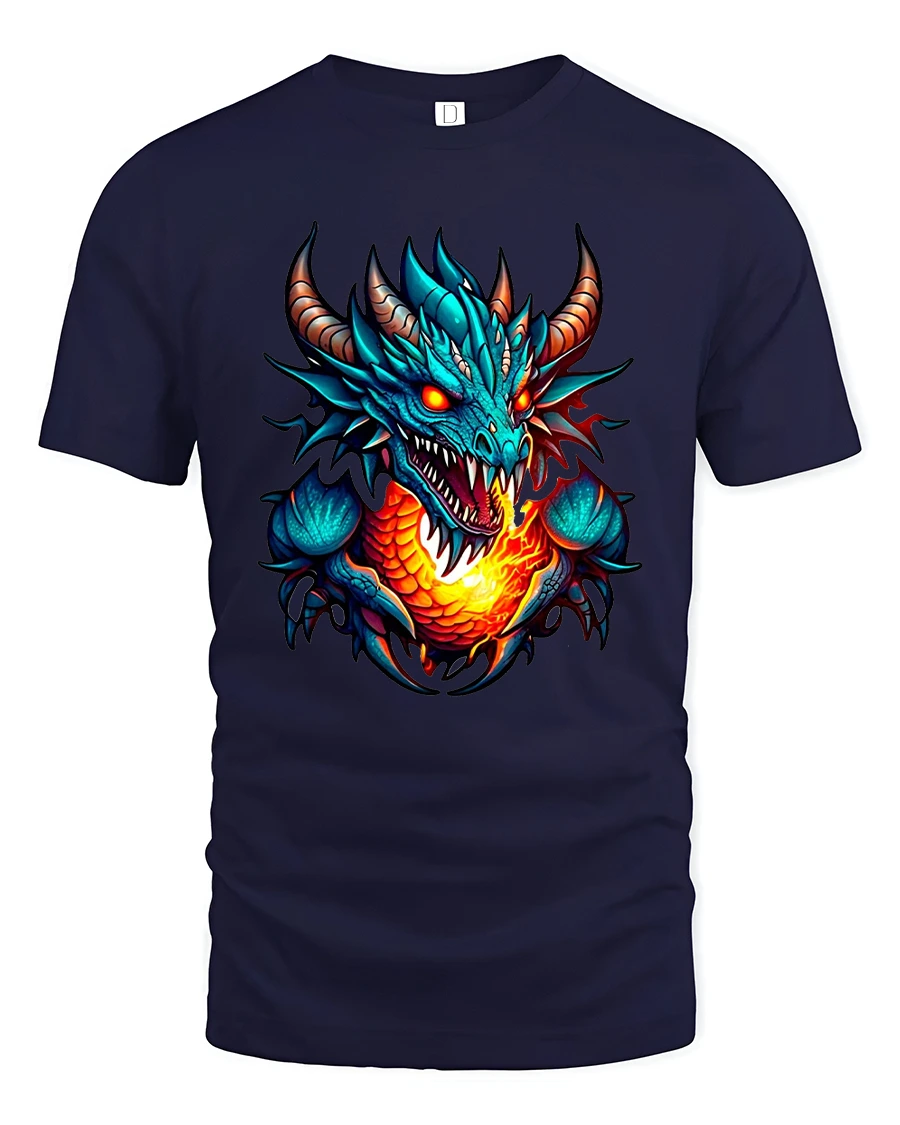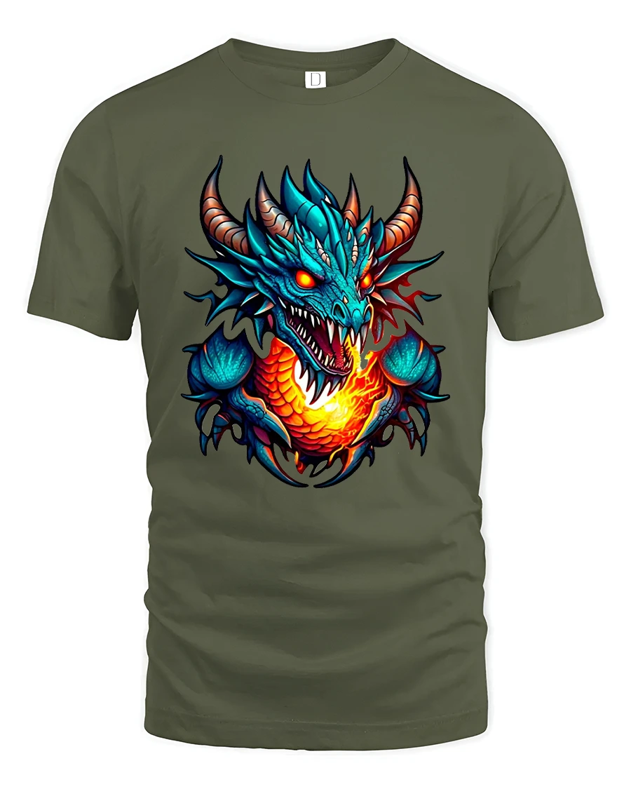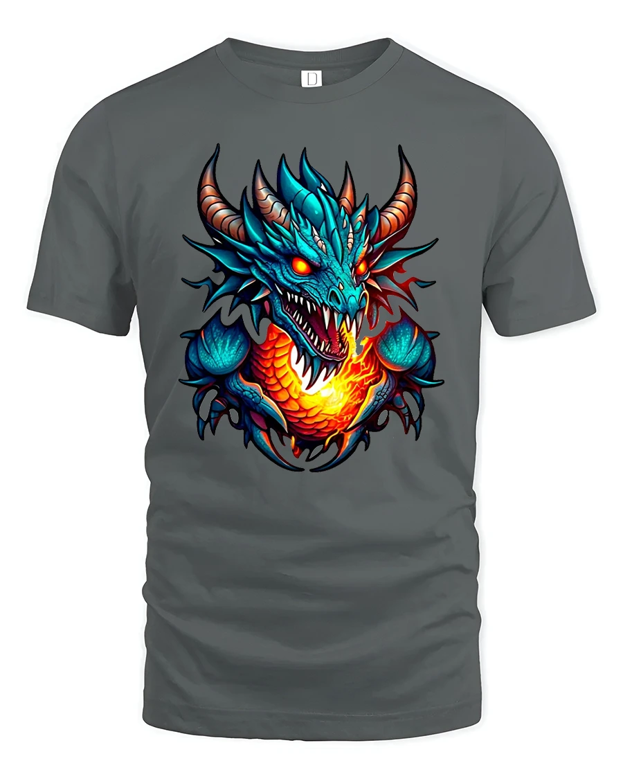 Fierce Fire Dragon Art Tee Powerful Fantasy Creature Graphic delivers intense energy through a striking fantasy design.