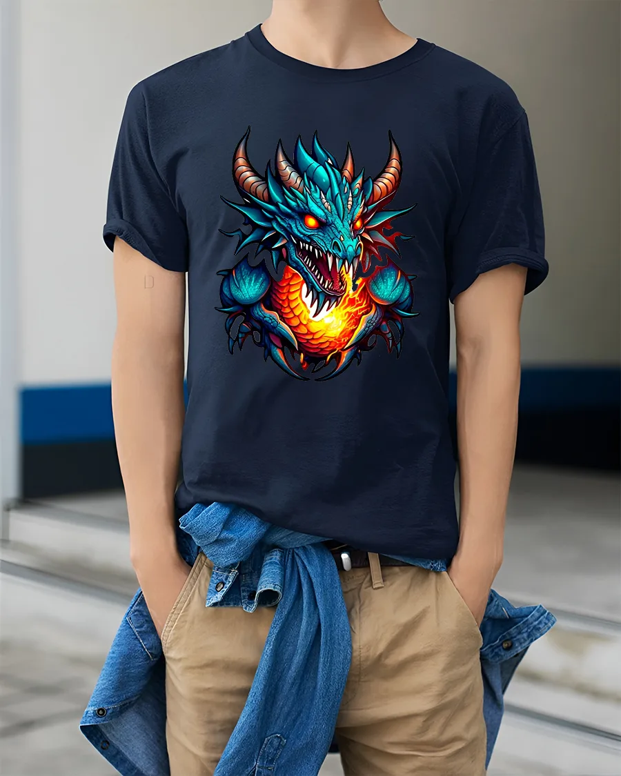 Fierce Fire Dragon Art Tee Powerful Fantasy Creature Graphic is printed with high resolution detail that keeps colors bold and vivid.
