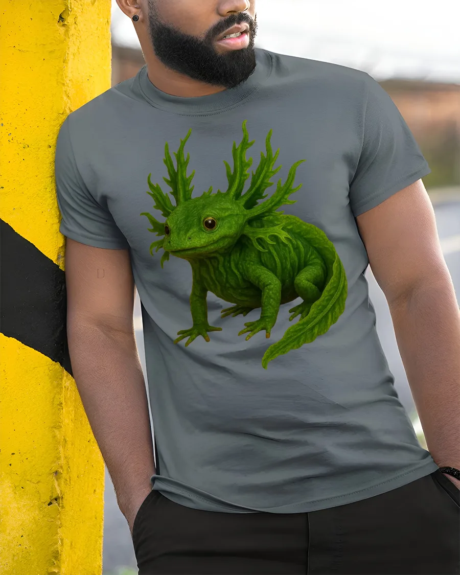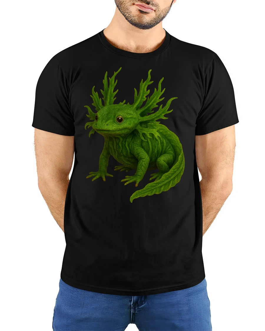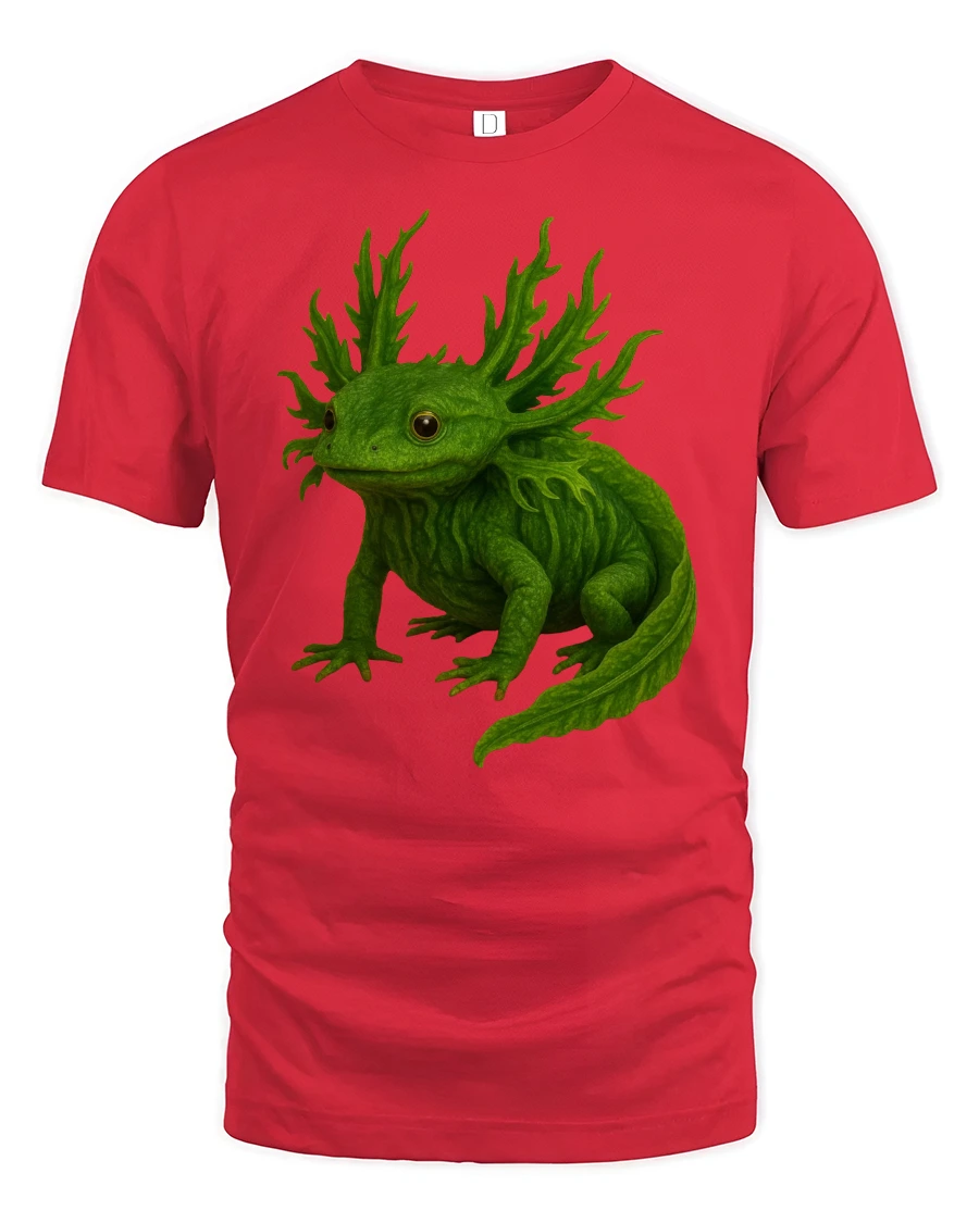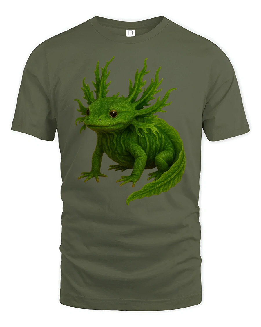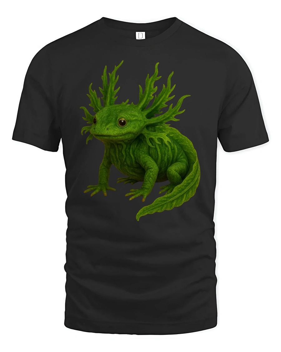 This Forest Axolotl Creature Tee showcases a beautifully imagined nature-inspired axolotl with leafy details and vibrant green tones. Blending fantasy and wildlife art, this captivating design is perfect for fans of unique creatures, botanical aesthetics, and imaginative artwork. The intricate textures and organic shapes give the creature a magical forest-like appearance that instantly draws attention.