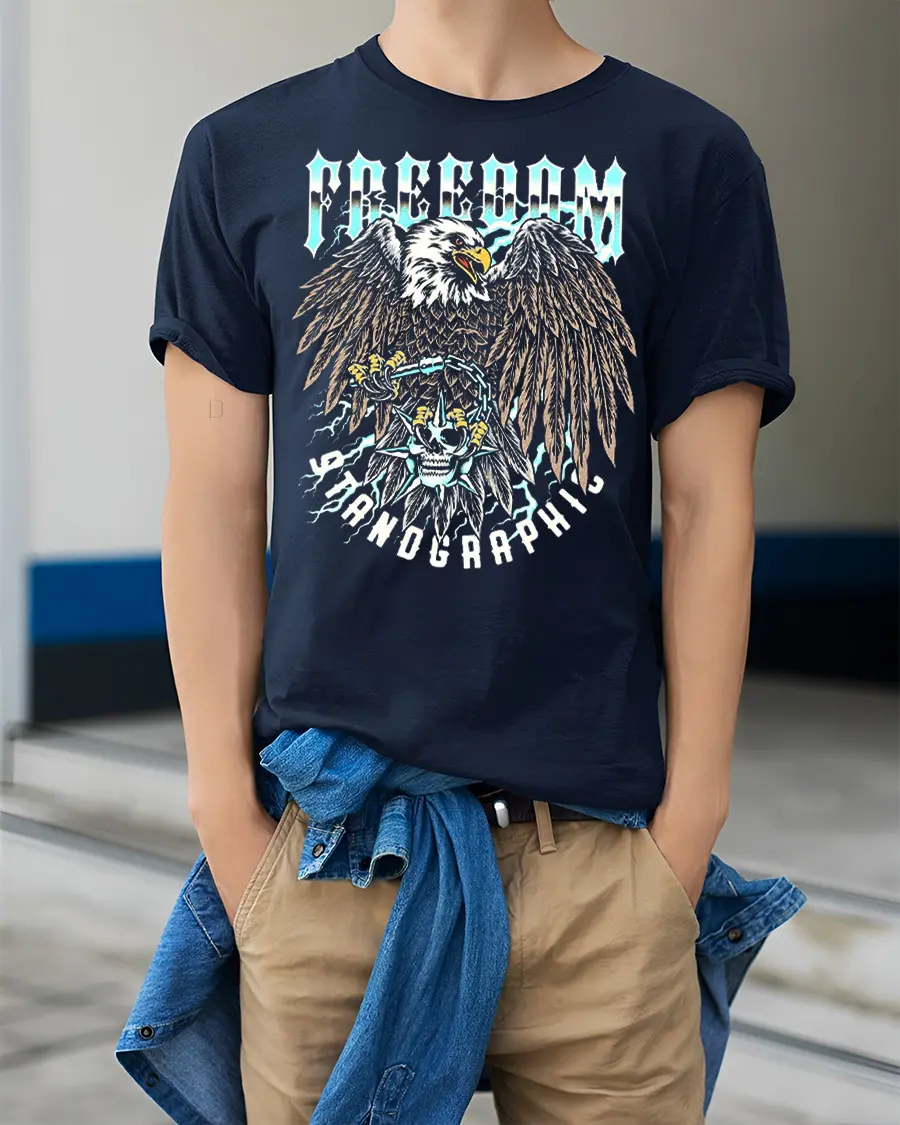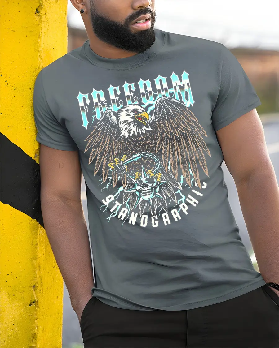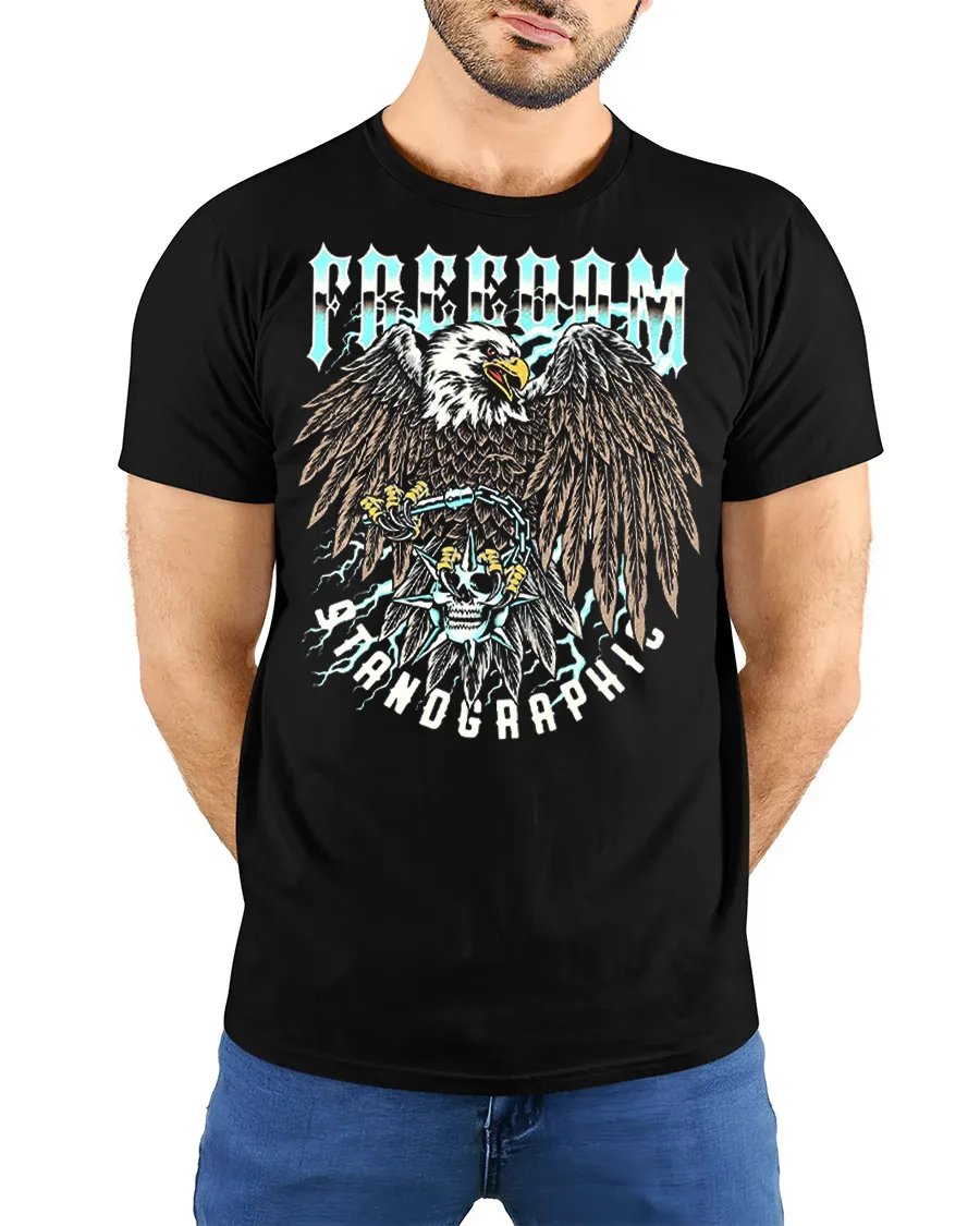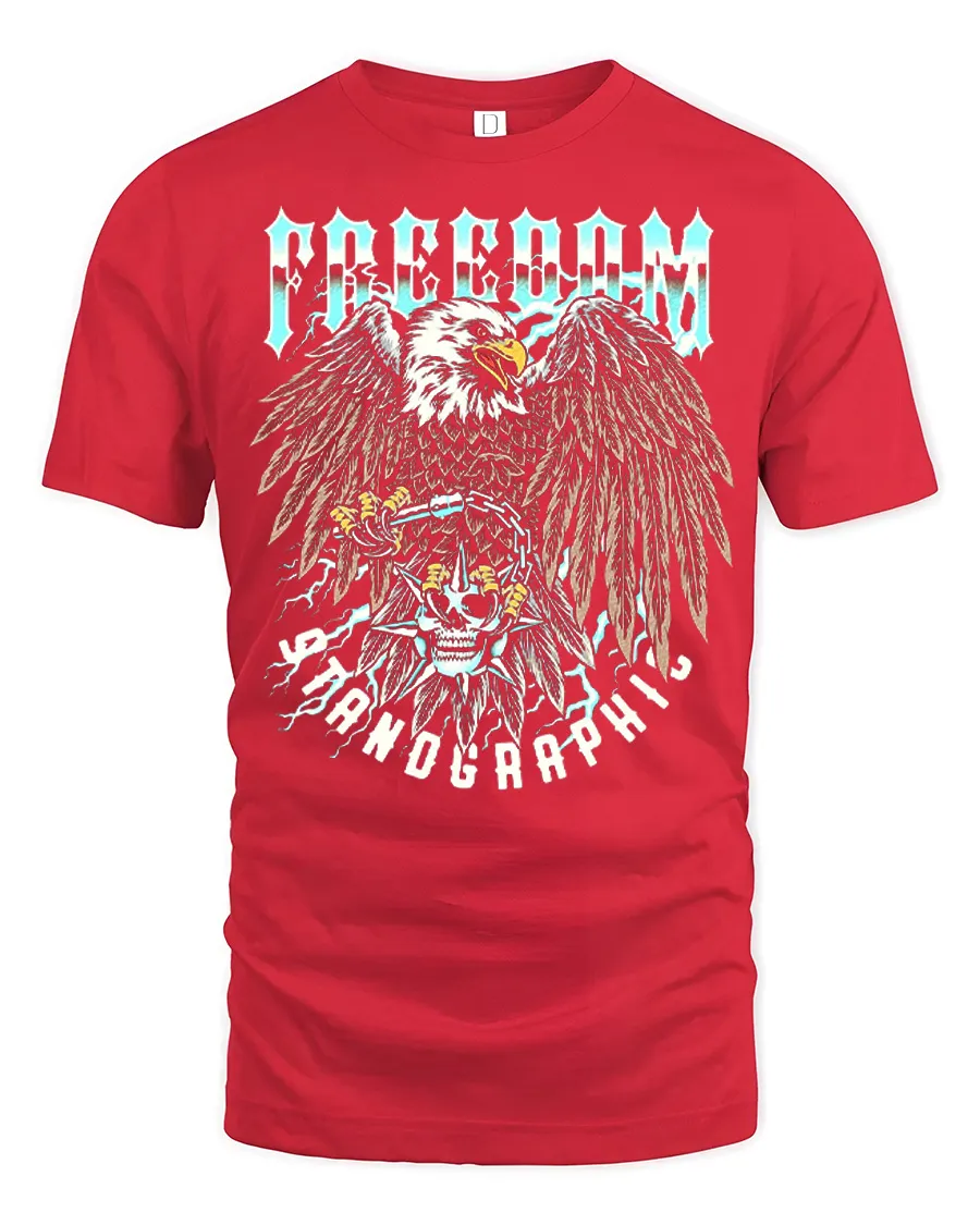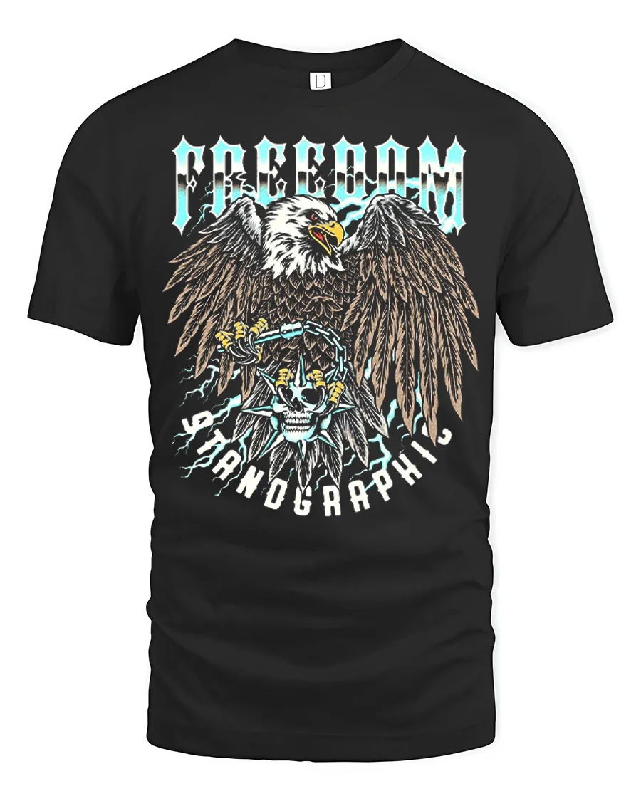 Freedom Eagle Skull Lightning Patriotic Graphic T Shirt Tee captures bold American spirit with a striking powerful design.