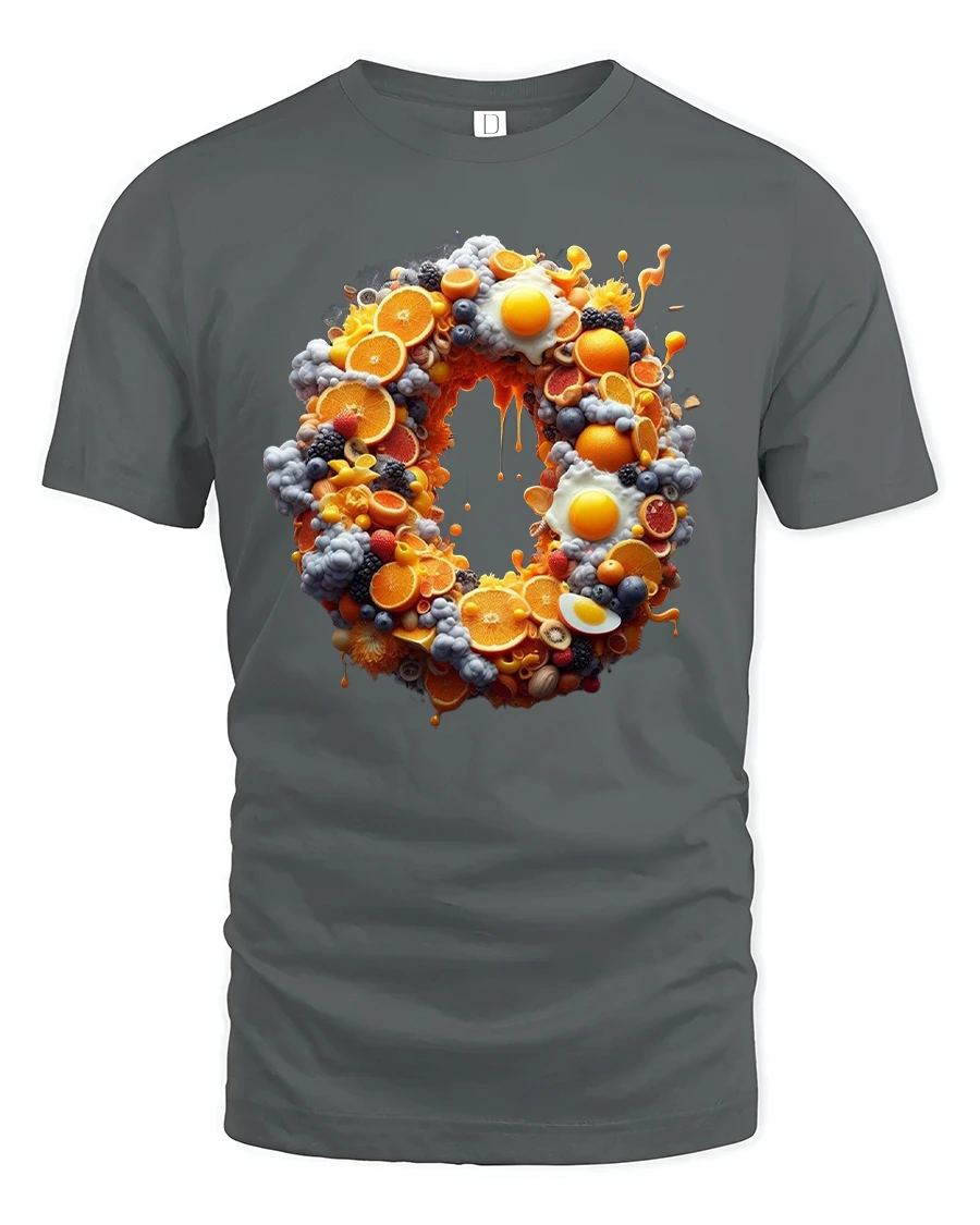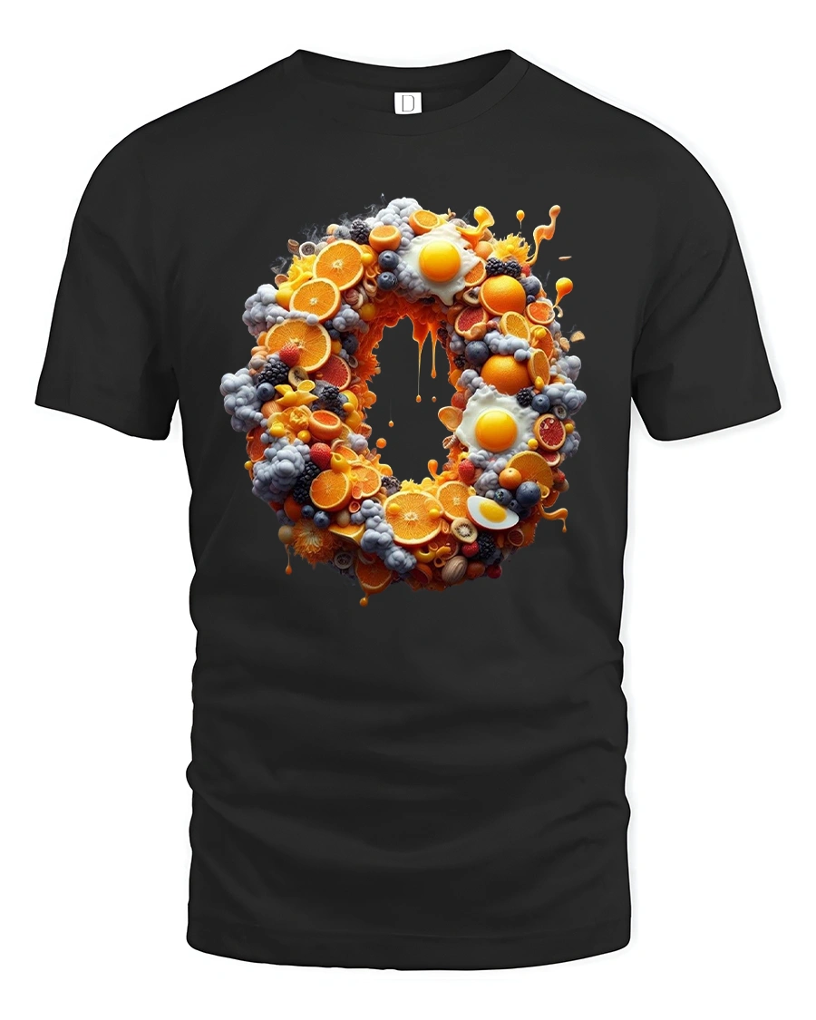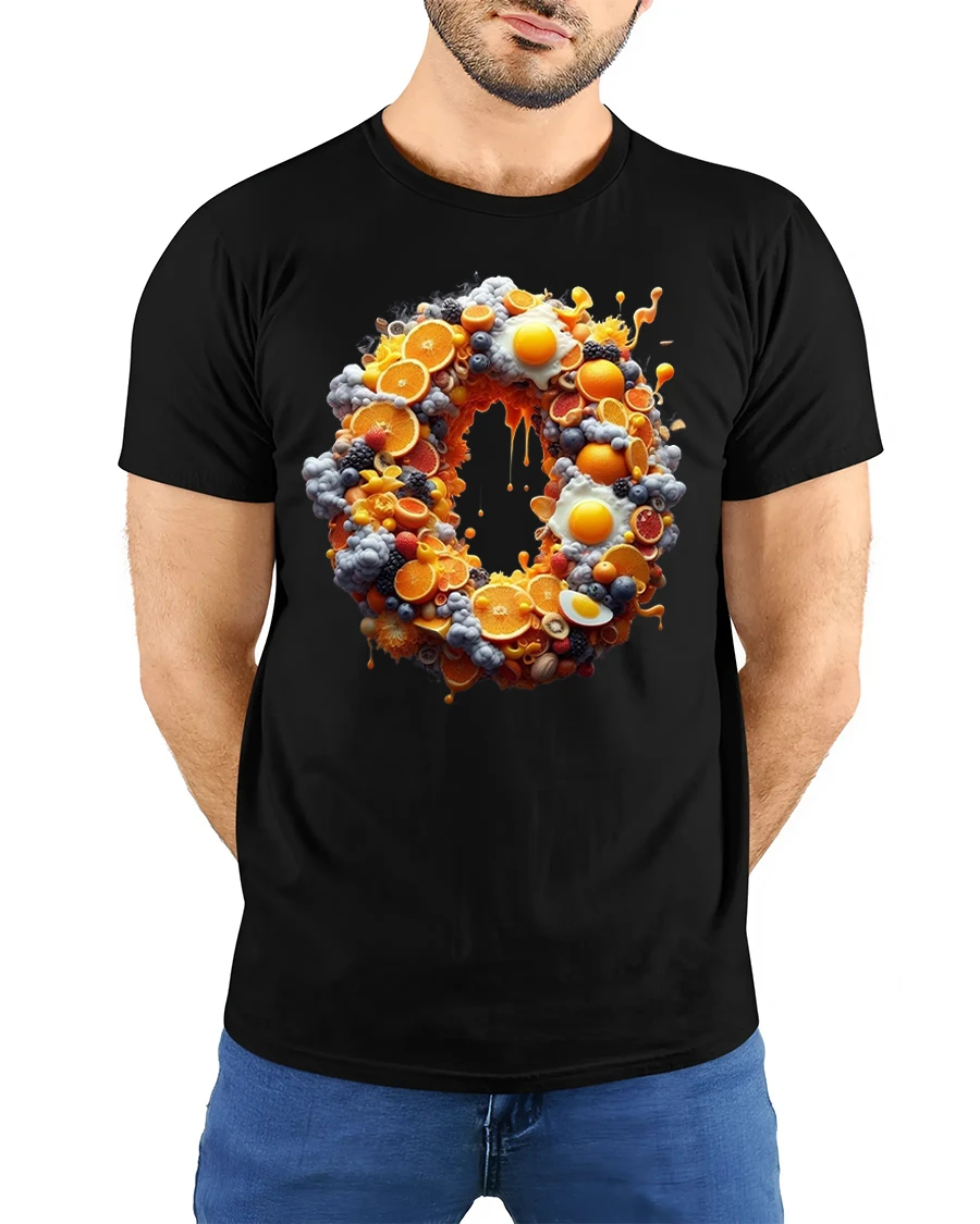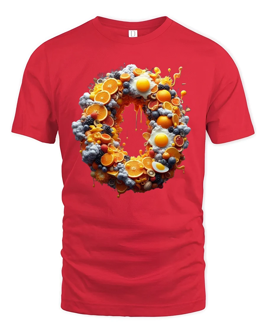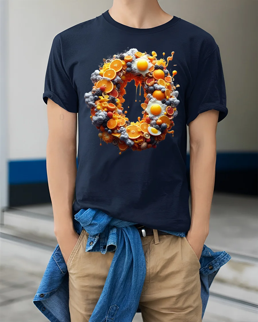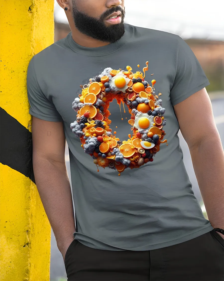 Fruity Breakfast Splash Graphic Art T-Shirt is the ultimate statement piece for foodies, brunch lovers, and anyone who appreciates bold, colorful art. This eye-catching design features a dynamic explosion of sunny-side-up eggs, fresh orange slices, juicy berries, and fluffy whipped textures – all coming together in a vibrant circular composition that pops with life.