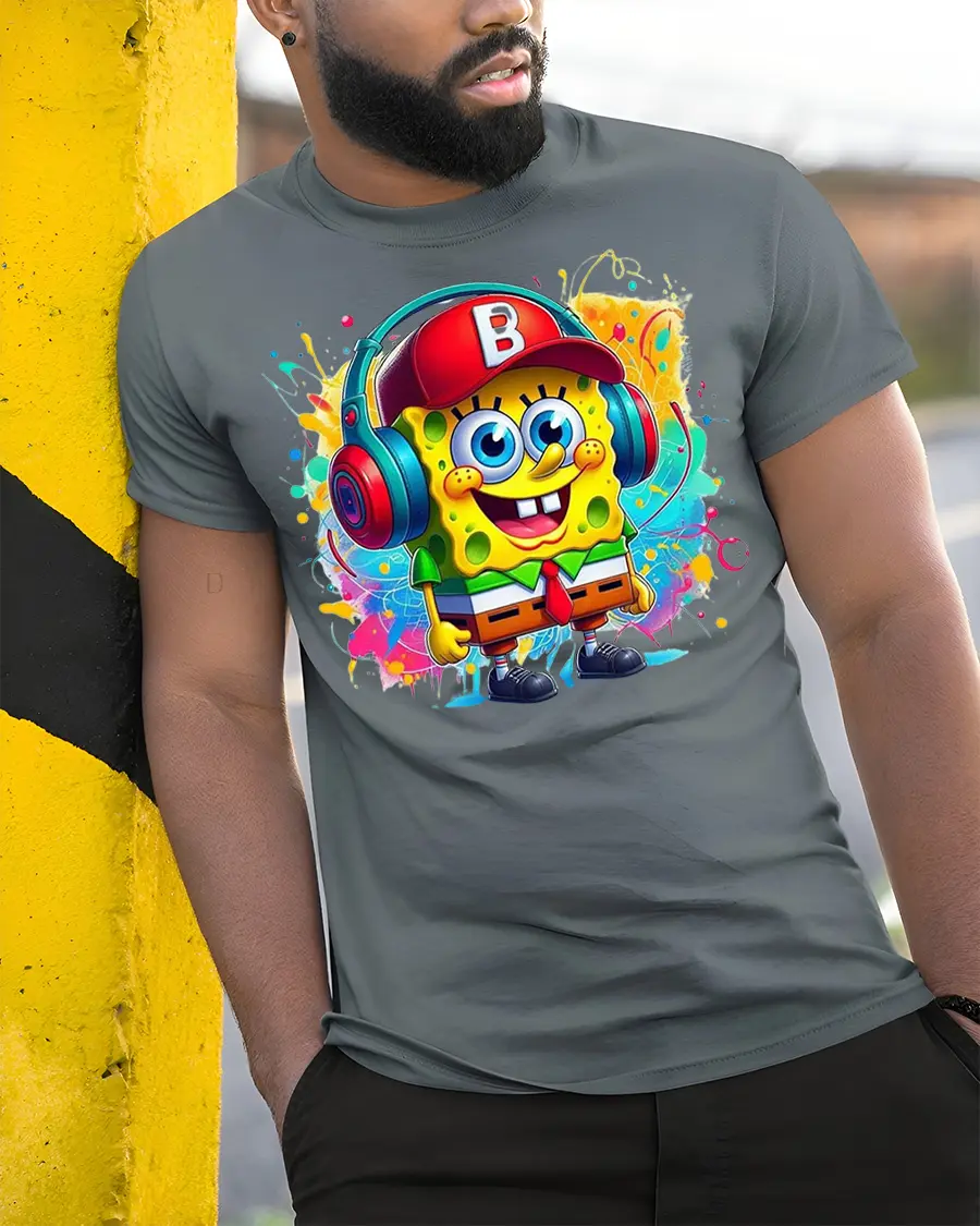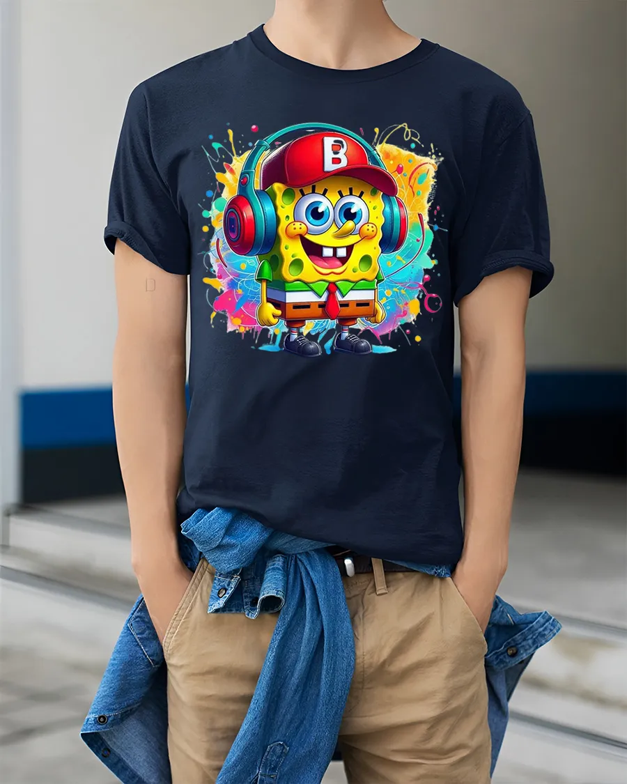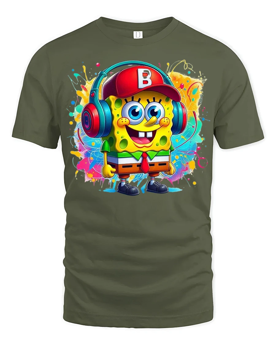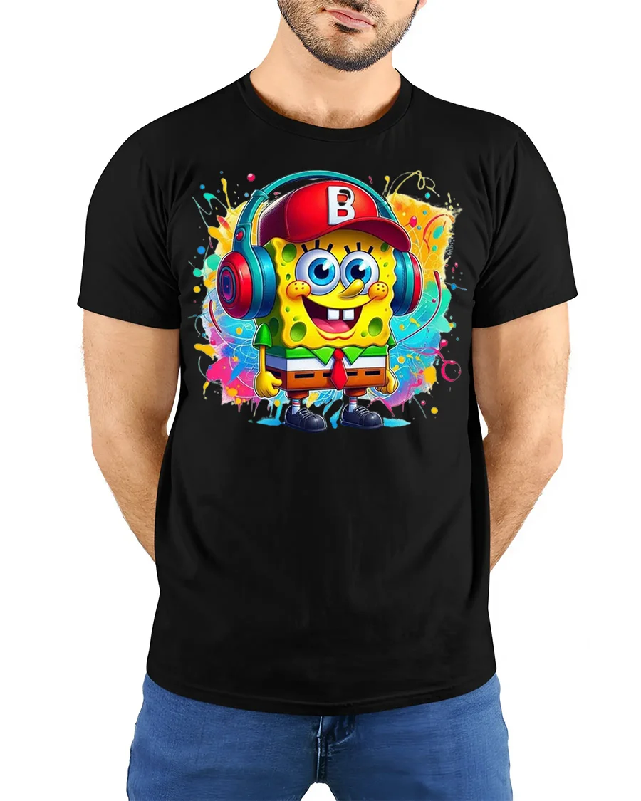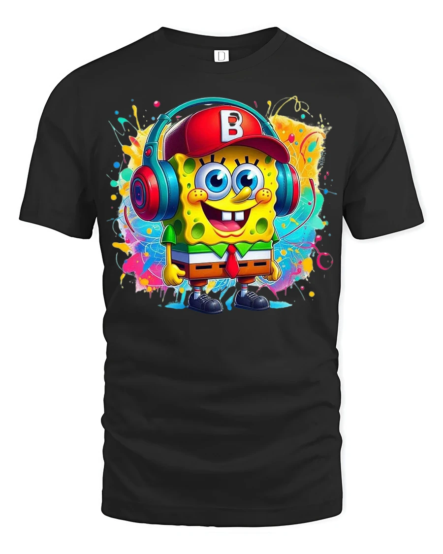 The Funny Cartoon Sponge Music Lover Graphic T Shirt Colorful Style brings bright energy and playful personality into a fun and expressive graphic design.
