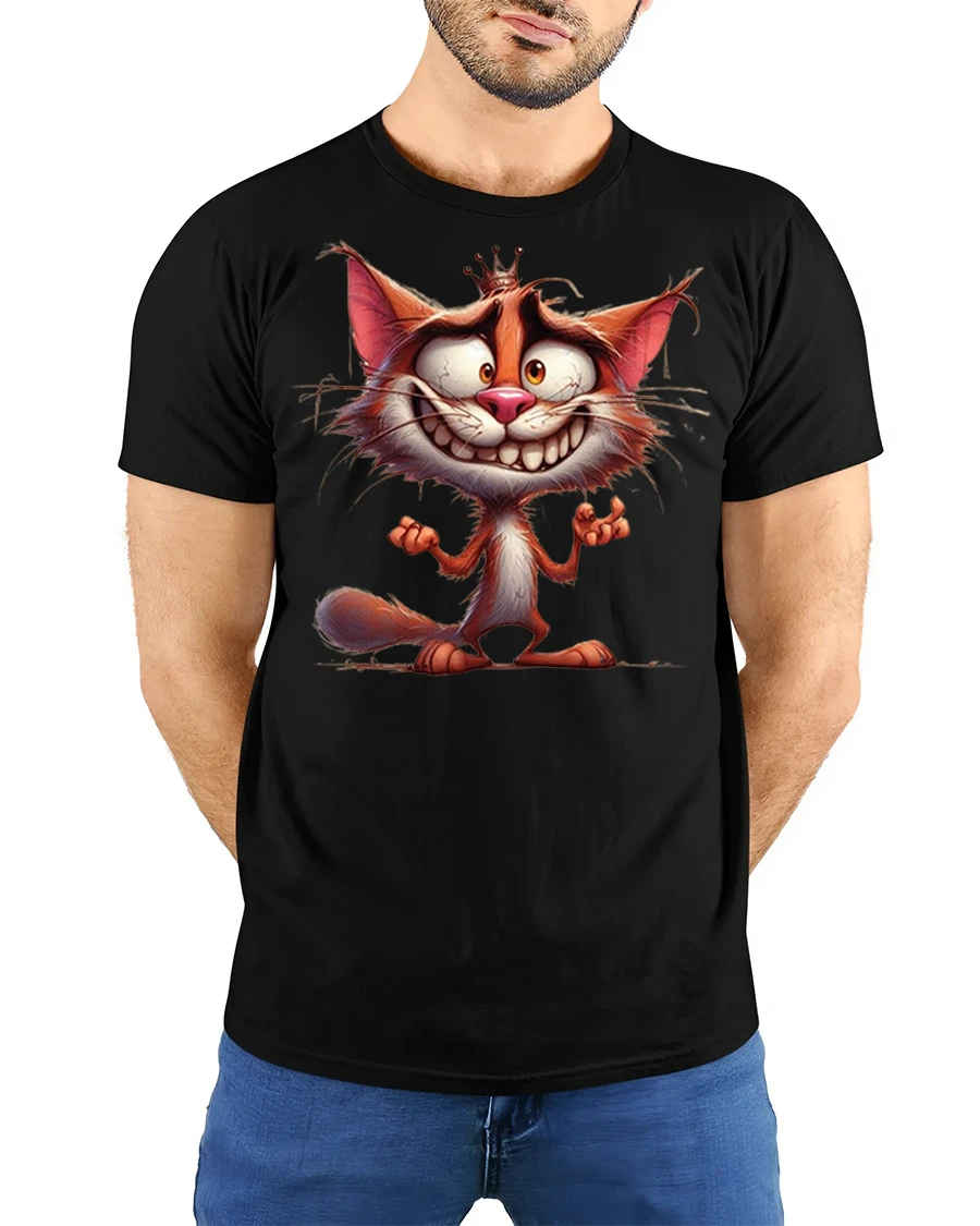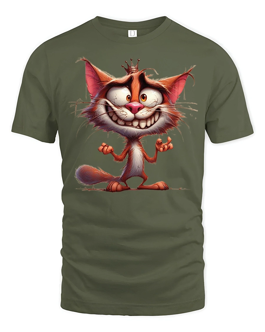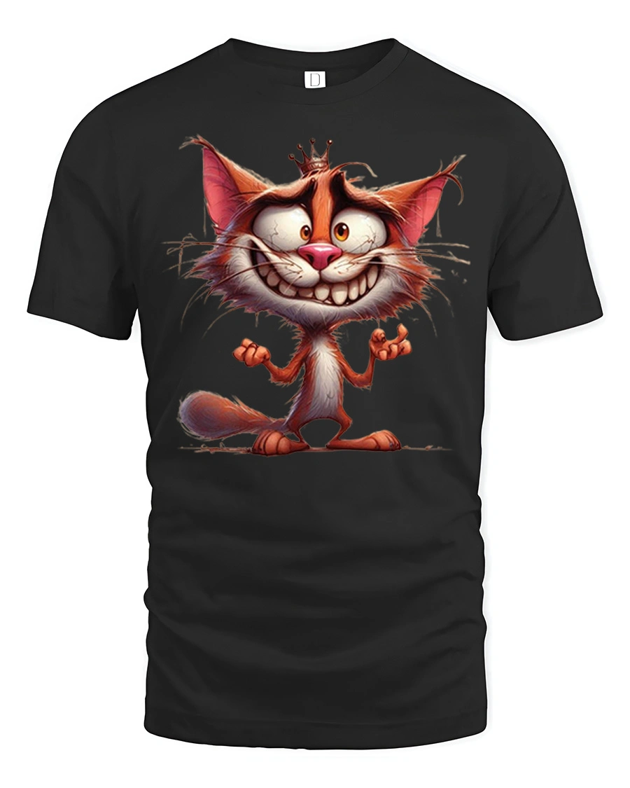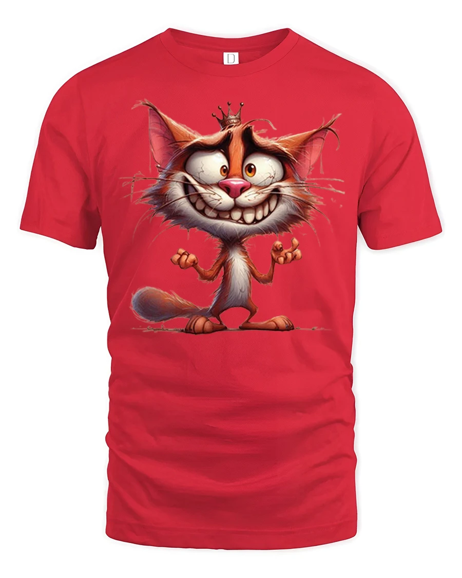 Funny Crazy Cartoon Cat Grin Graphic Cute Character T Shirt brings humor and personality to your everyday style with its wildly expressive cat design.