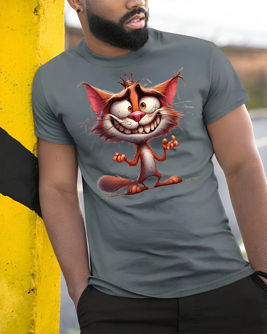 Funny Crazy Cartoon Cat Grin Graphic Cute Character T Shirt
