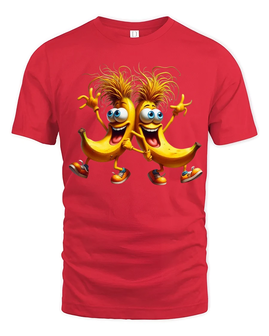 Add a burst of humor and energy to your outfit with this Funny Dancing Banana Duo Tshirt Cute Cartoon Fruit Graphic Tee.