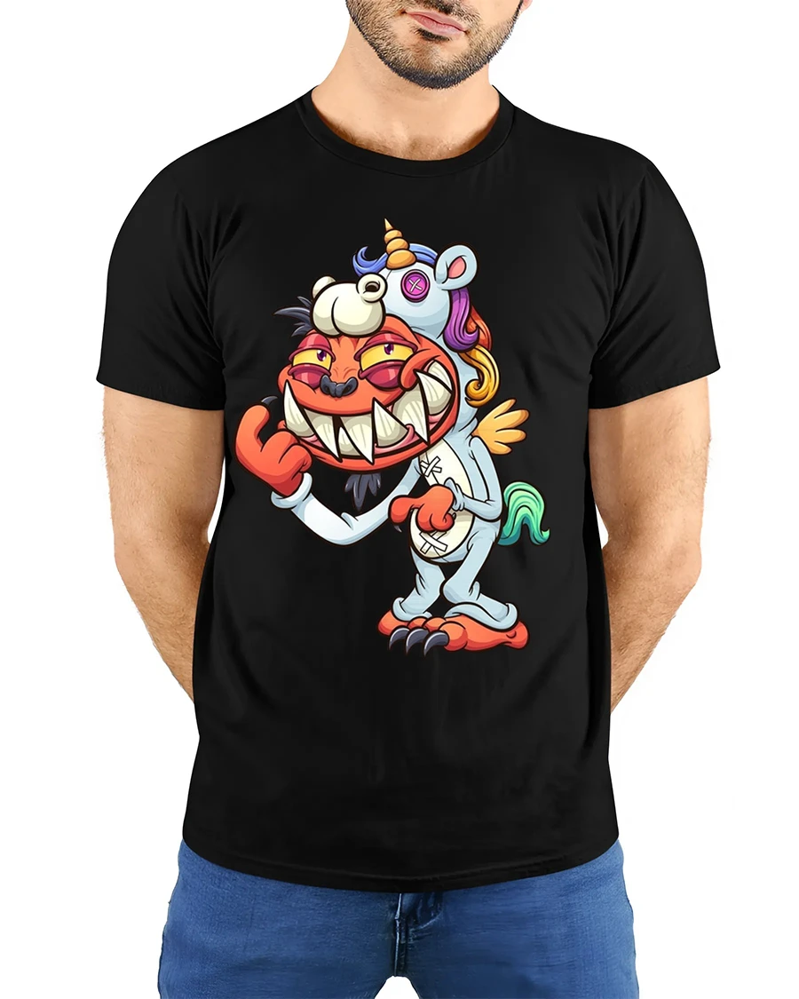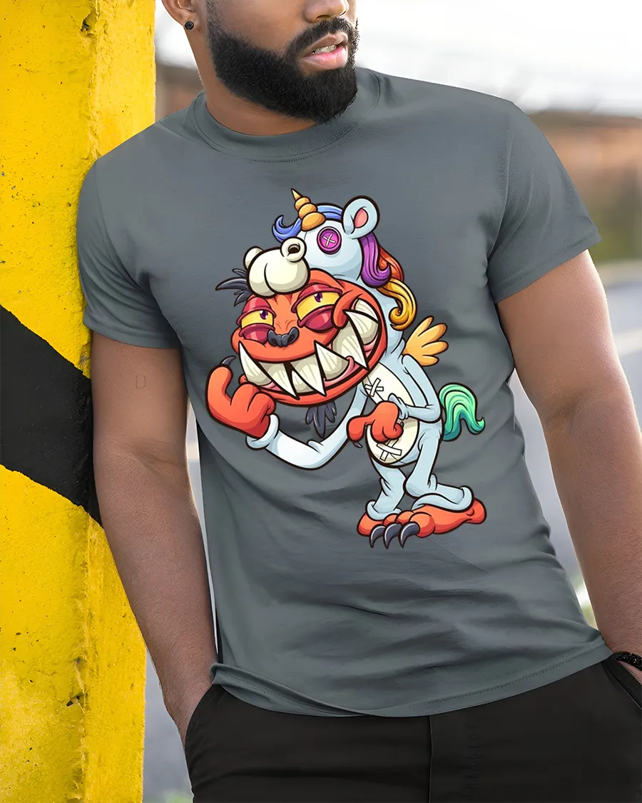 Perfect for fans of quirky humor and fantasy characters, this funny demon in unicorn costume graphic tee adds personality, fun energy, and bold creative flair to your wardrobe while keeping your style playful and confidently unique.