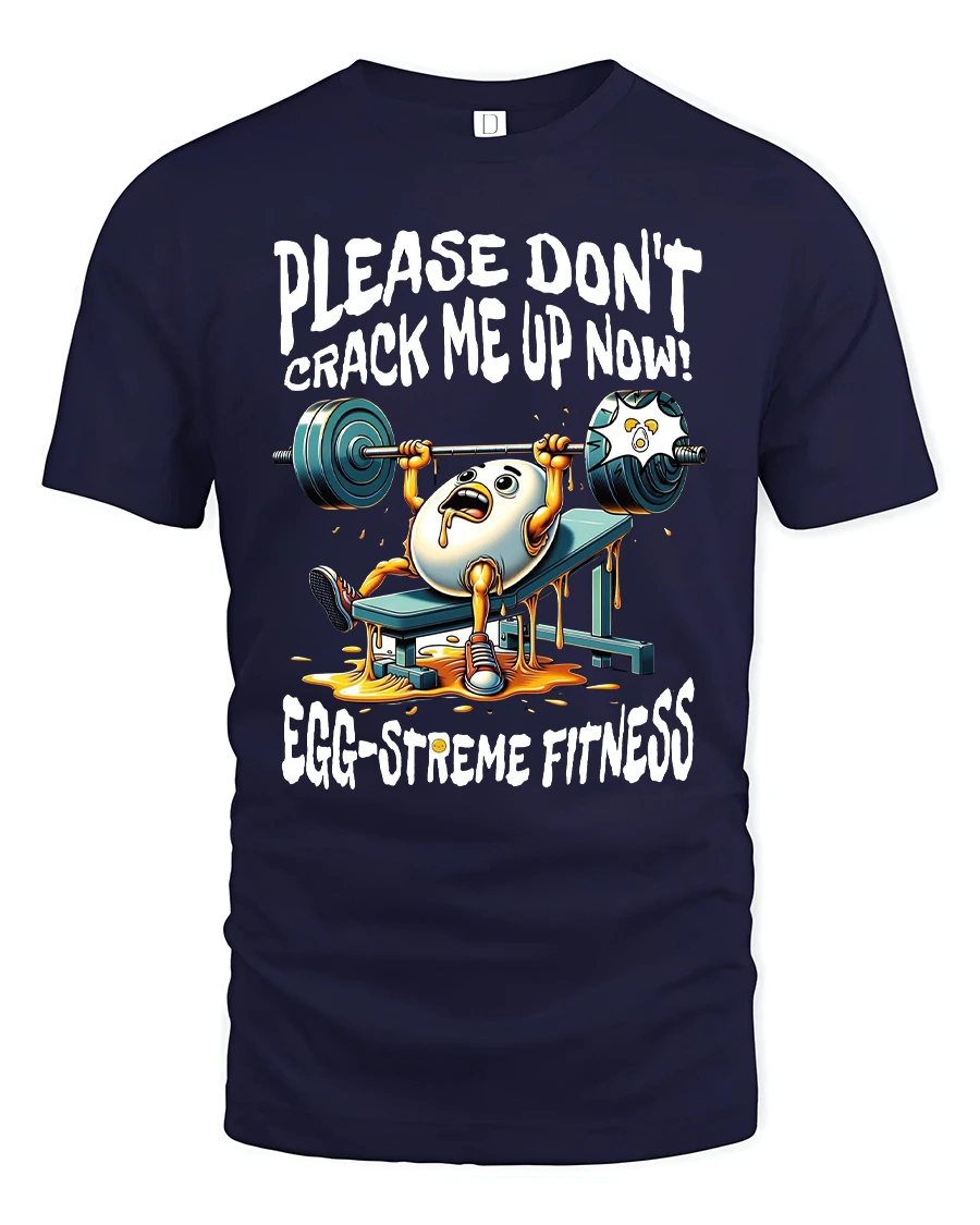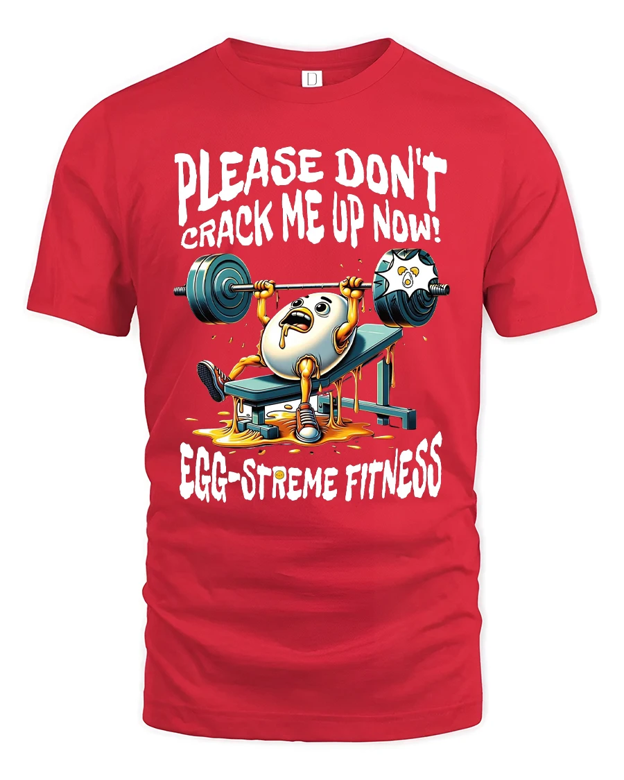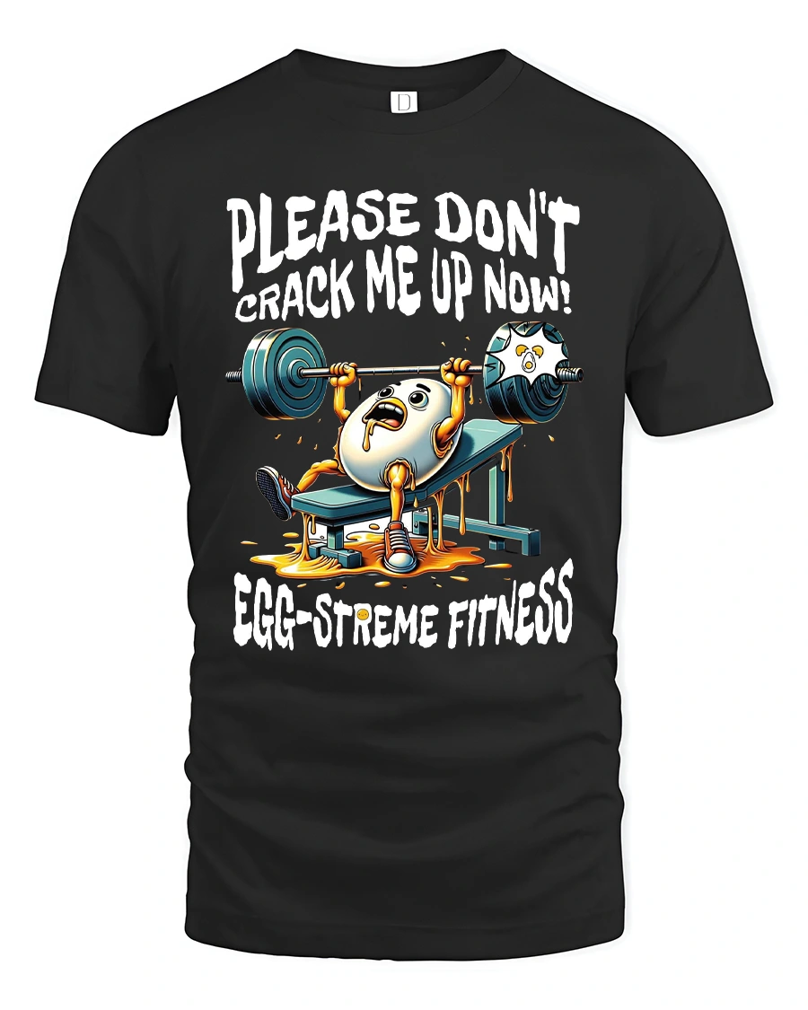 This Funny Egg Gym Tee for Fitness Lovers delivers the perfect mix of humor and workout motivation. Featuring a panicked egg struggling on the bench press with the caption “Please Don’t Crack Me Up Now!” and “Egg-streme Fitness,” this design is guaranteed to get laughs at the gym, during training sessions, or anywhere you show off your sense of humor. The vibrant cartoon artwork and playful pun make it a fun conversation starter for fitness enthusiasts.
