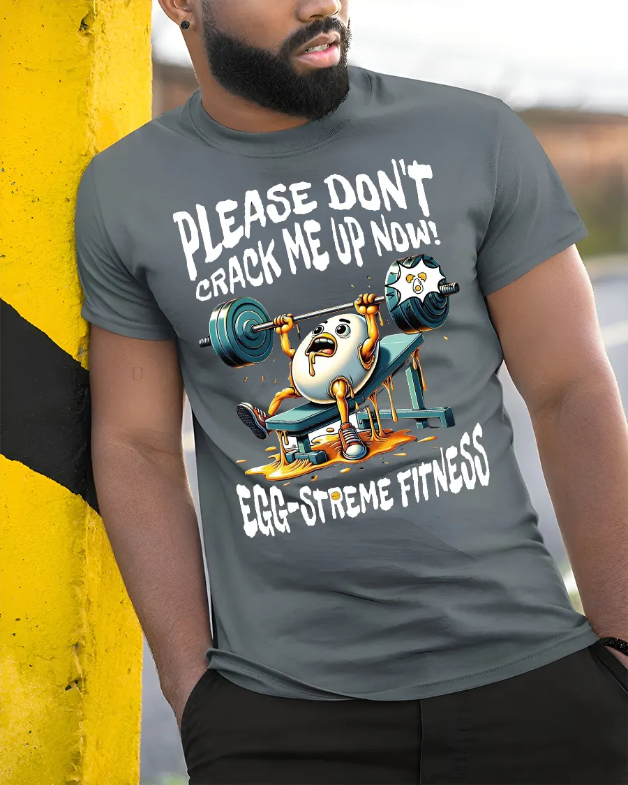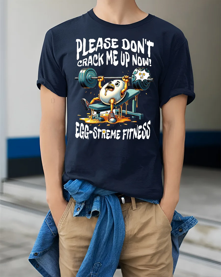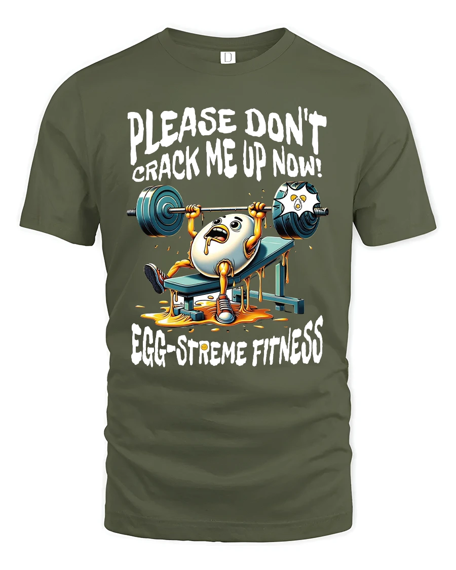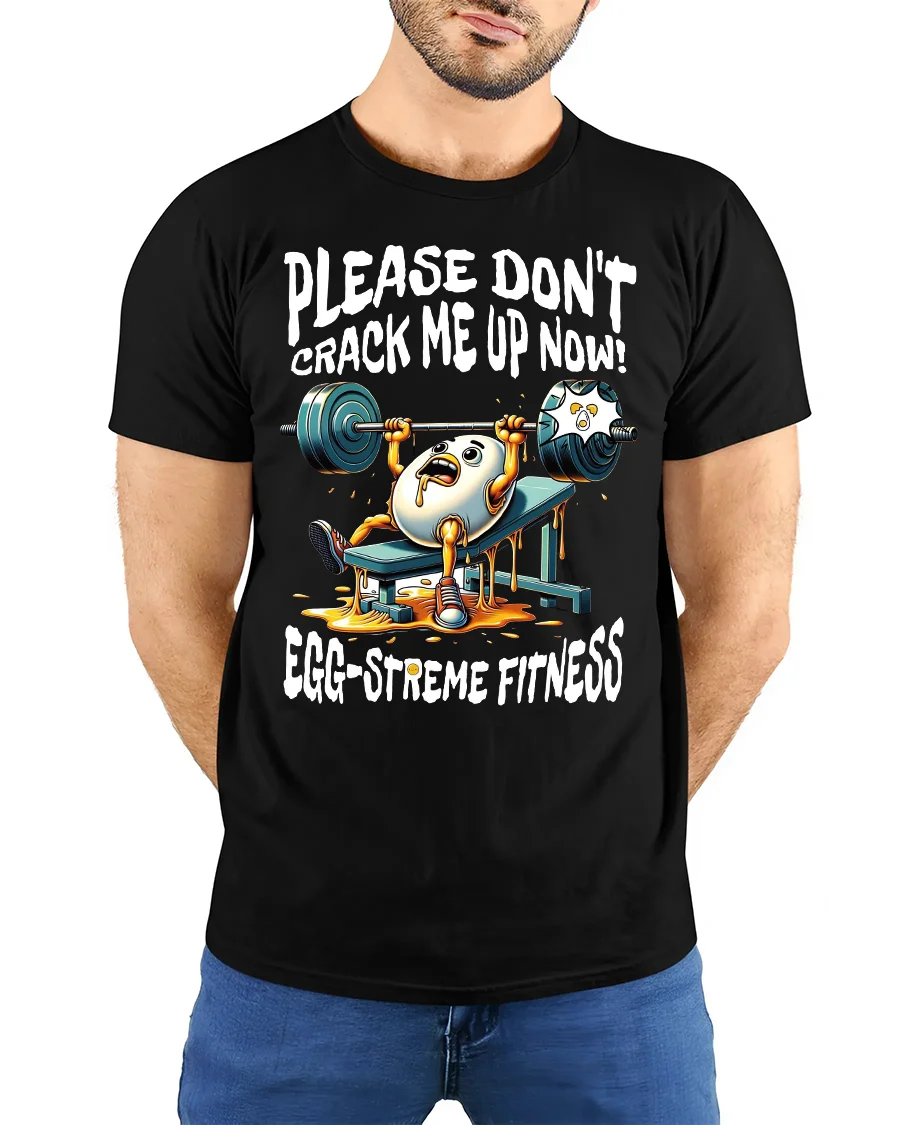 This Funny Egg Gym Tee for Fitness Lovers delivers the perfect mix of humor and workout motivation. Featuring a panicked egg struggling on the bench press with the caption “Please Don’t Crack Me Up Now!” and “Egg-streme Fitness,” this design is guaranteed to get laughs at the gym, during training sessions, or anywhere you show off your sense of humor. The vibrant cartoon artwork and playful pun make it a fun conversation starter for fitness enthusiasts.
