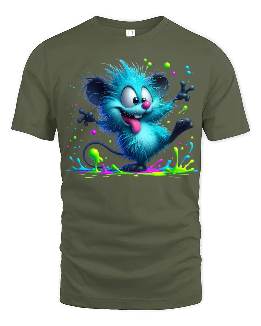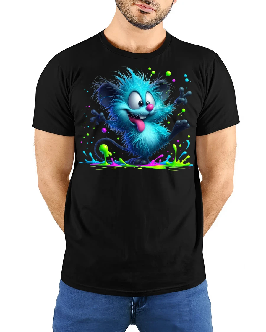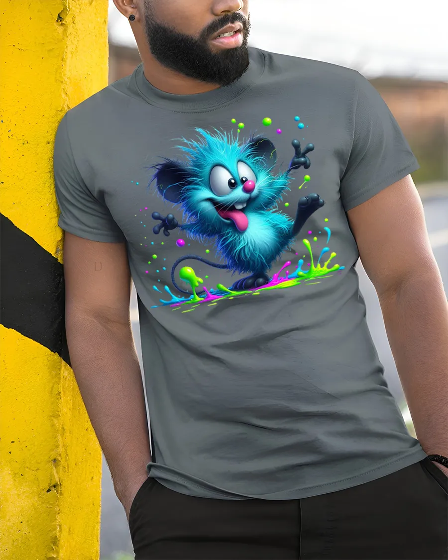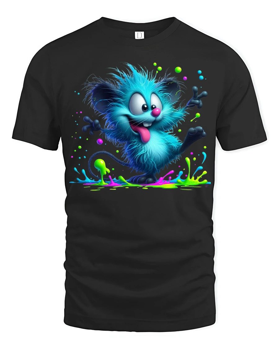 Featuring a playful fuzzy creature surrounded by vibrant paint splashes, this design captures a fun and carefree spirit that stands out instantly.
