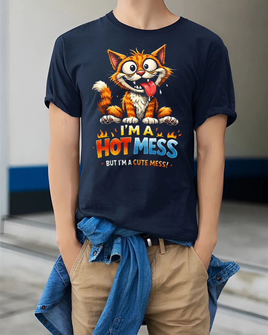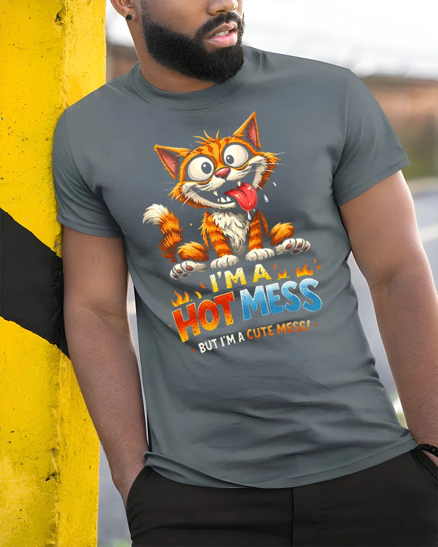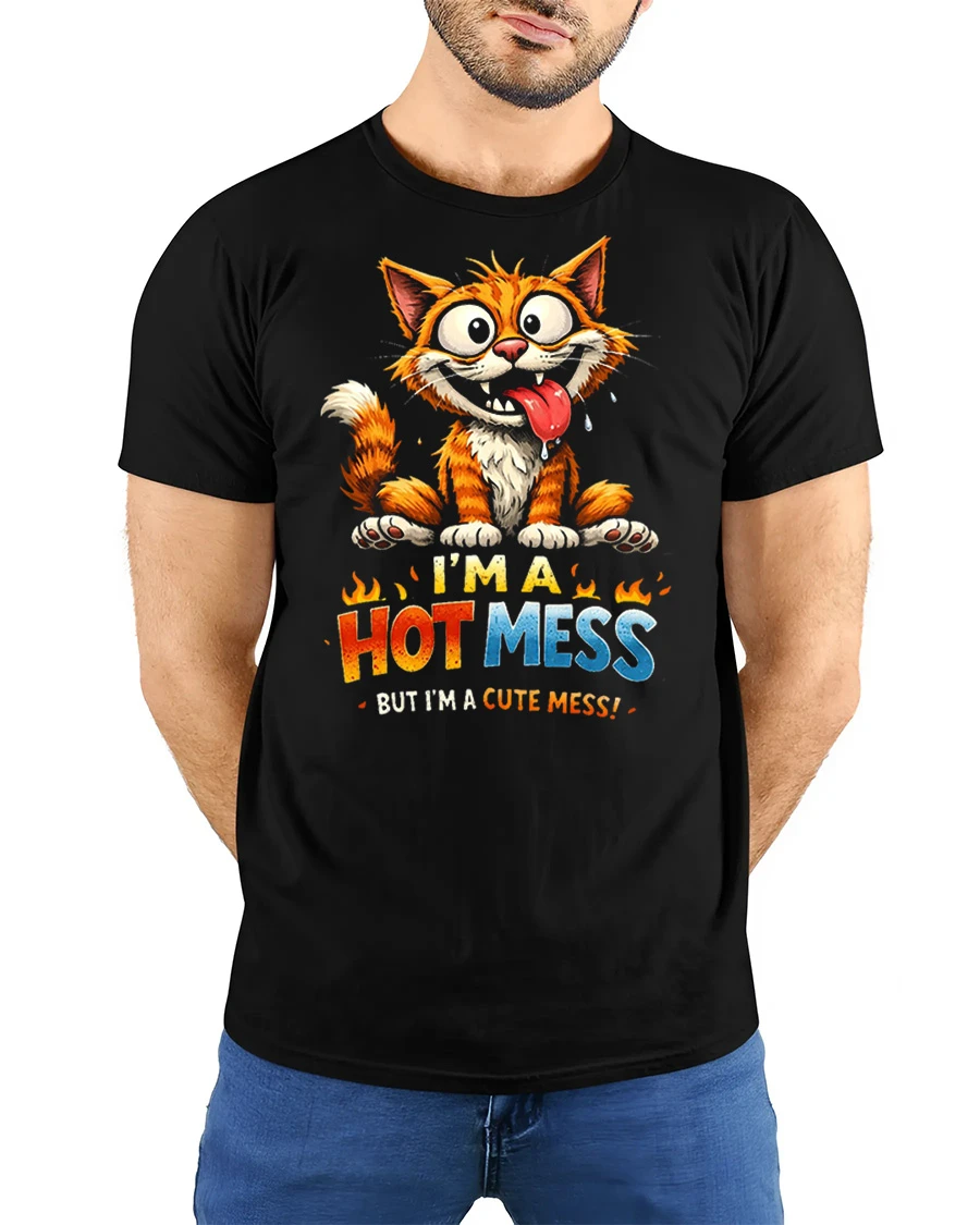 Funny Hot Mess Cute Cat Tshirt Playful Graphic Soft Feel is designed to bring humor and personality into your everyday style.