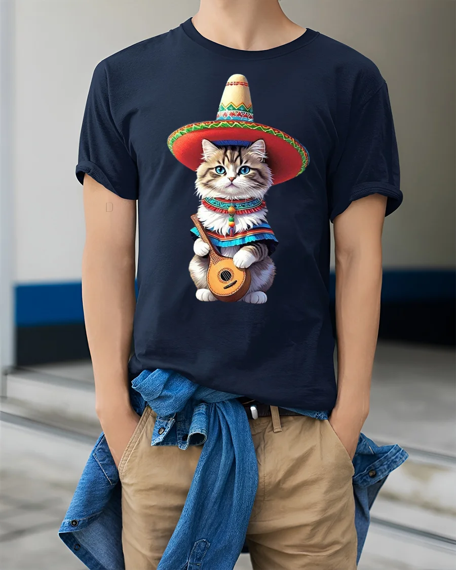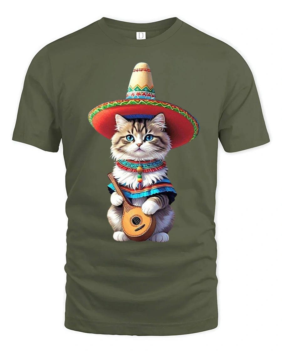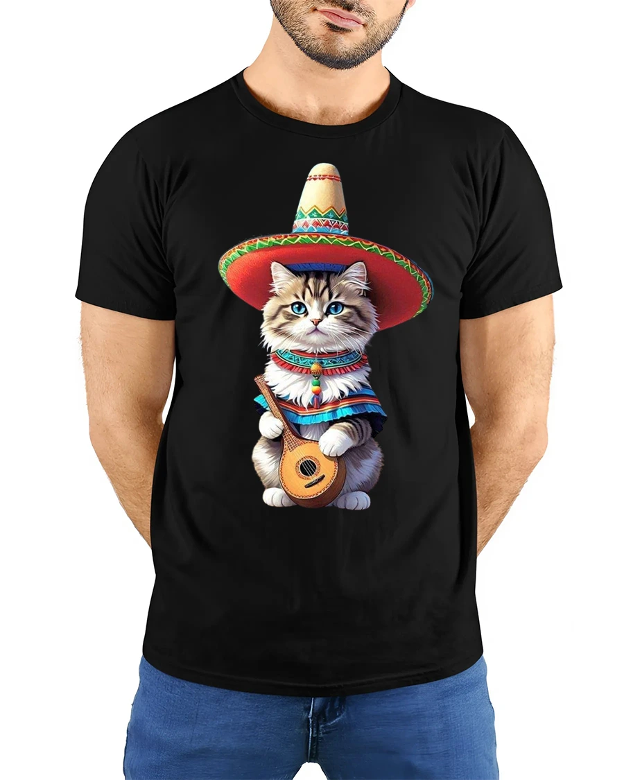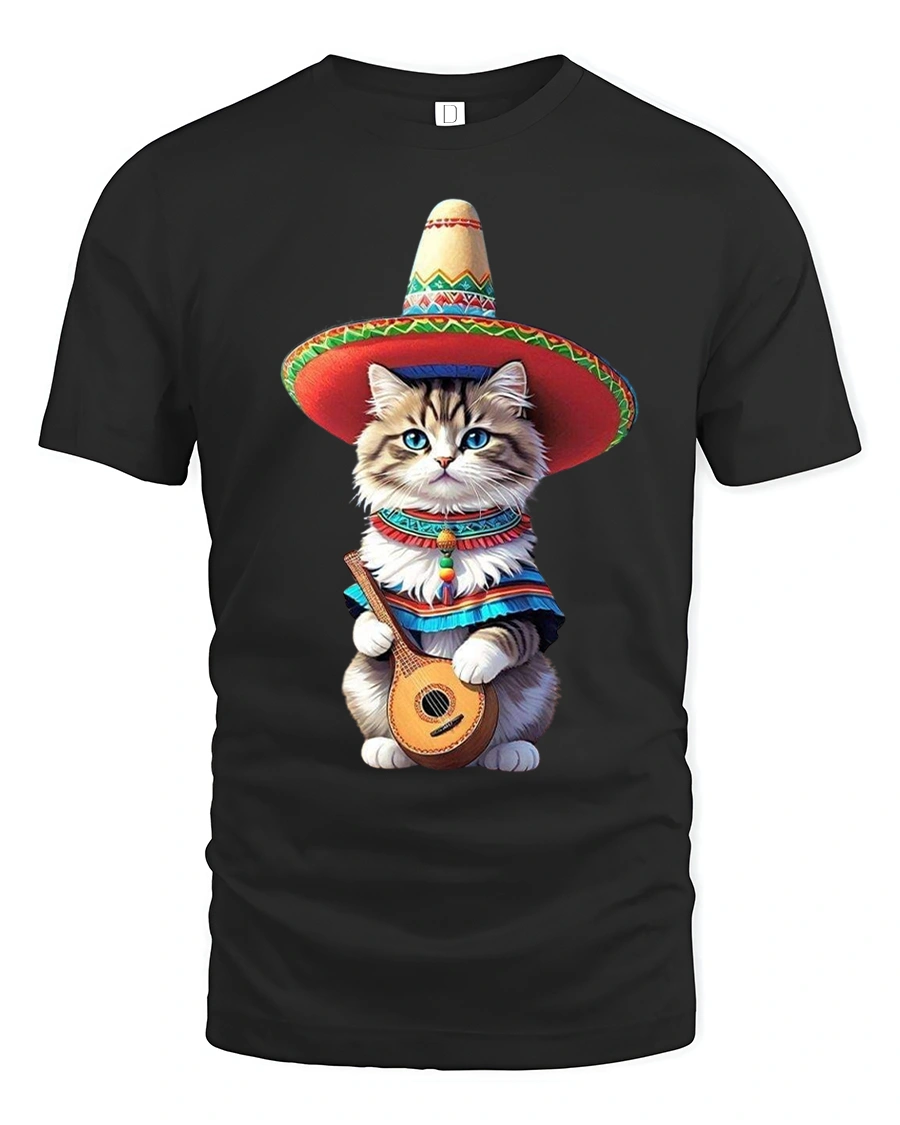 Funny Mariachi Cat Music Fiesta Art Graphic Tshirt brings cheerful energy and playful charm into a bold illustrated design.