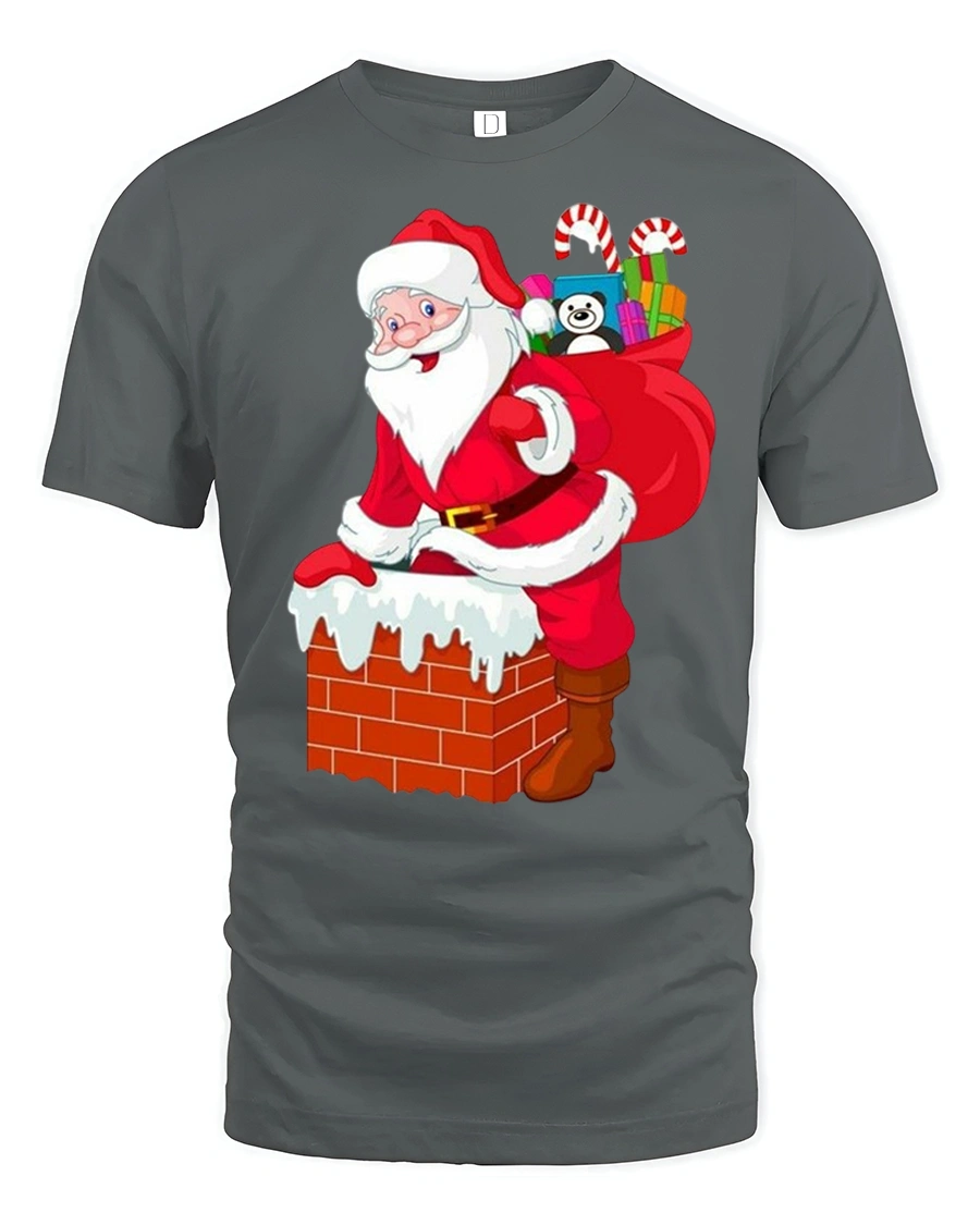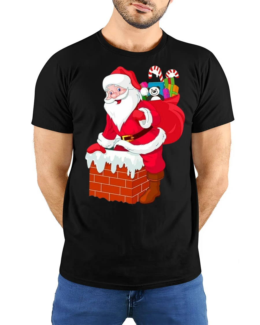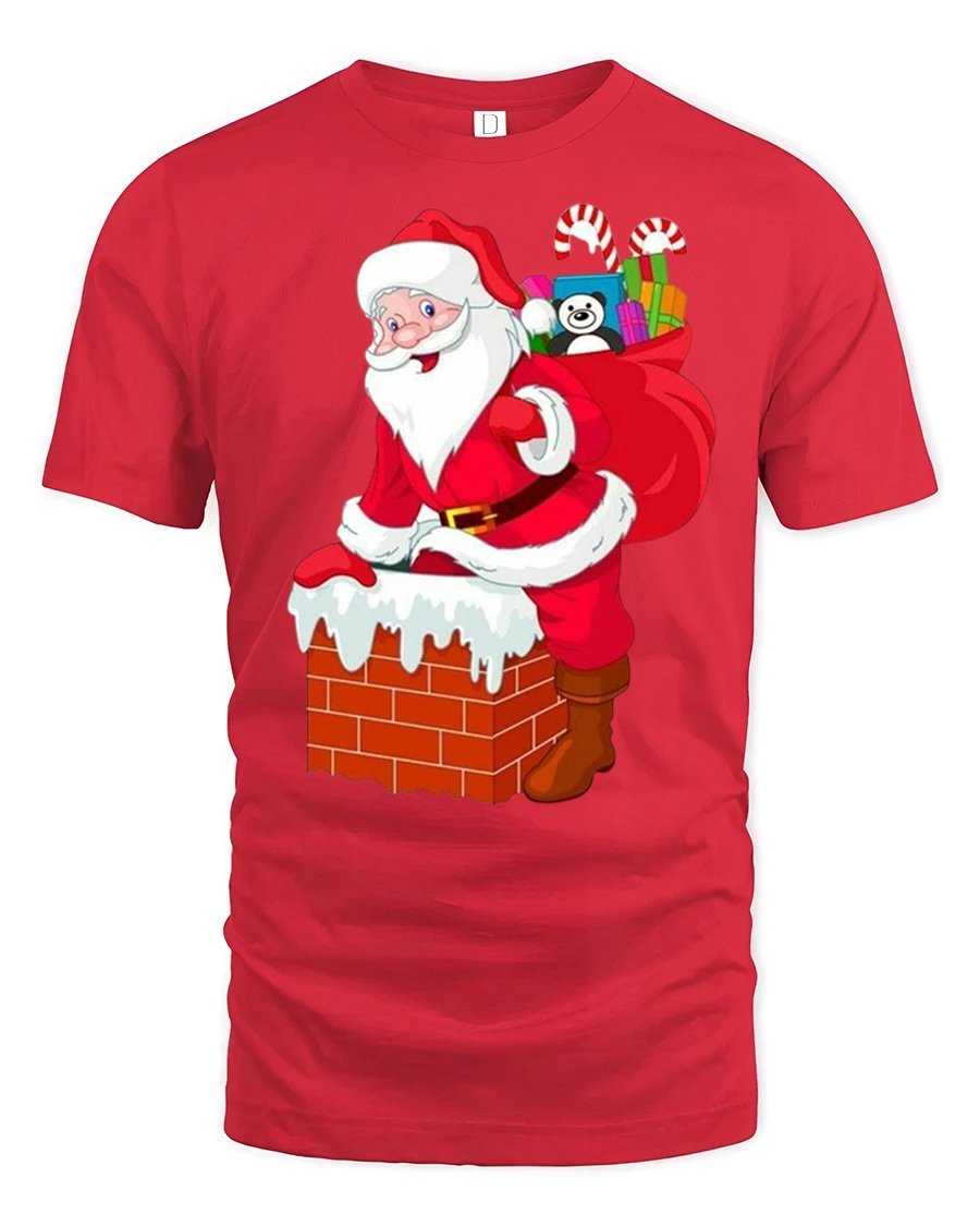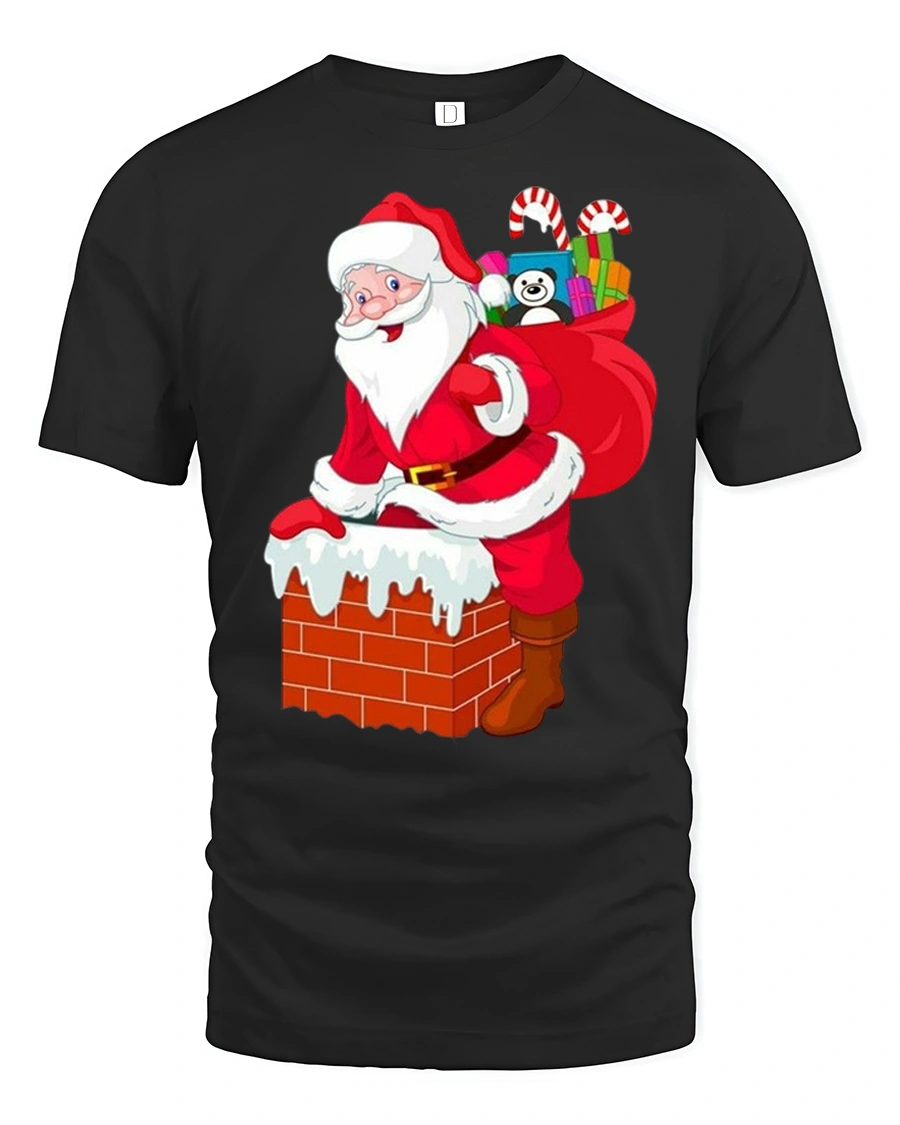 Funny Santa Stuck in Chimney Cute Christmas T-Shirt brings cheerful holiday fun to your festive wardrobe. Featuring a bright and joyful Santa climbing into a snow-covered chimney with a big red bag full of gifts, this playful design captures the charm and excitement of Christmas Eve. The colorful presents, candy canes, and friendly cartoon style make the artwork stand out and spread instant holiday joy.