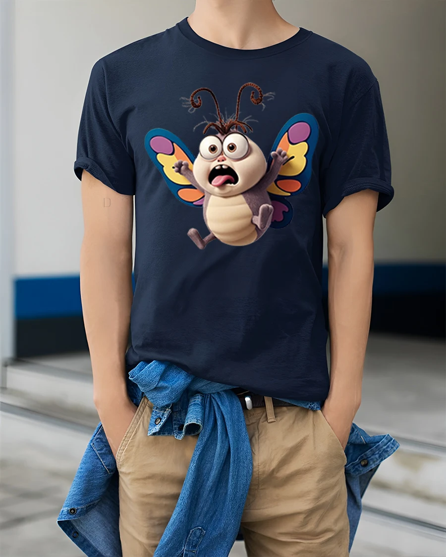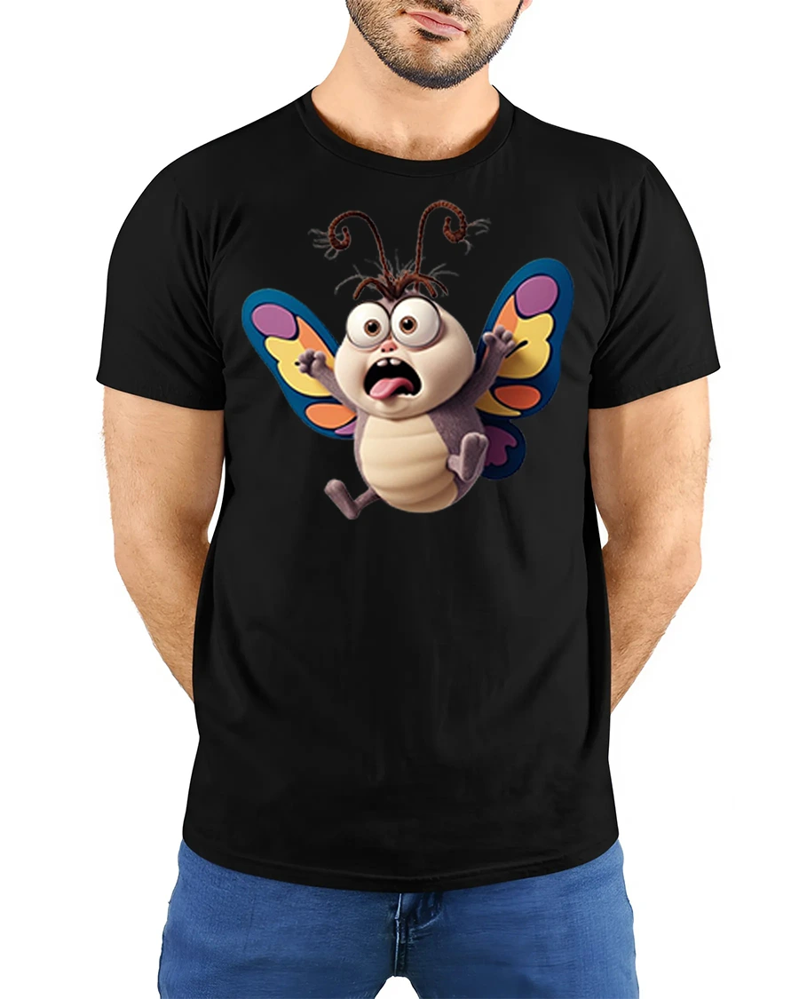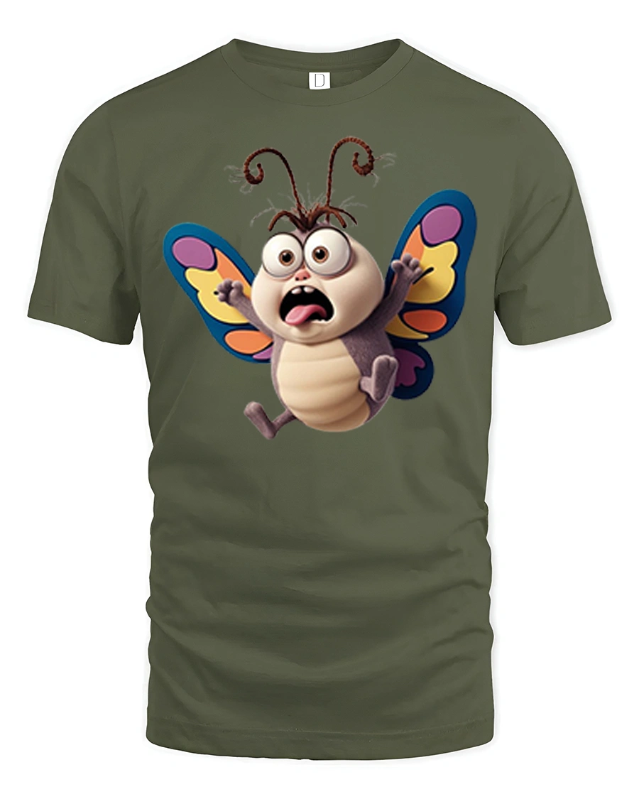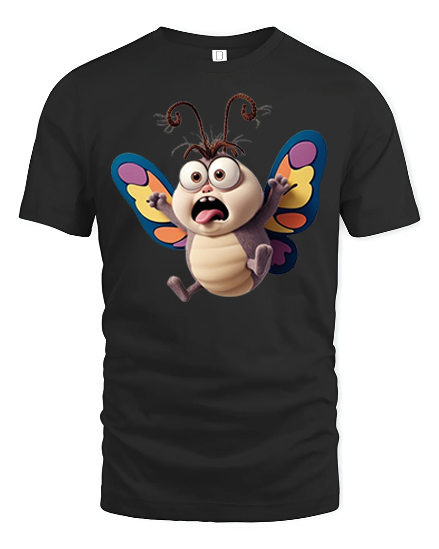 Funny Shocked Butterfly Cartoon Graphic T Shirt Cute Bug Art brings instant laughter with its wide eyed surprised butterfly design.