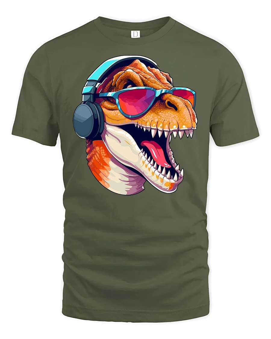 The Funny T-Rex with Headphones Tee also makes an excellent gift for music fans, DJs, dinosaur enthusiasts, or anyone who loves fun fashion. Pair it with jeans, shorts, or even a jacket for a standout look. Rock your inner party animal and let this T-Rex DJ tee bring the beat to your wardrobe.