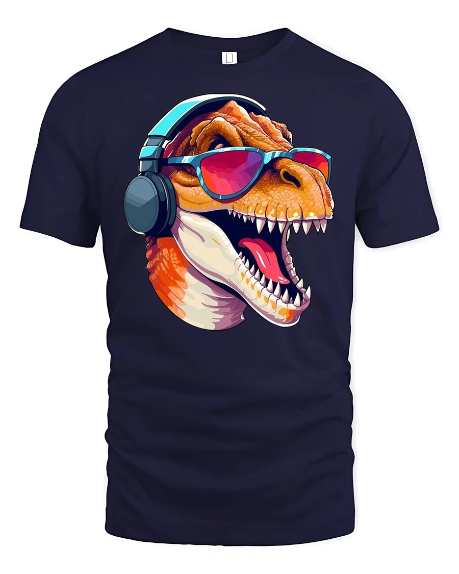 Funny T-Rex with Headphones Tee is the ultimate fusion of retro fun and modern style. Featuring a fierce T-Rex rocking vibrant sunglasses and bold headphones, this graphic shirt captures the perfect vibe for music lovers, partygoers, and anyone who loves dinosaurs with a twist. The design is colorful, energetic, and guaranteed to turn heads wherever you go.