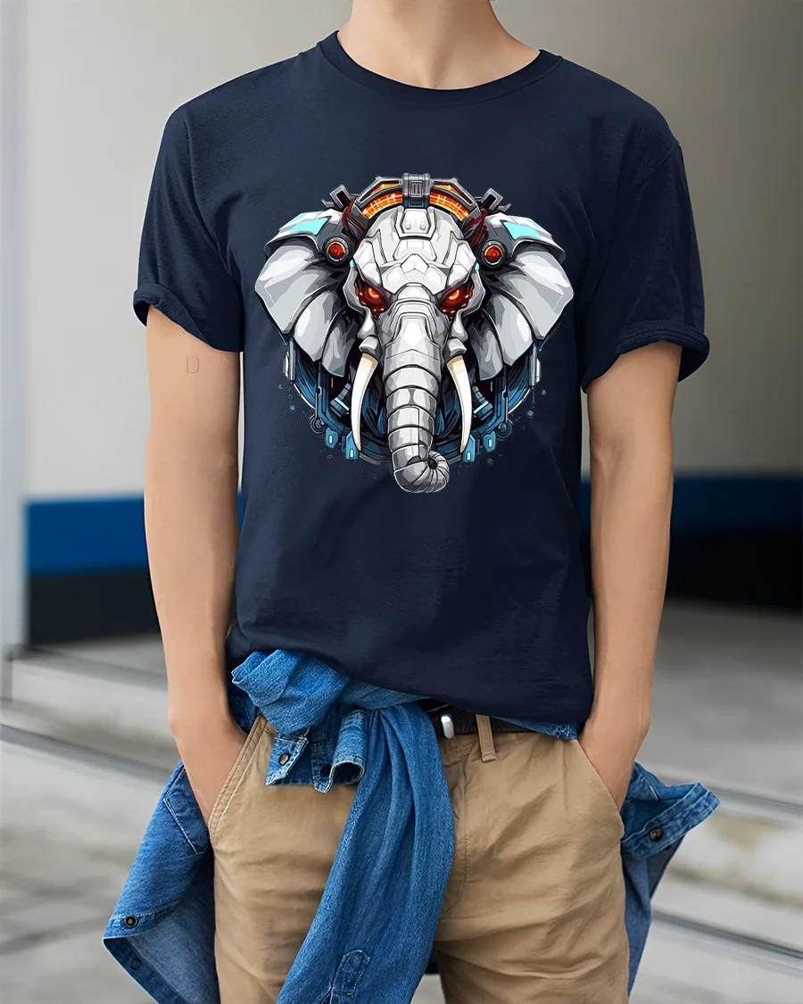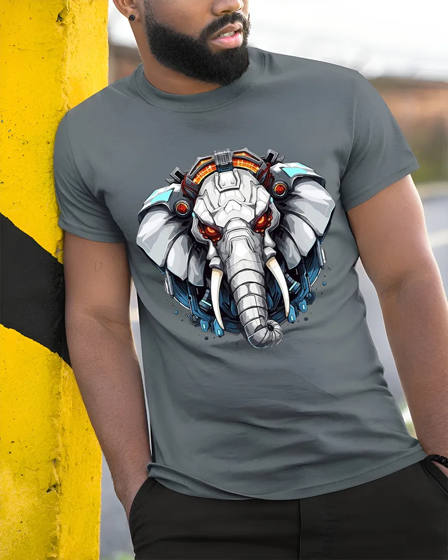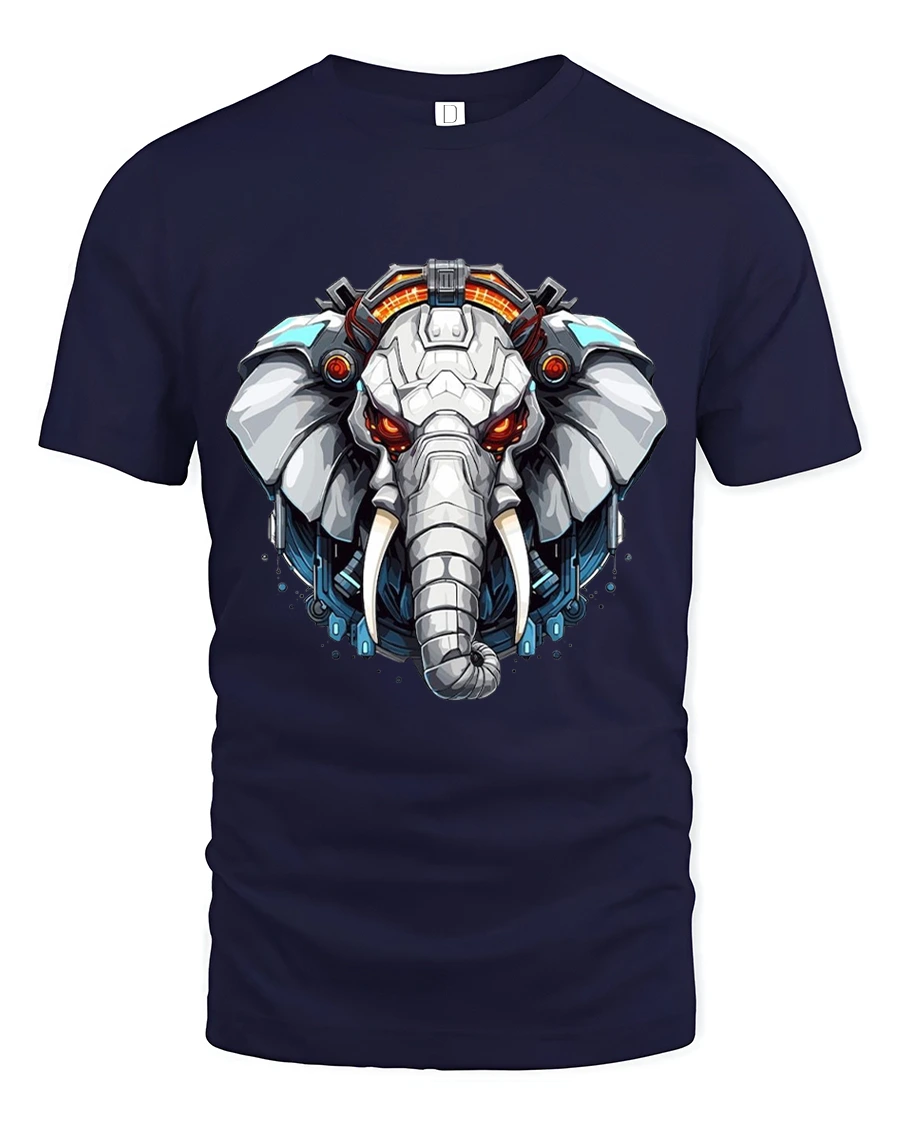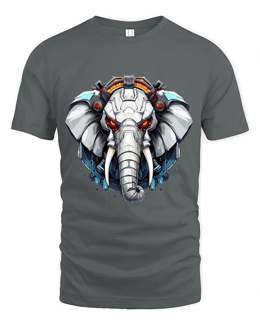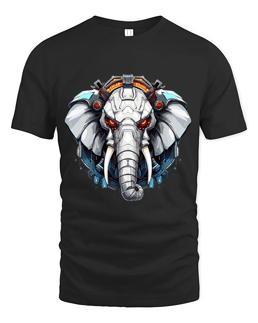 Futuristic Cyber Elephant Mecha Art Graphic Tshirt Tee delivers a bold fusion of strength technology and modern digital art.