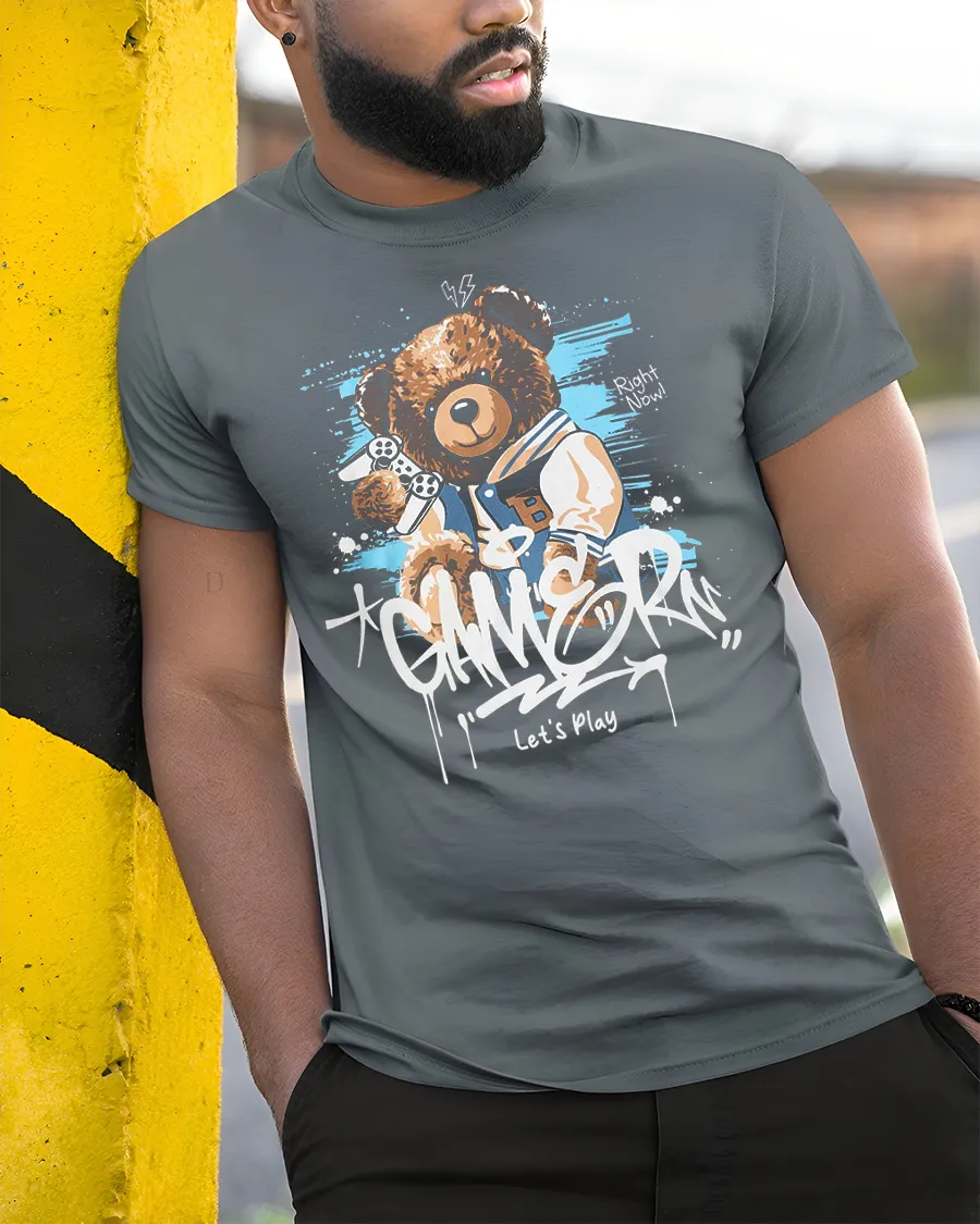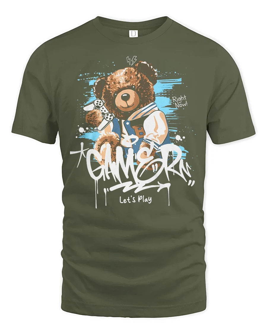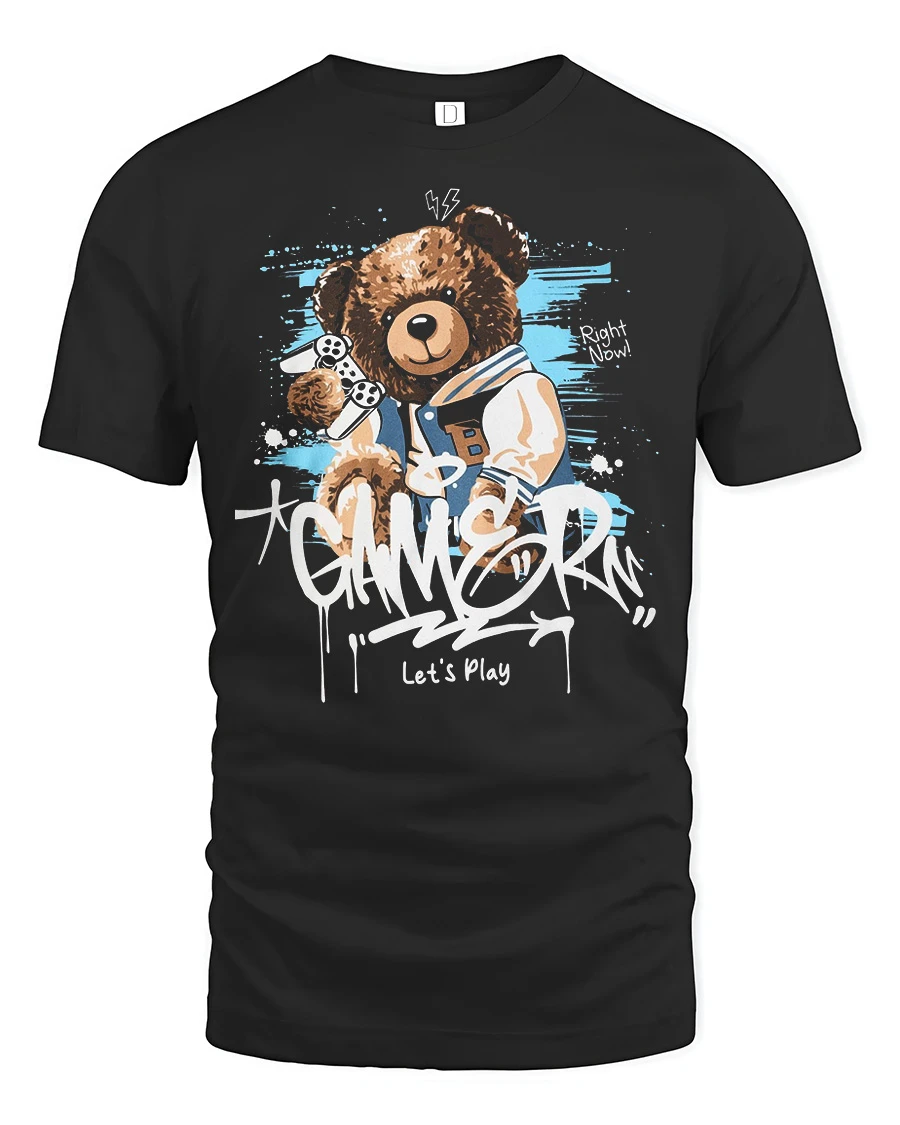 Featuring an adorable teddy bear holding a game controller with a playful gamer attitude, this design blends humor and gaming culture into one eye catching graphic.