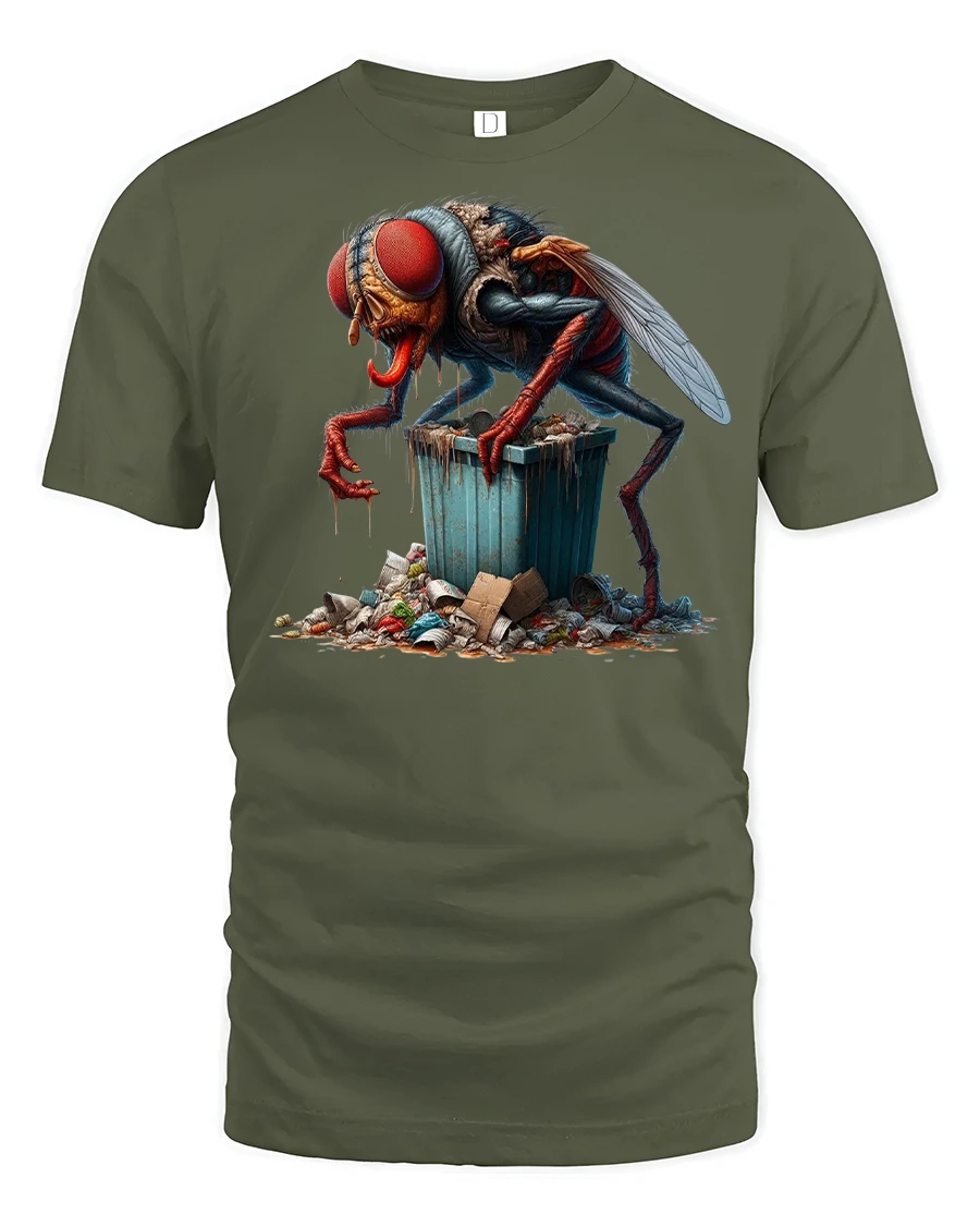 Make a bold and creepy statement with the Giant Trash Fly Monster Funny Graphic T-Shirt. Featuring a massive, grotesque fly digging through a trash can, this design is perfect for fans of weird art, horror humor, and unique graphic tees that stand out. It blends a mix of creepy and comical, making it a conversation starter anywhere you go.