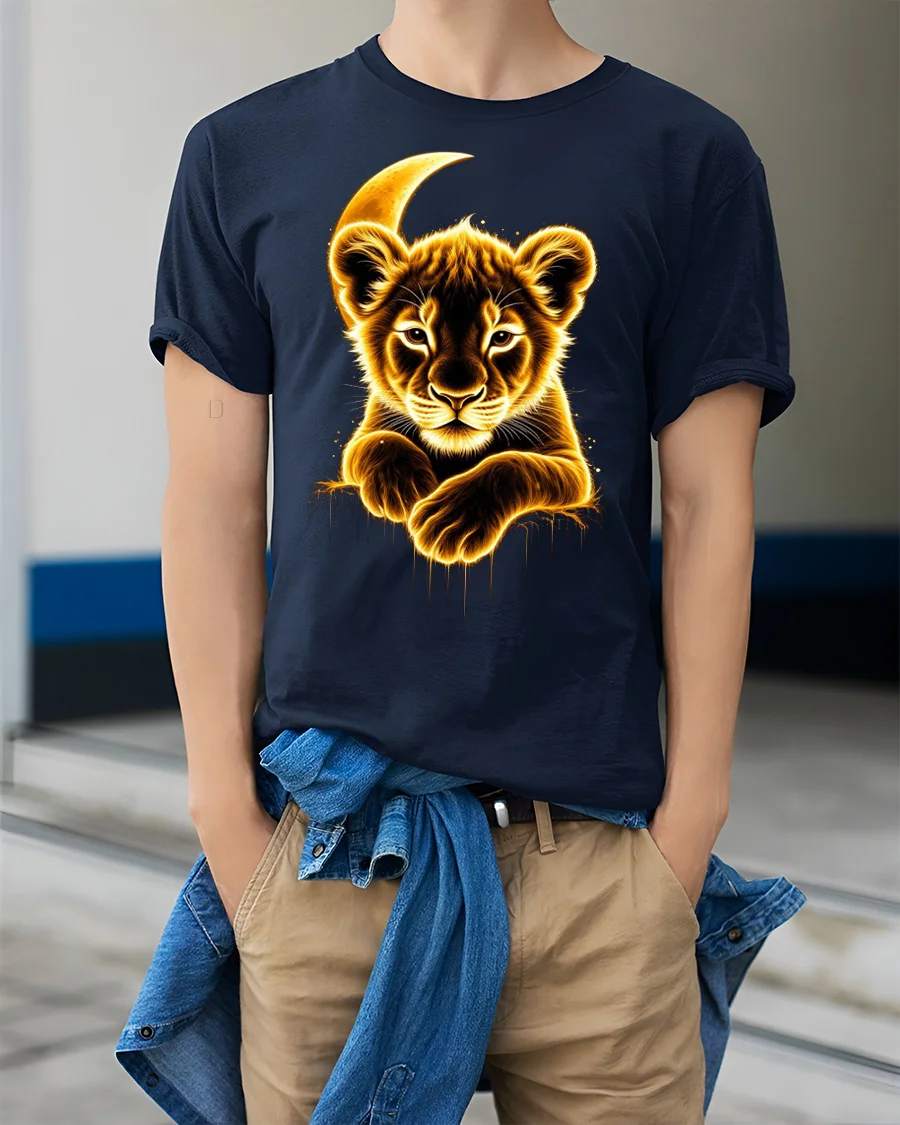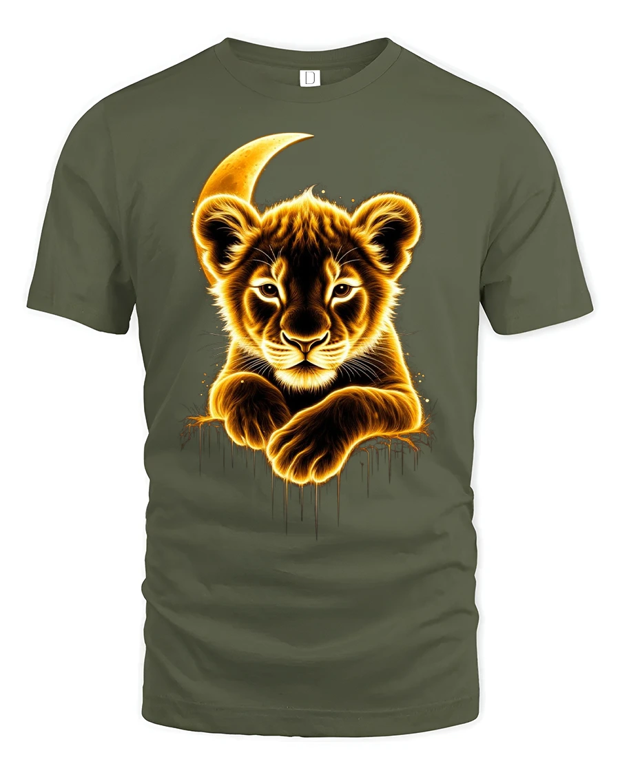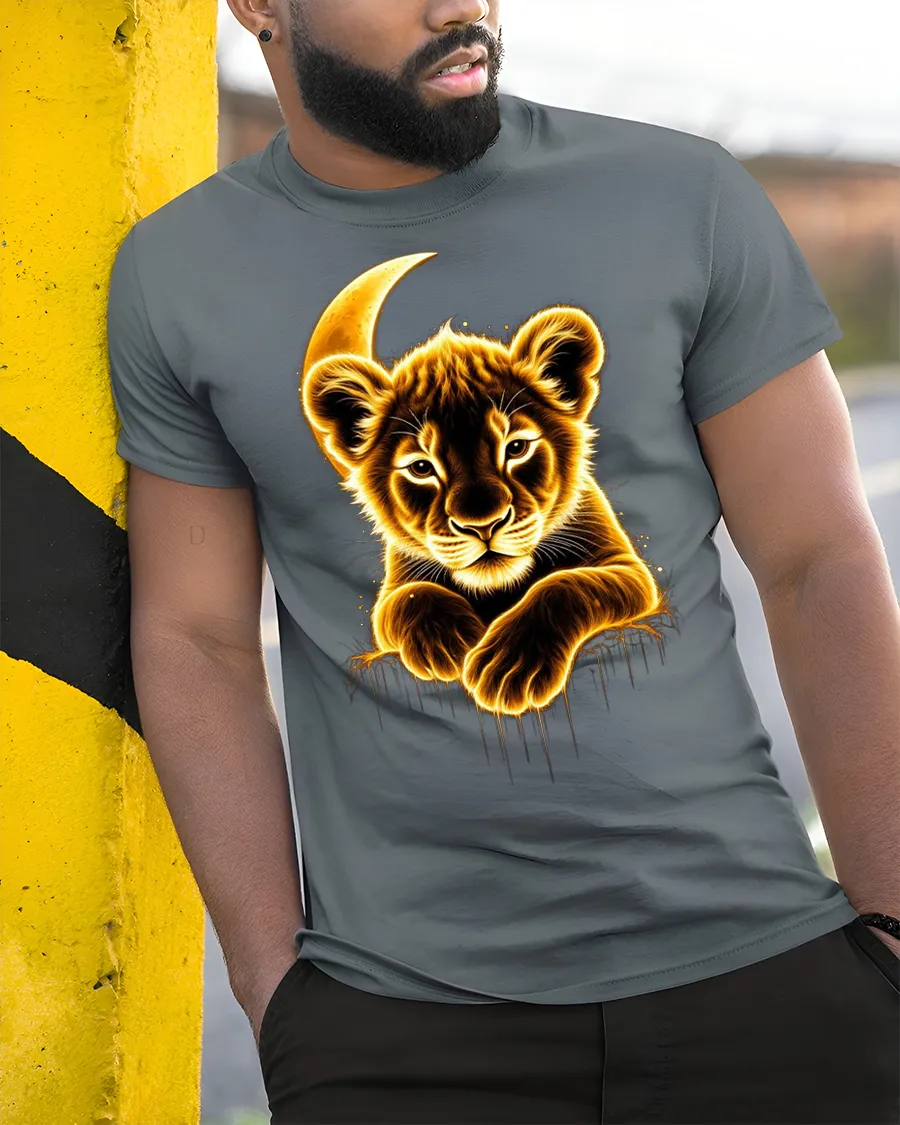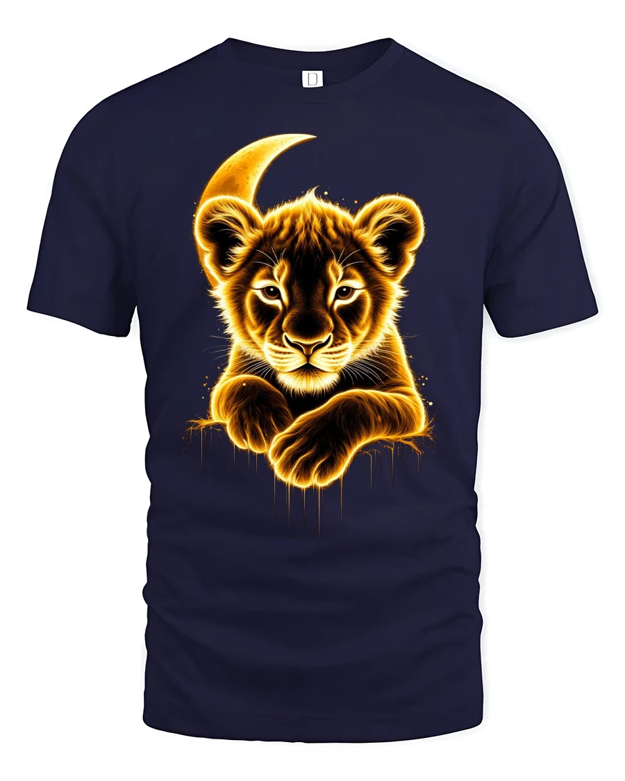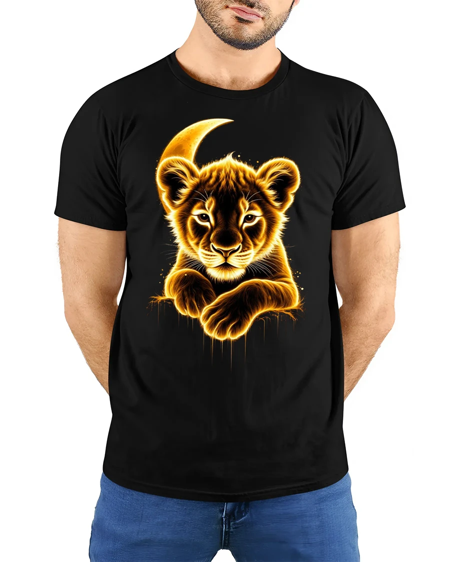 The Glowing Lion Cub Moonlight Graphic Tee makes an unforgettable gift for nature lovers, art fans, and anyone who admires the beauty of the wild.