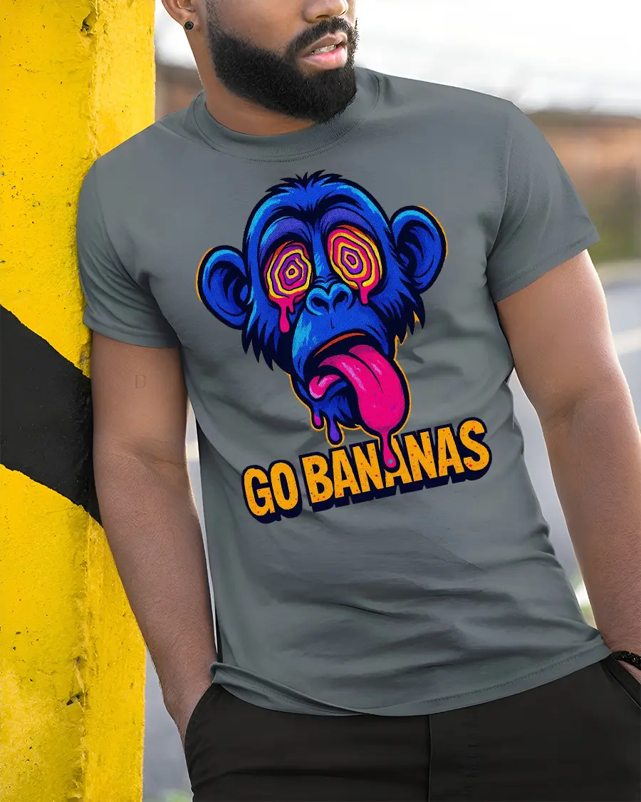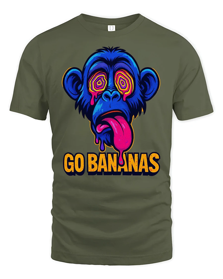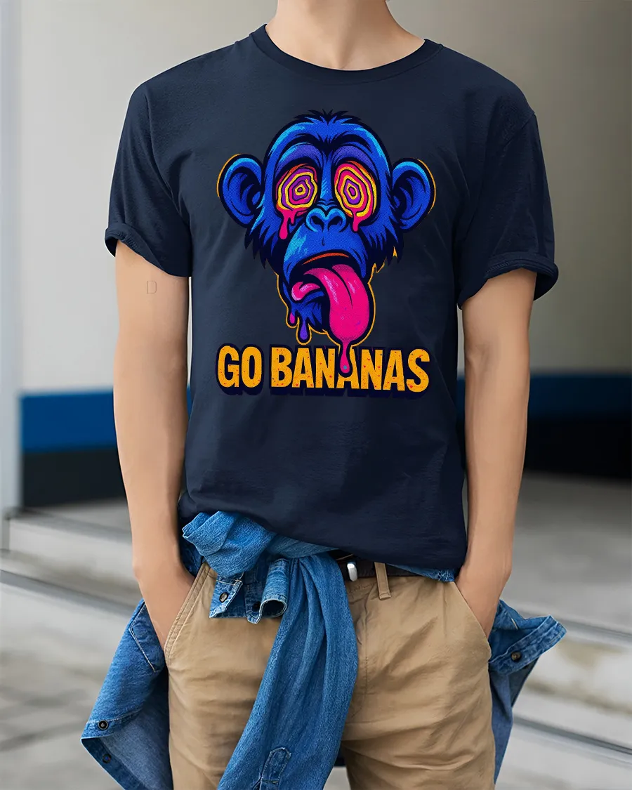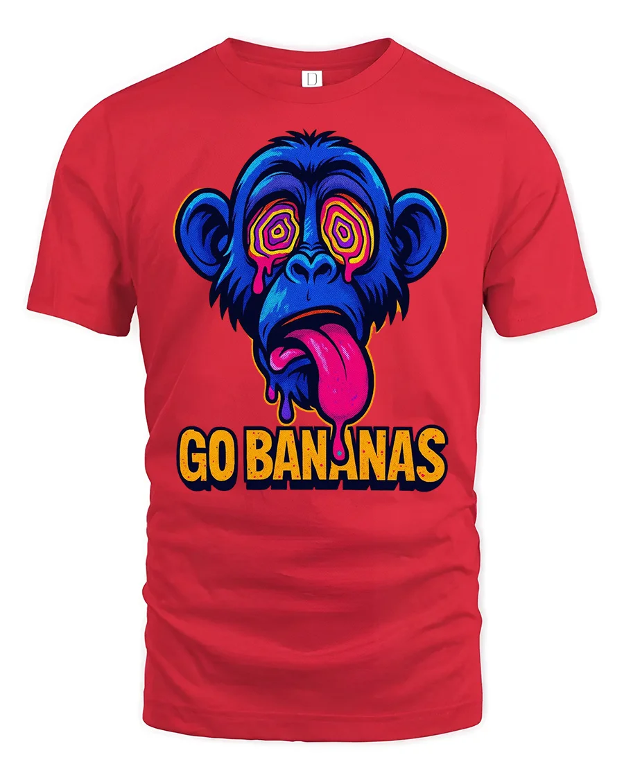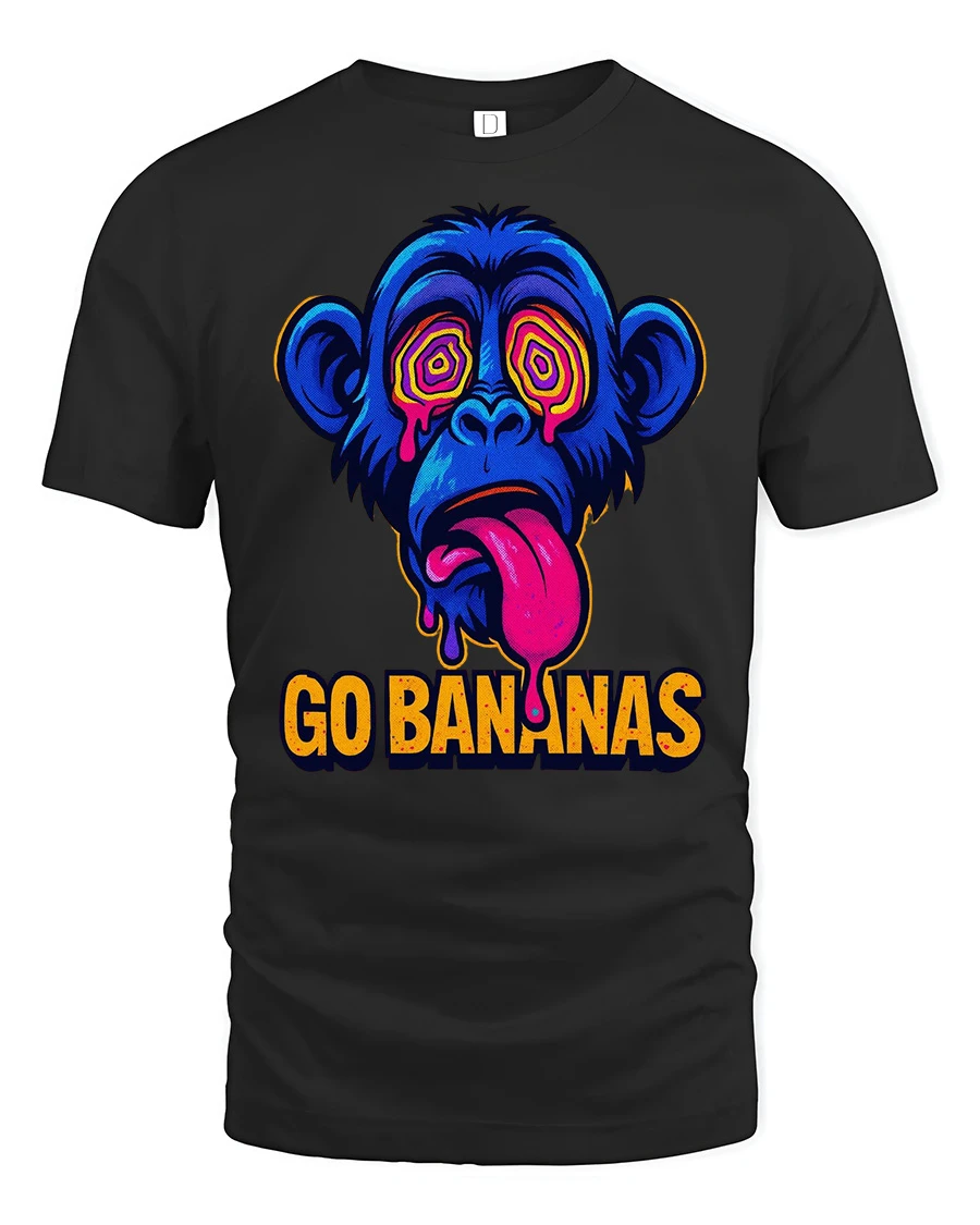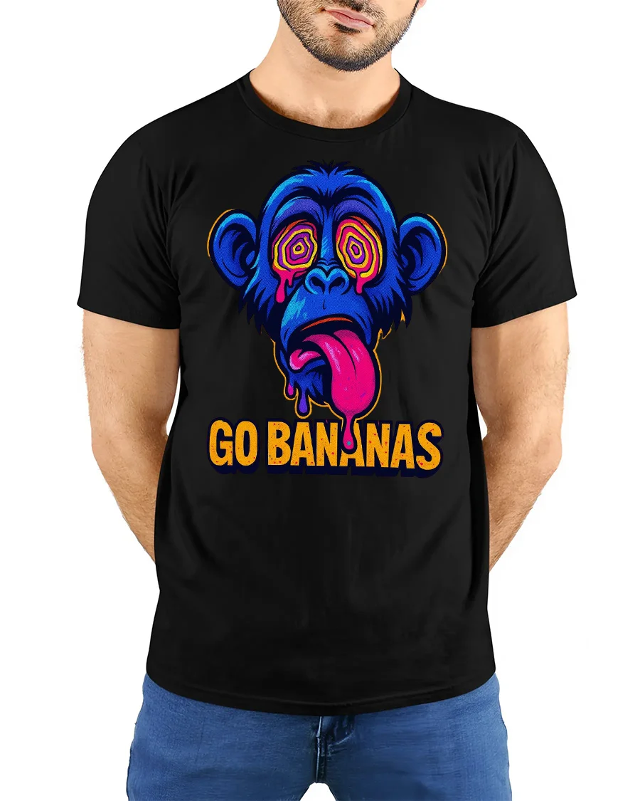Go Bananas Funny Monkey Graphic T Shirt Psychedelic Art Tee