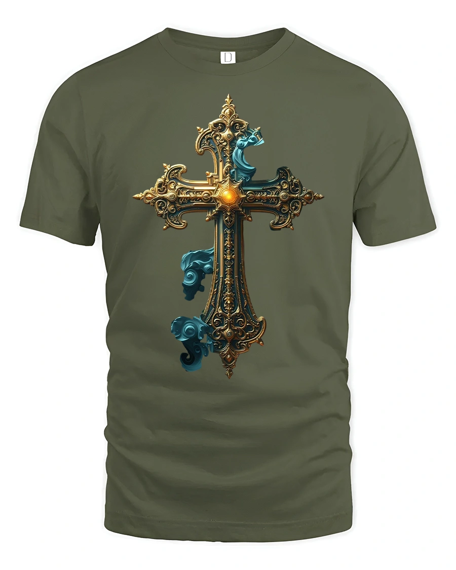 Golden Cross Faith and Light Christian Art T-Shirt is a stunning expression of belief, strength, and hope.