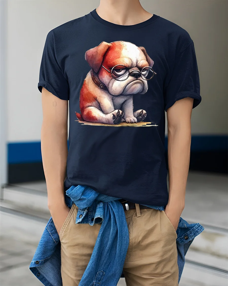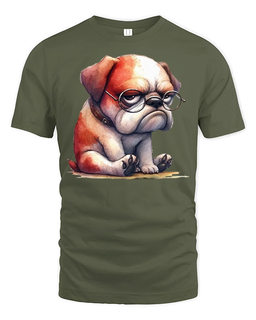 Grumpy Bulldog with Glasses Funny Dog Lover Tee Cute Attitude Tshirt captures the perfect mix of humor and personality with an adorable yet moody puppy design.