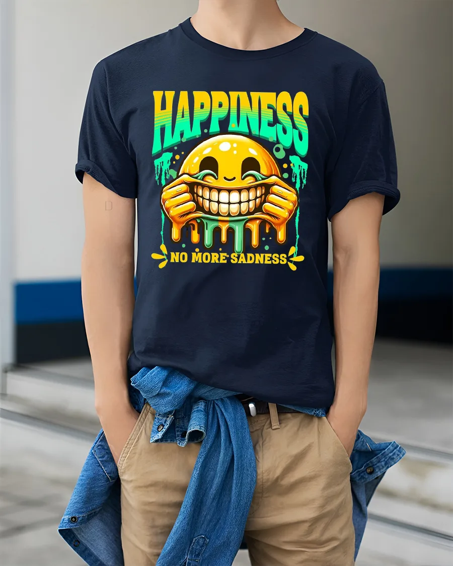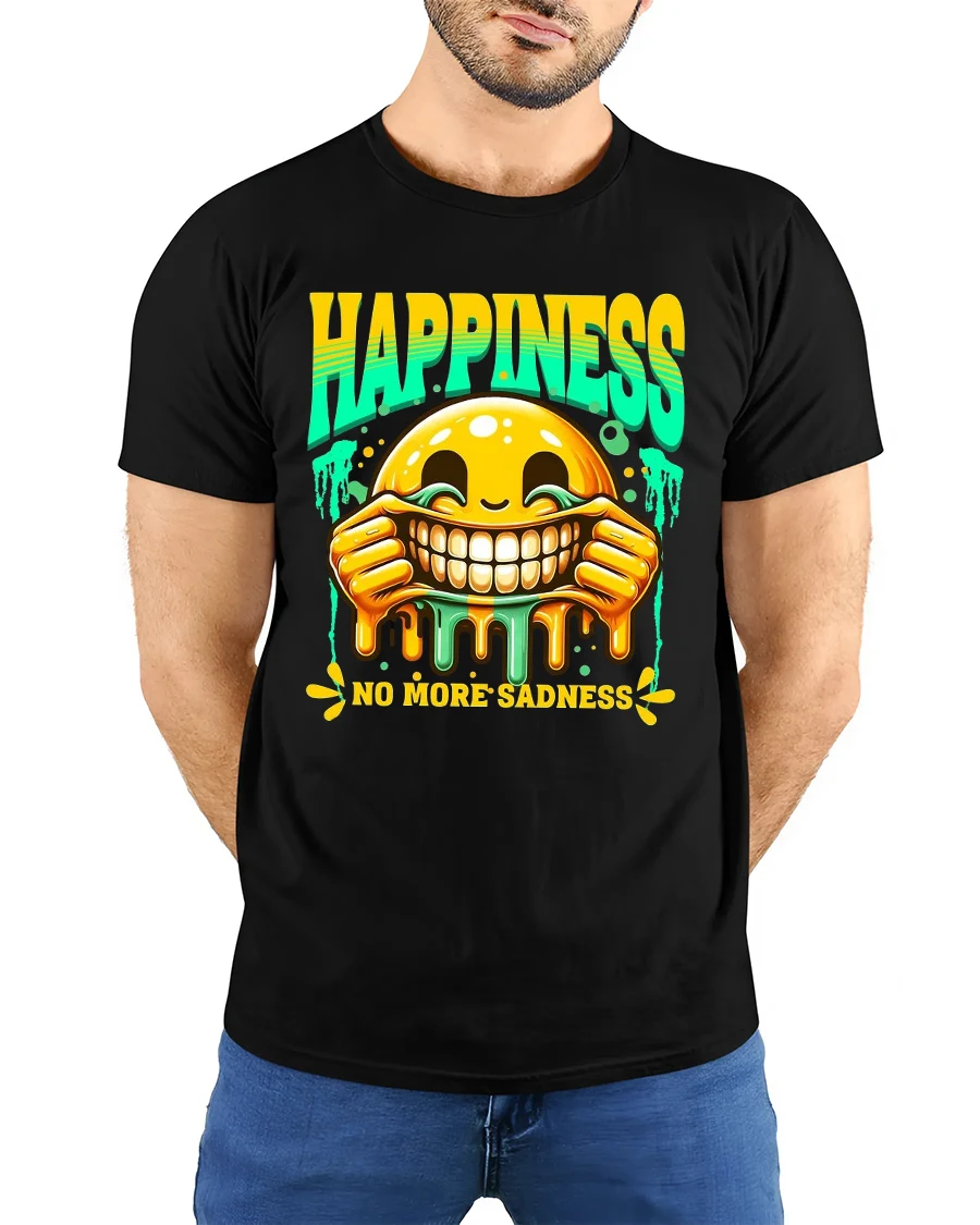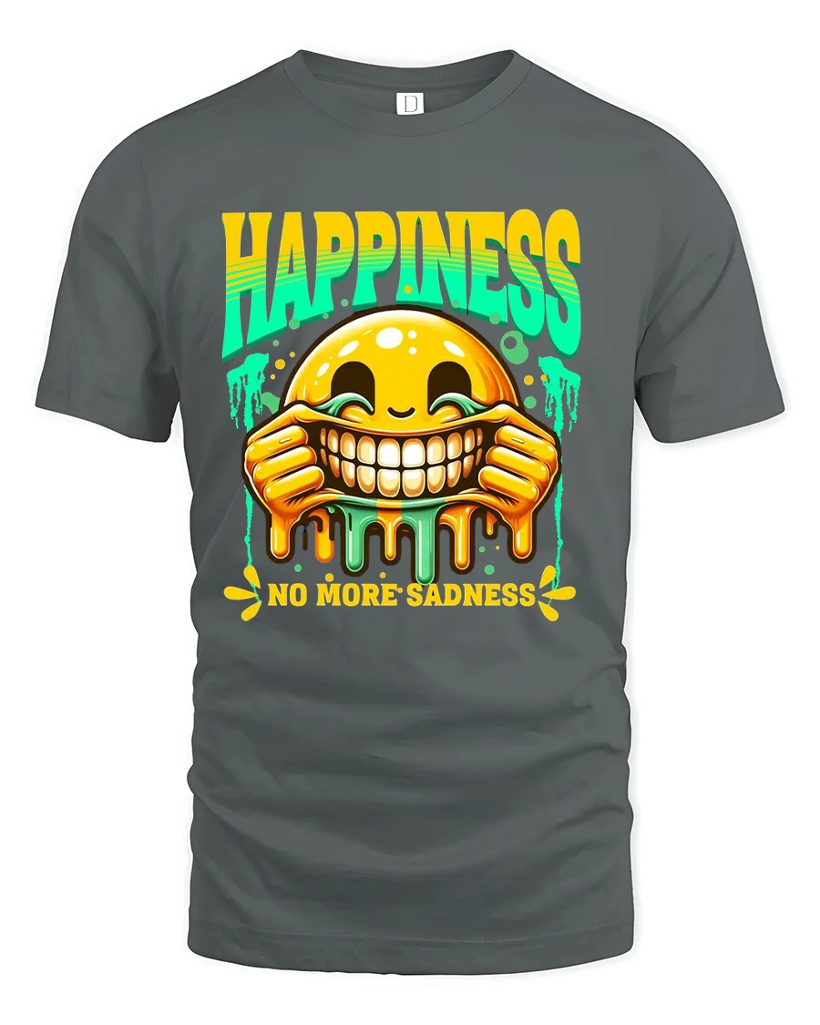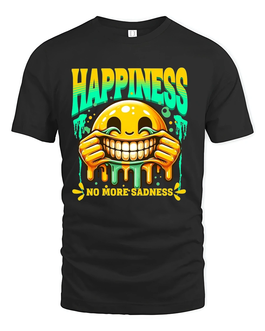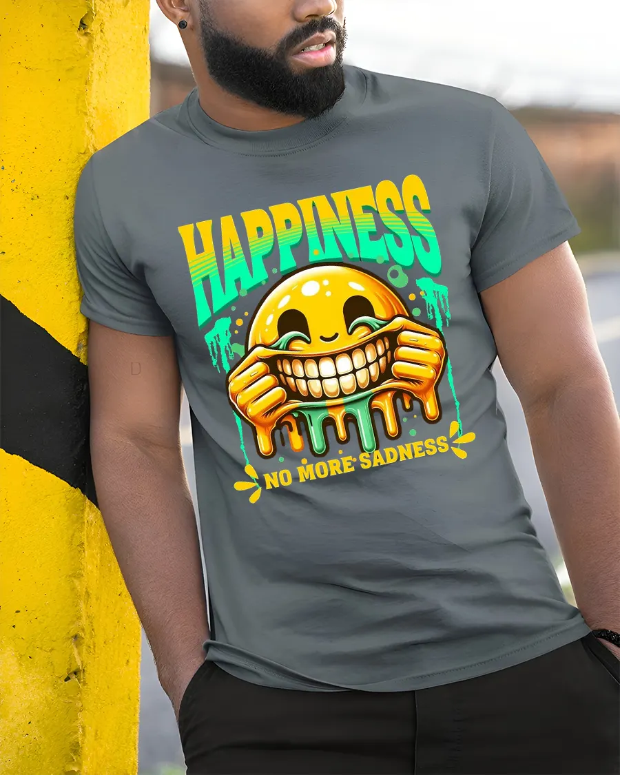Happiness No More Sadness Funny Smile Graphic Tee brings good vibes and laughter wherever you go.