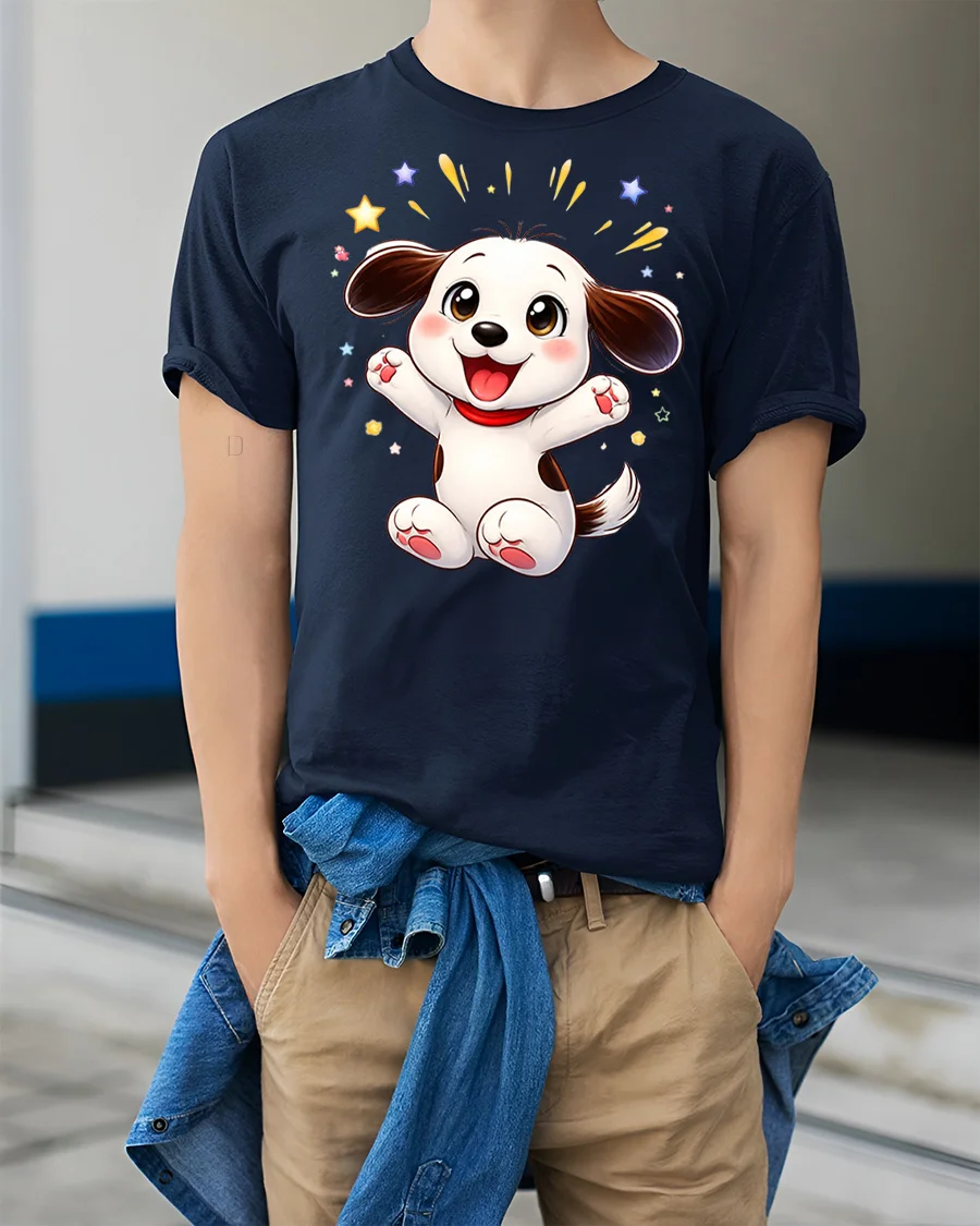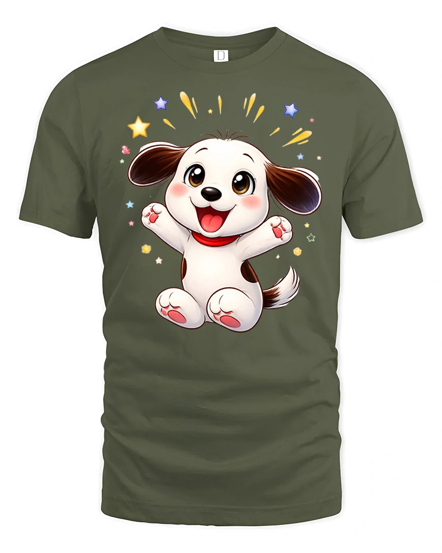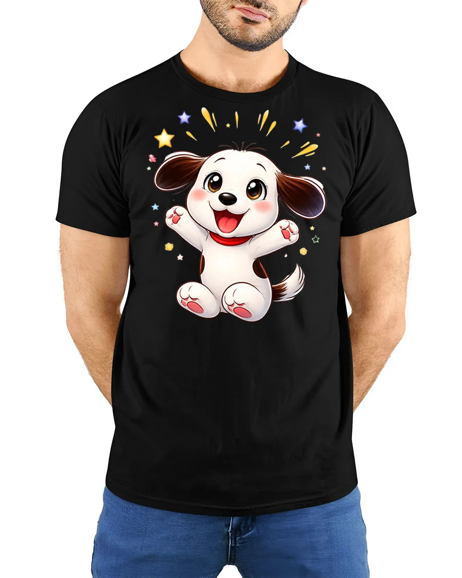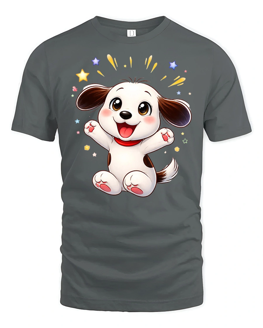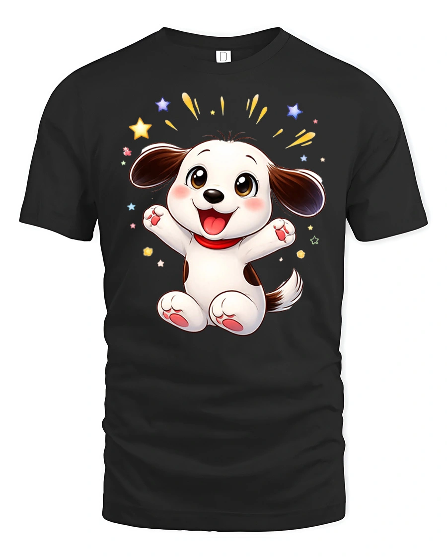 Happy Puppy Cartoon T Shirt Cute Dog Joyful Graphic Tee brings a burst of happiness with its playful and charming puppy design.