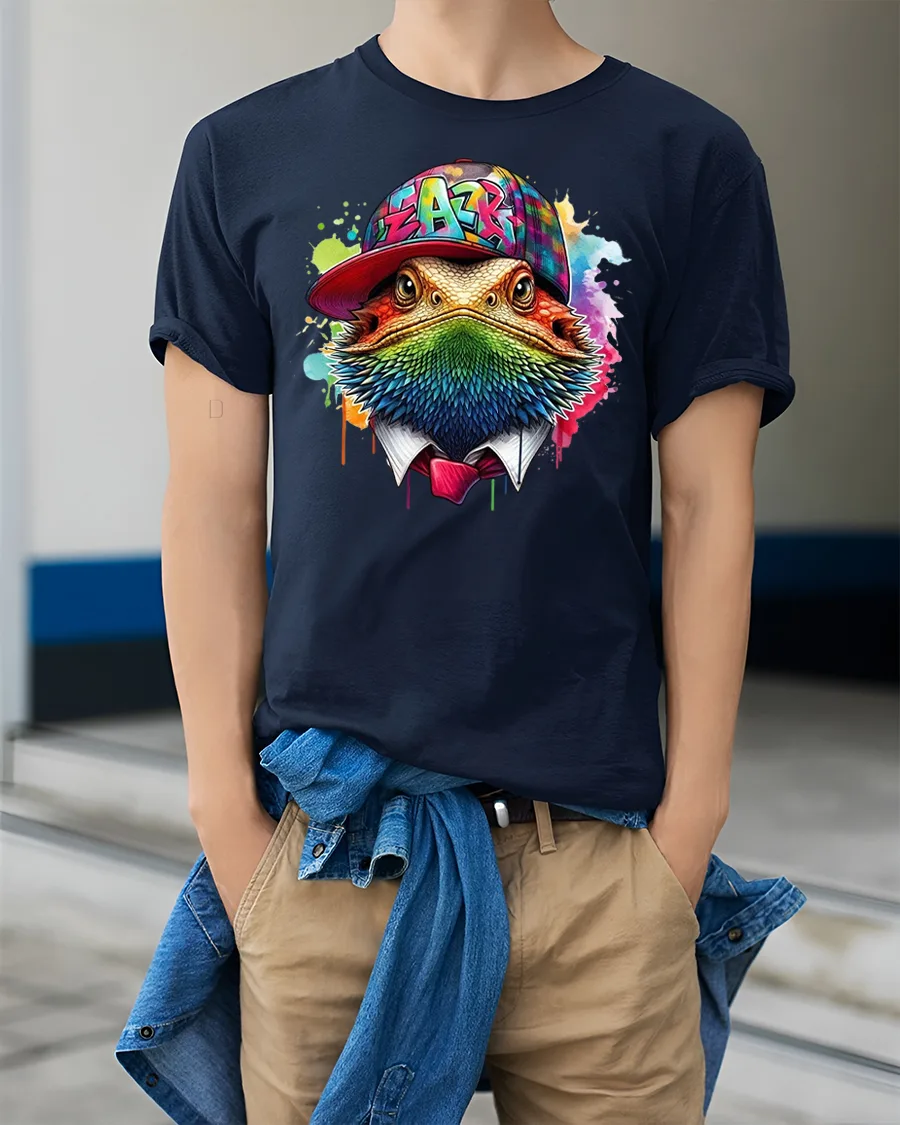 Printed on soft, breathable fabric, this tee is perfect for casual outings, streetwear looks, or simply showing off your love for reptiles in a unique way. The colorful paint splatter background adds an extra pop, making it a true statement piece for reptile enthusiasts and street art fans alike.
