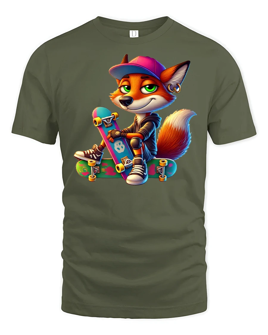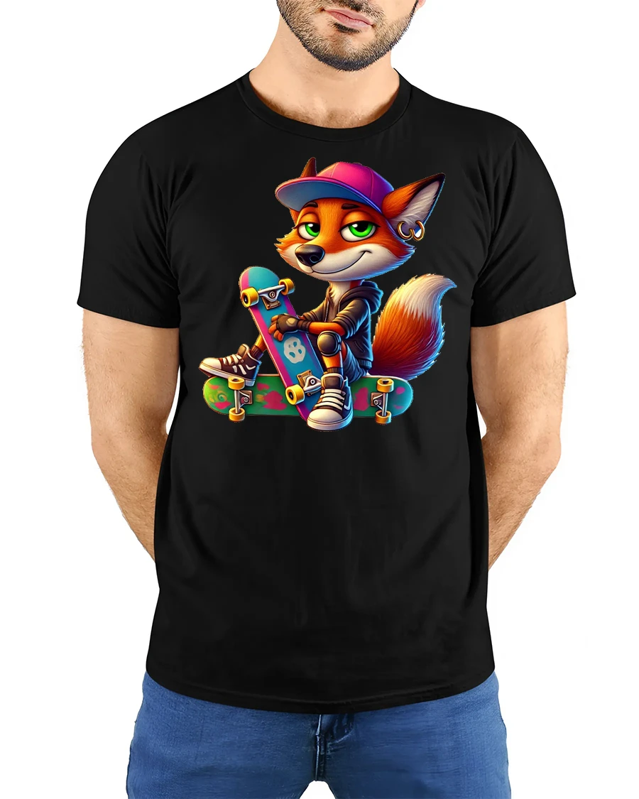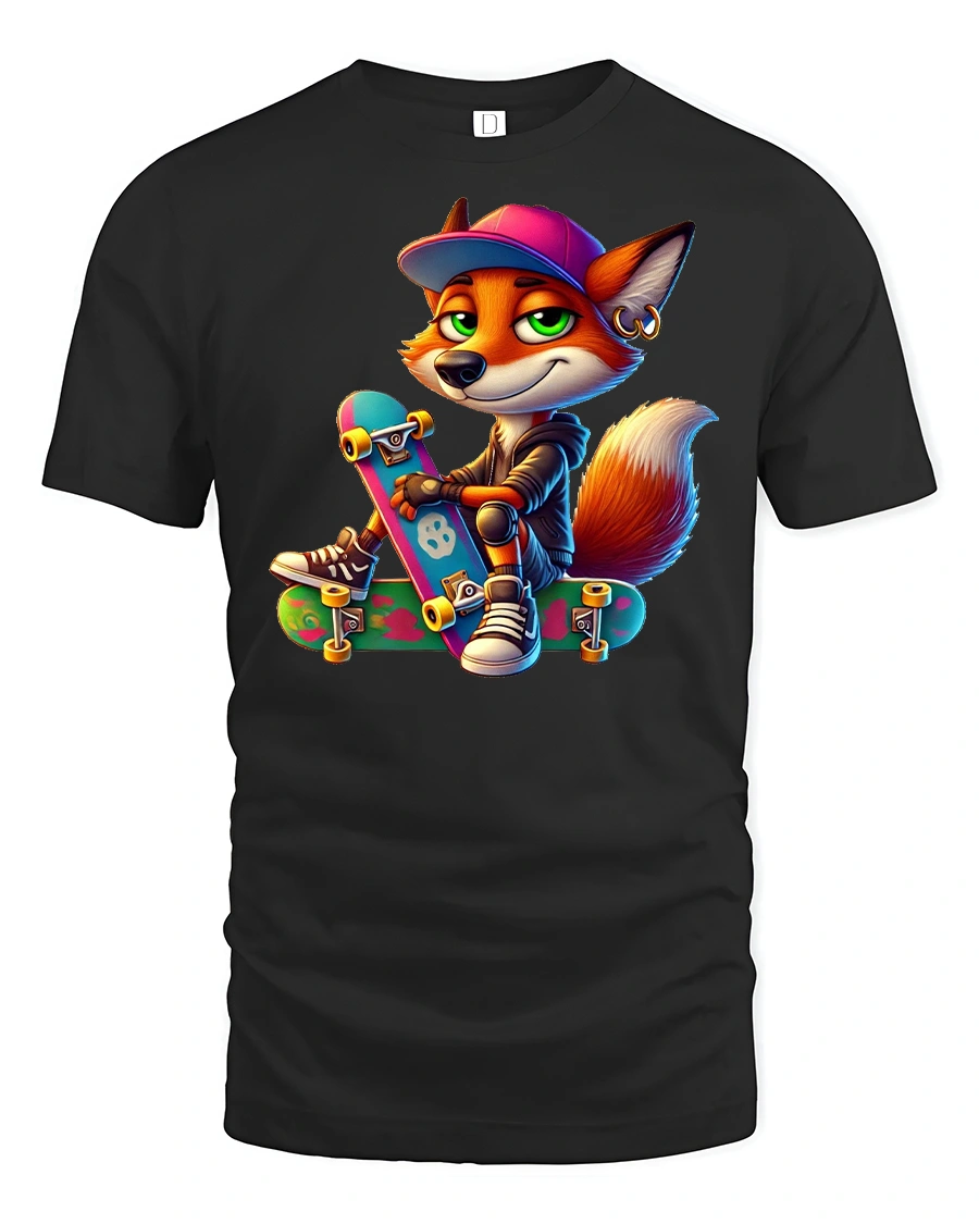 Perfect for skateboard enthusiasts, fox lovers, or anyone who enjoys cool and quirky graphic tees, this shirt makes a fantastic gift for birthdays, holidays, or just because. Show off your unique style and love for skating with a tee that stands out from the crowd while keeping you comfortable and confident.