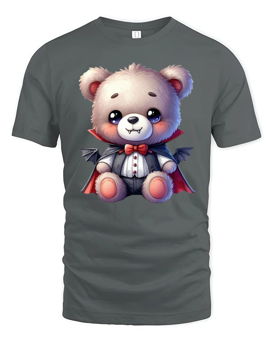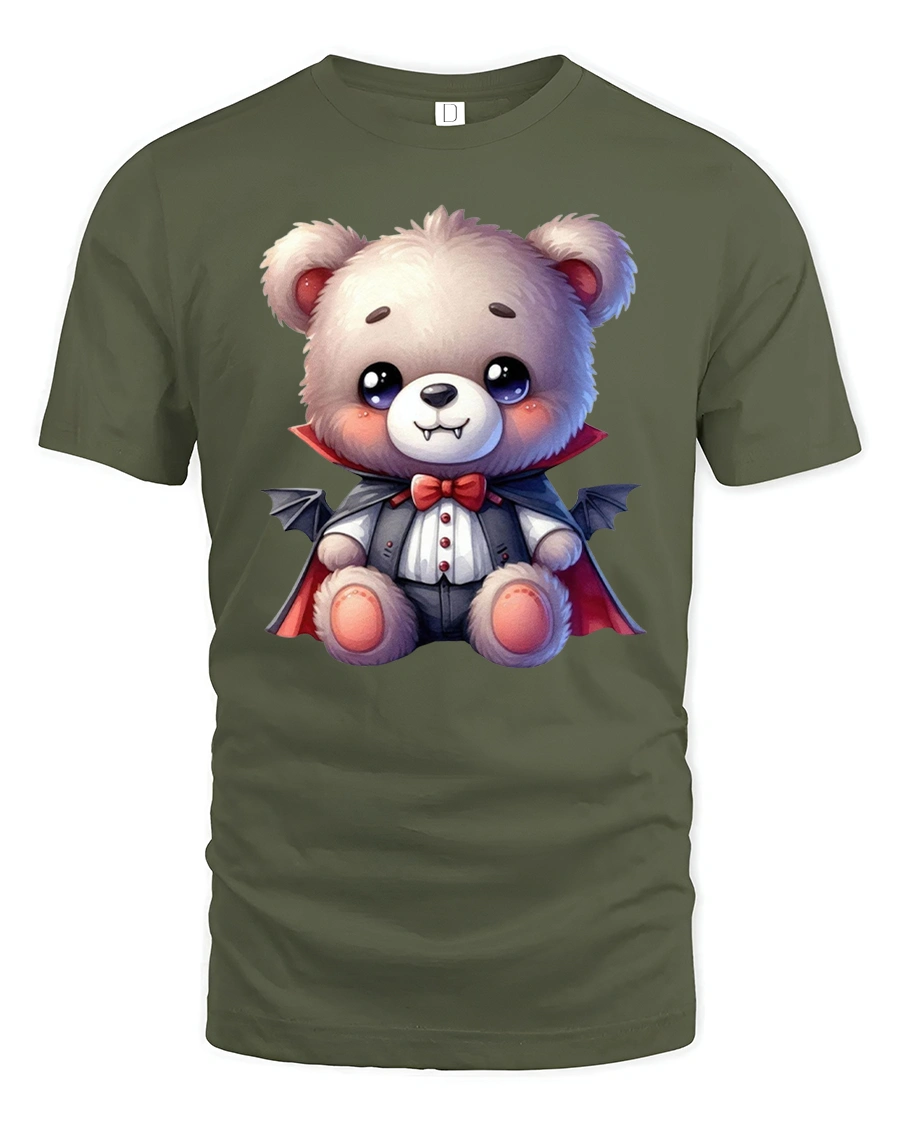 Get into the spooky season with the Adorable Vampire Teddy Bear Halloween T-Shirt. Featuring a cute teddy bear dressed in a vampire costume, complete with a cape and fangs, this design perfectly blends spooky and sweet. Whether you love Halloween, vampires, or just adorable designs, this tee is sure to turn heads and bring smiles.