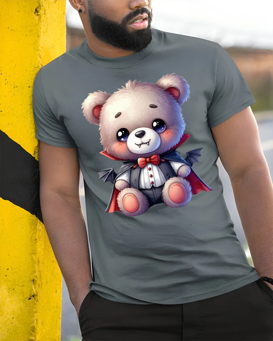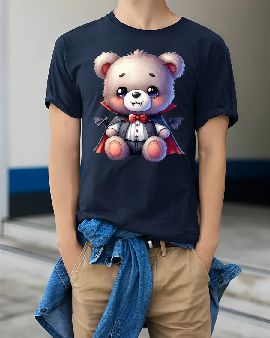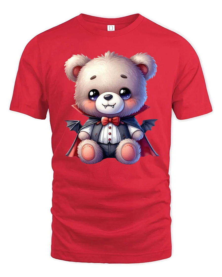 This shirt also makes a unique Halloween gift for kids, adults, or anyone who enjoys a playful twist on spooky fashion. Pair it with jeans, shorts, or even wear it as part of a lighthearted costume. No matter how you style it, this vampire teddy bear tee will add extra charm to your Halloween celebrations.
