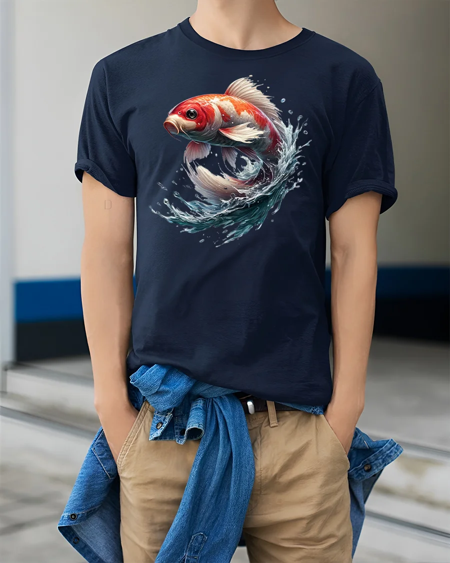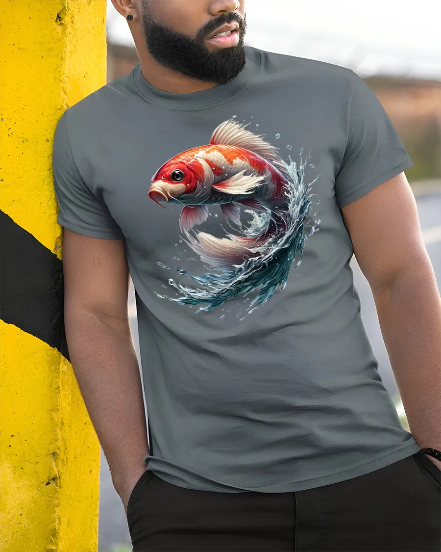 Wearing this tee is more than fashion—it’s a symbol of determination and good fortune, as koi fish are often associated with prosperity and resilience. Pair it with jeans, shorts, or a casual jacket for a versatile look that transitions from day to night effortlessly. Show your love for bold, artistic fashion with this stunning koi fish design.