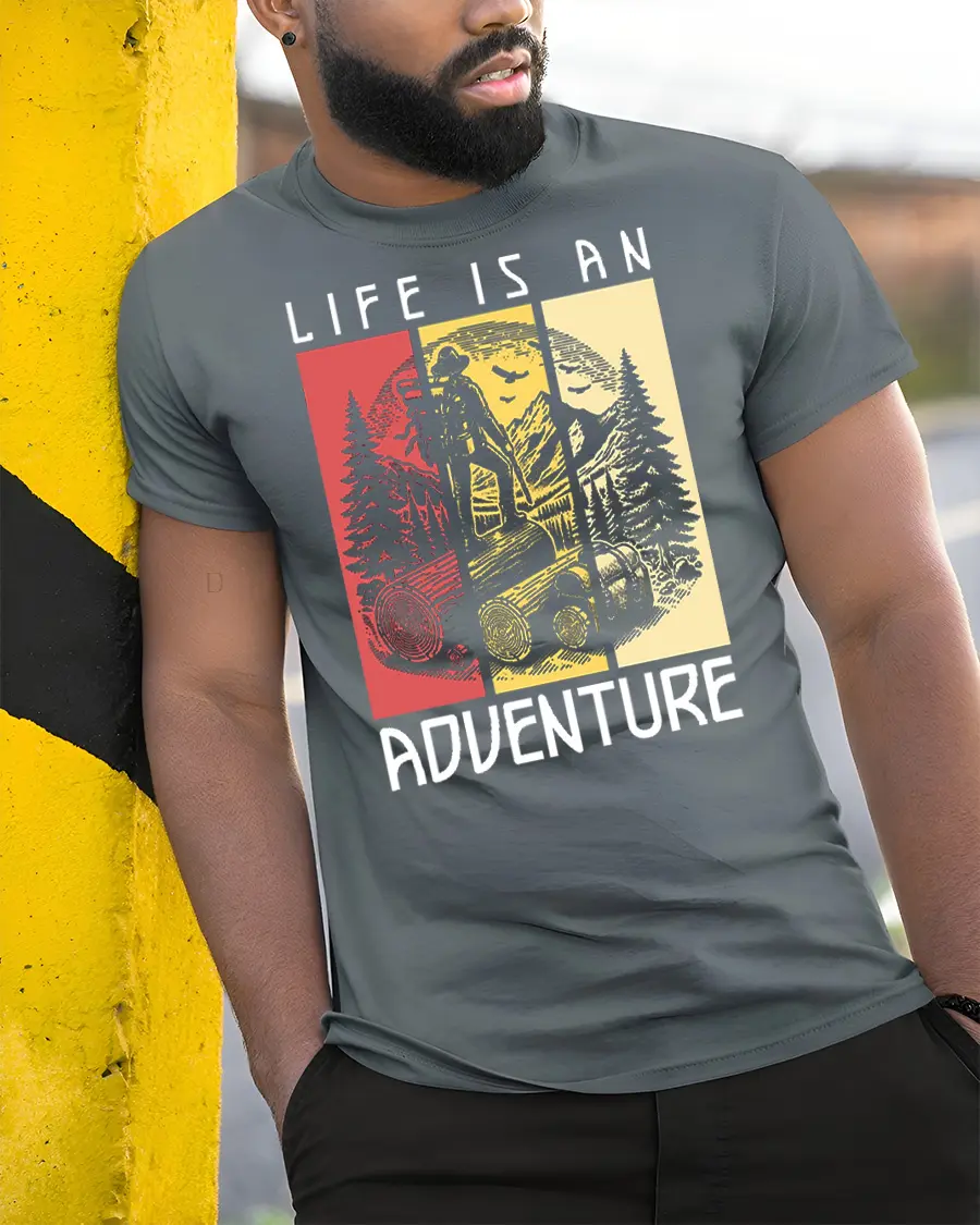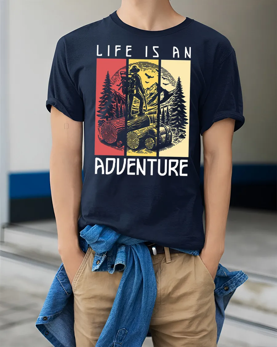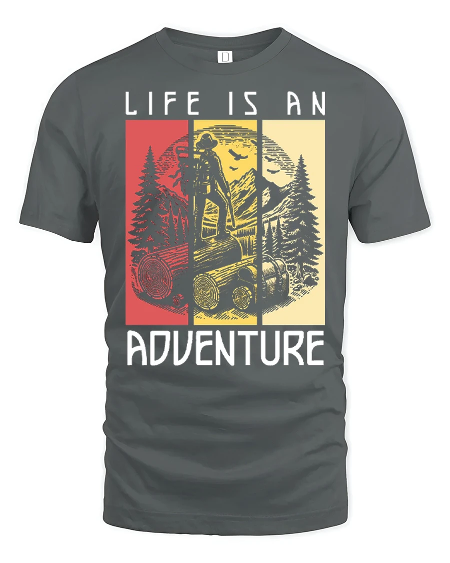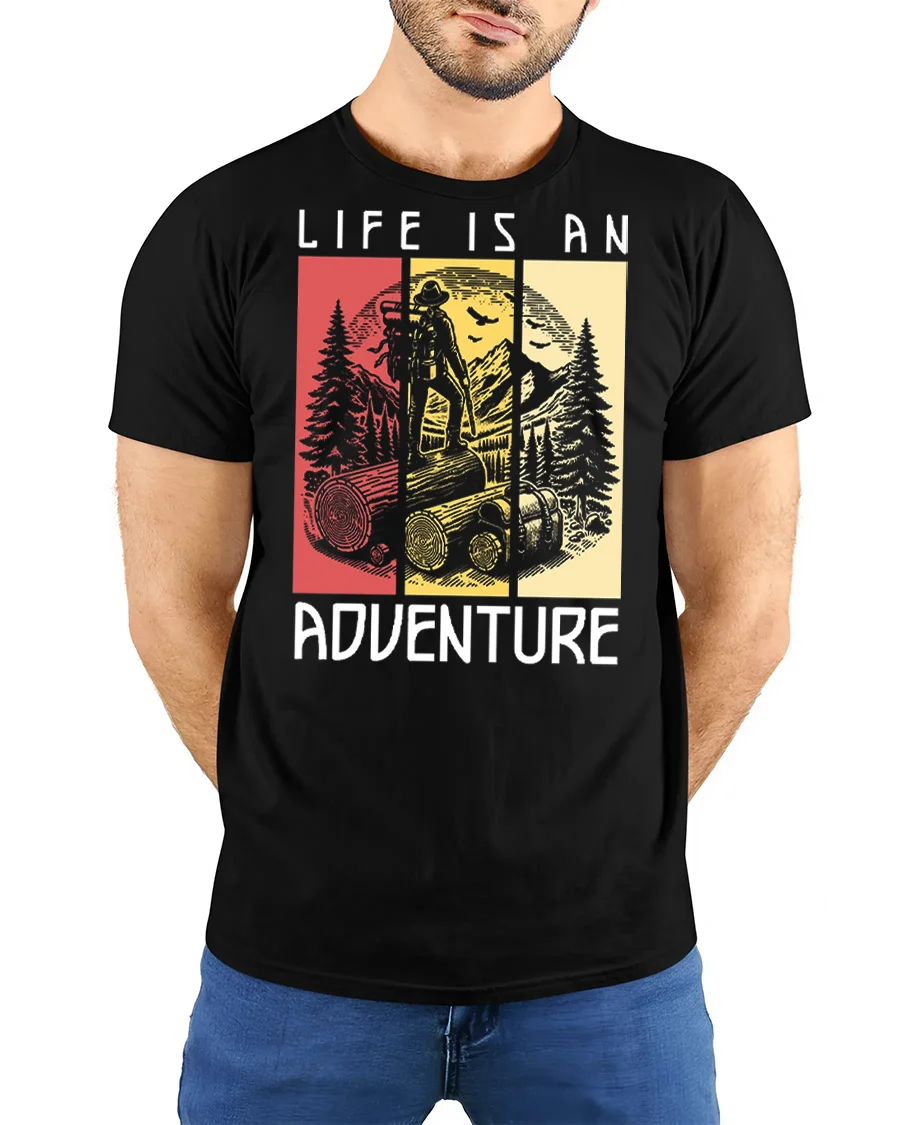 Life Is An Adventure Hiking Graphic T Shirt Vintage Outdoor Vibe captures the spirit of exploration and the beauty of the great outdoors.