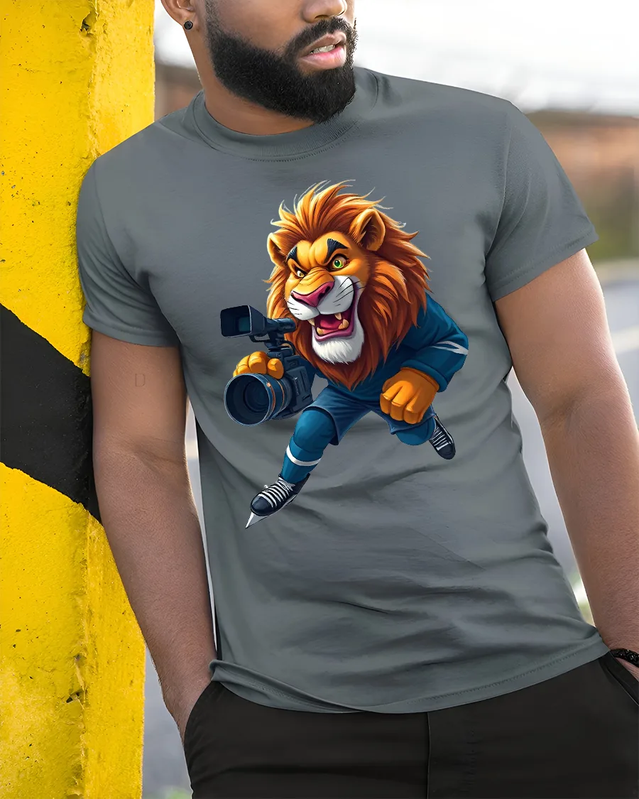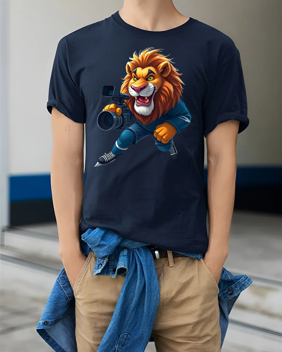 Made from soft, durable fabric, this tee ensures all-day comfort and style. Perfect as a personal wardrobe upgrade or as a gift for filmmakers, videographers, or lion lovers, it’s a versatile design that fits both casual wear and themed events. Step into the spotlight with this roaringly fun graphic t-shirt today.