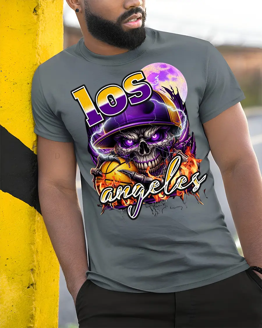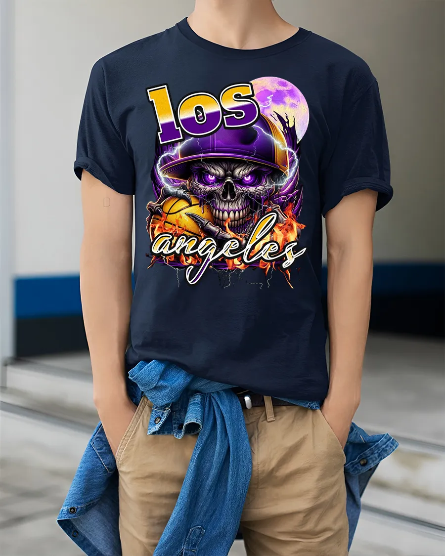 Los Angeles Skull Basketball Fire Neon Street Art Tshirt brings bold street-style energy to your wardrobe with its fierce skull design, glowing neon colors and flaming basketball artwork. The vivid purple tones, intense fire effects and electric city vibe make this tee perfect for anyone who loves expressive urban designs with attitude. Whether you’re a fan of basketball, edgy art or LA-inspired fashion, this shirt stands out instantly.