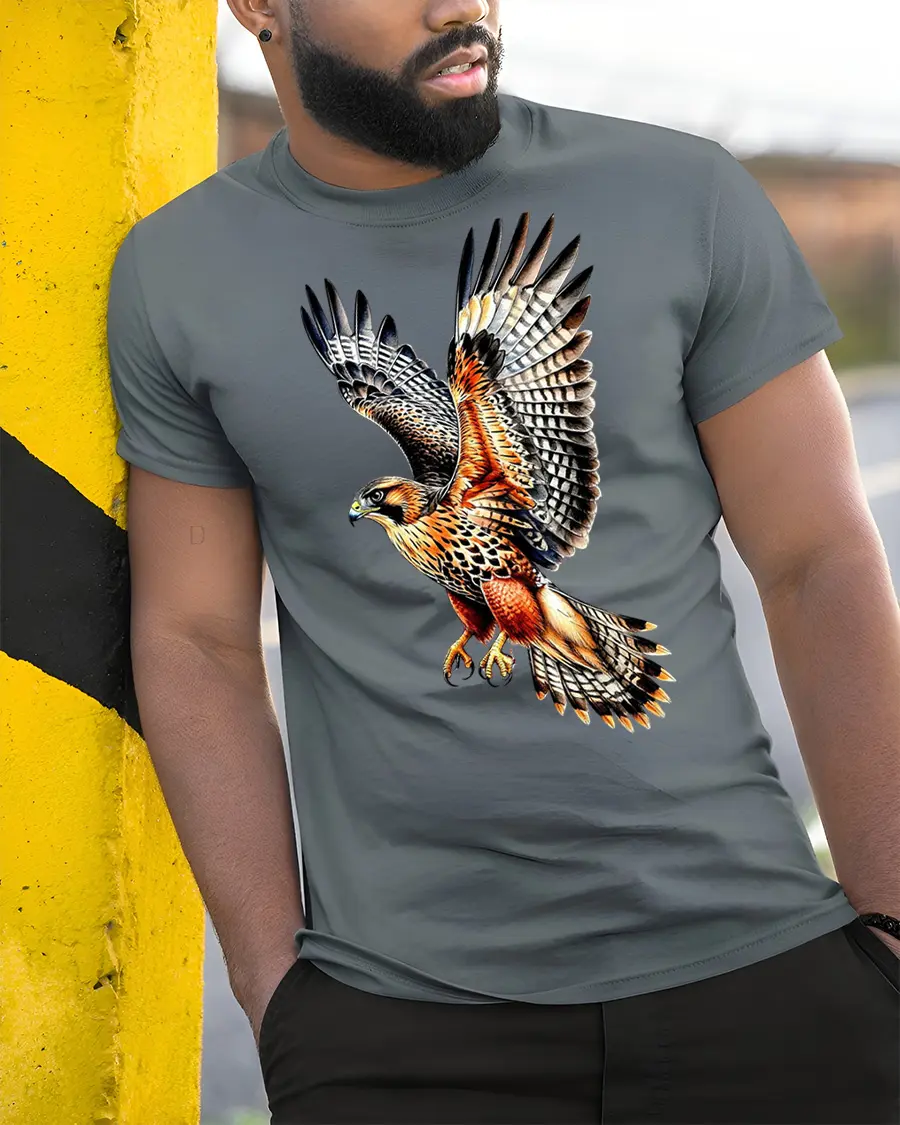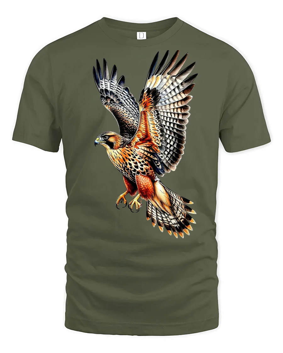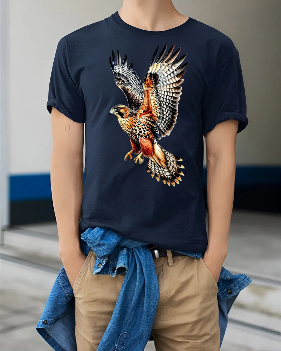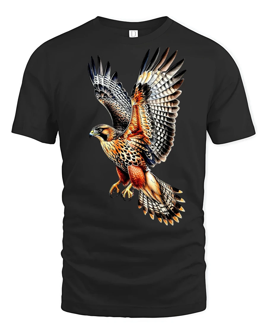 Majestic Flying Hawk Bird Of Prey Wildlife Graphic T Shirt Nature Art Tee expresses admiration for the wild and the breathtaking beauty of birds in flight.