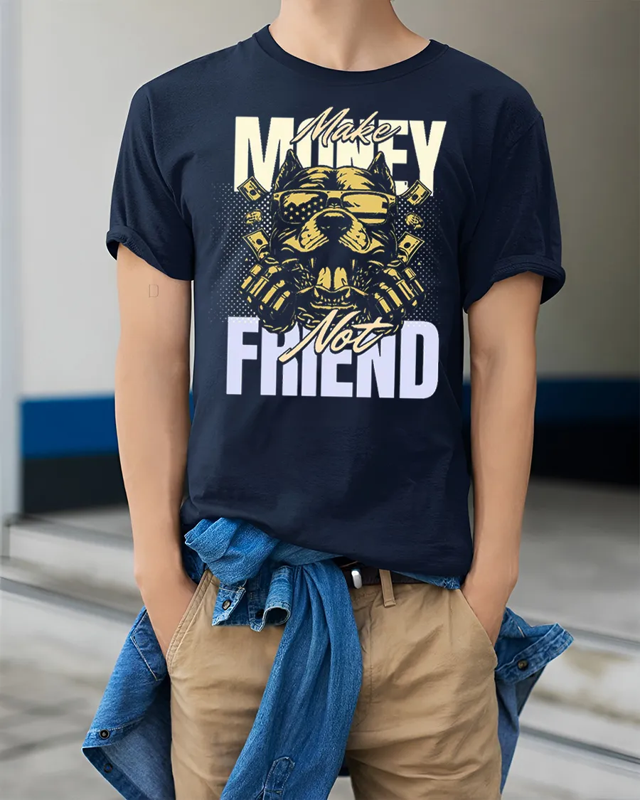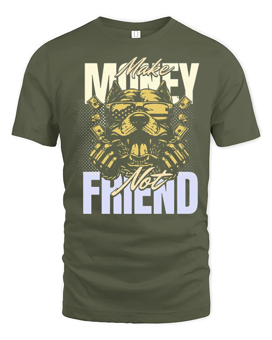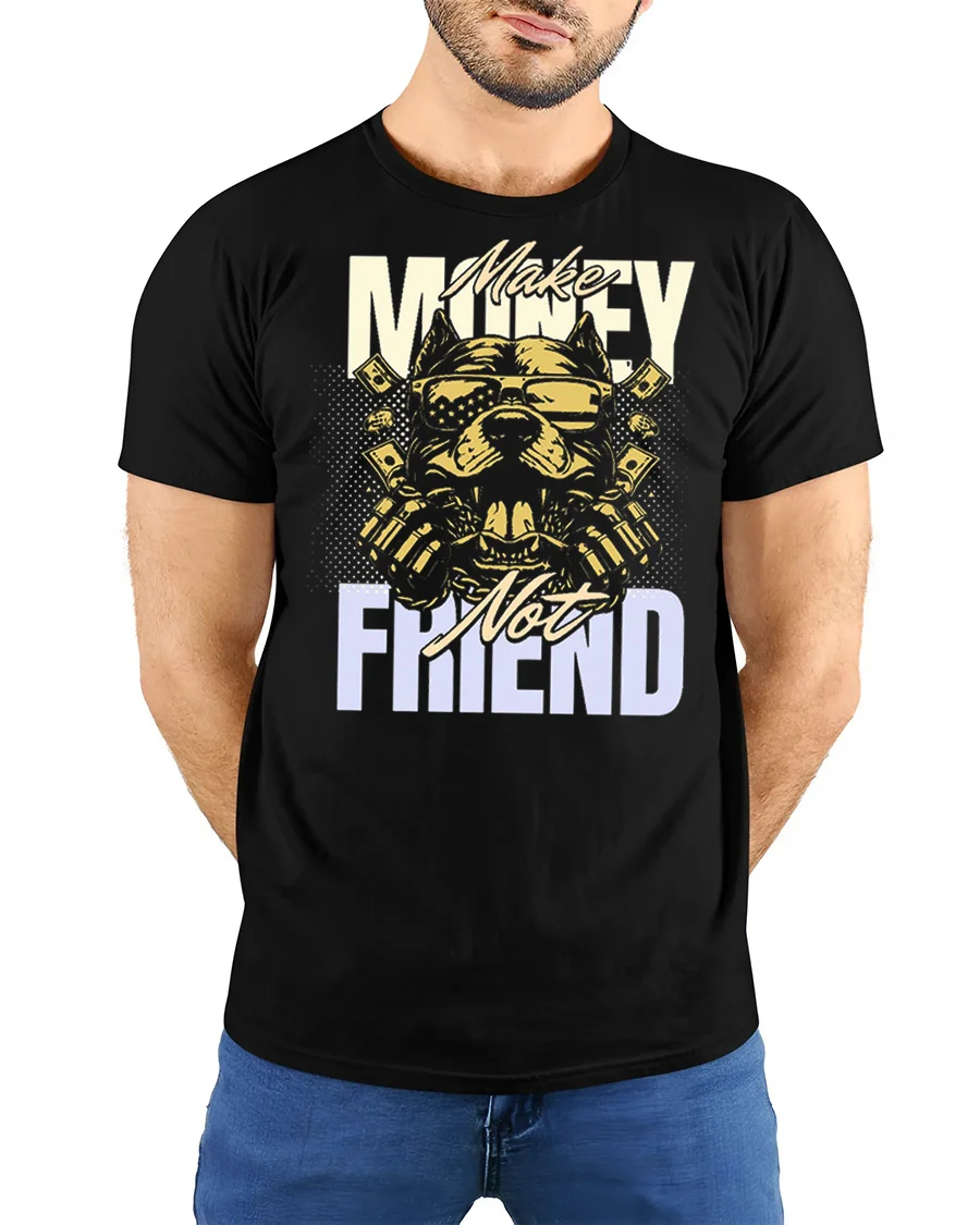 Make Money Not Friend Bulldog Graphic T Shirt Funny Tee brings bold humor, hustle energy, and streetwear attitude into one standout design.