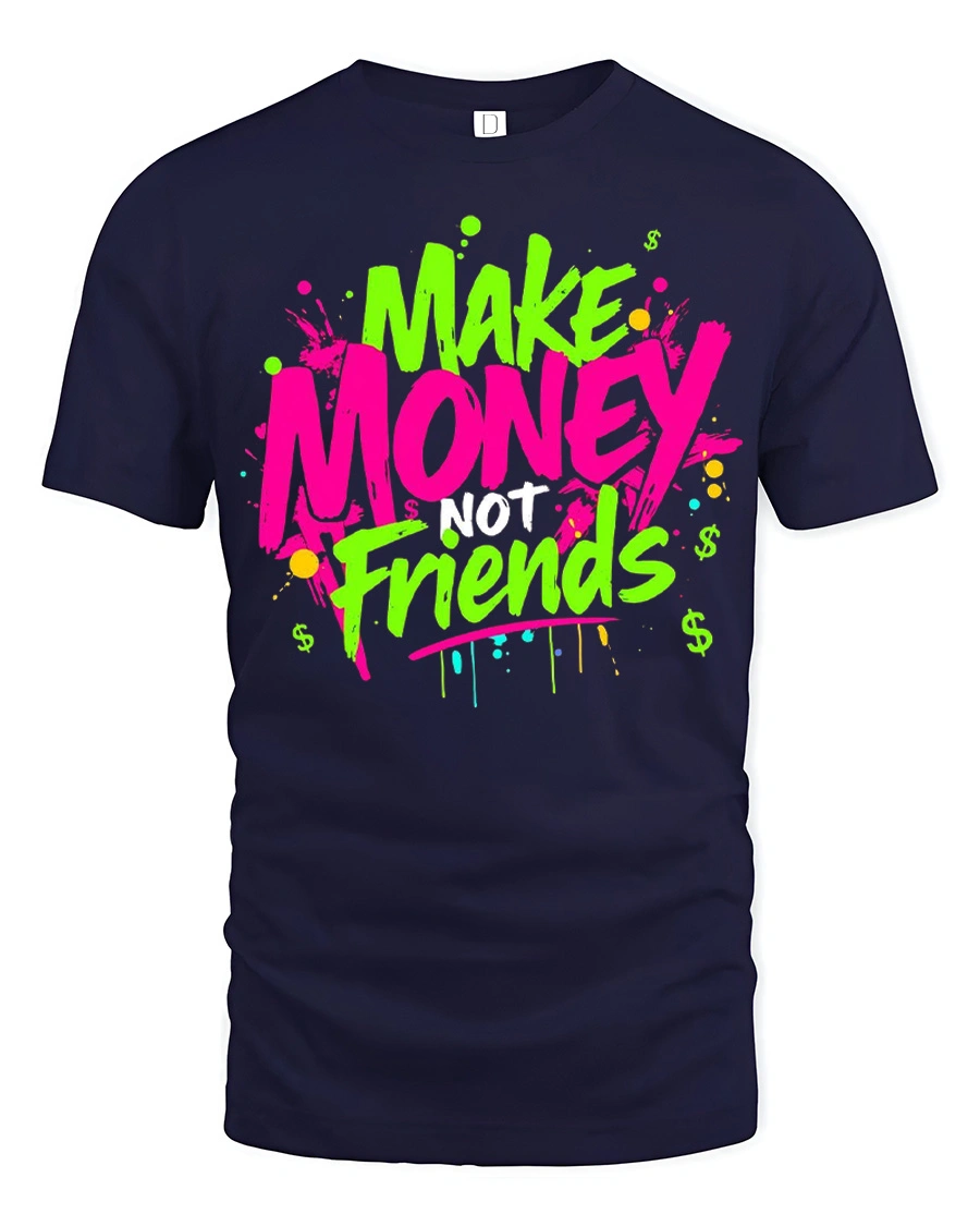 Make Money Not Friends Funny Hustle Graphic Tshirt Bold Style delivers a striking message with vibrant graffiti inspired typography that stands out instantly.