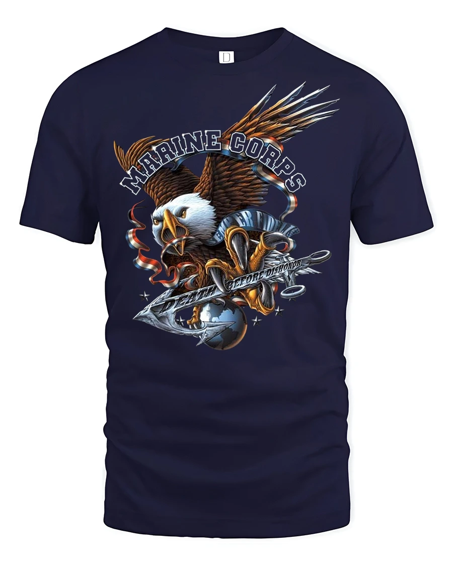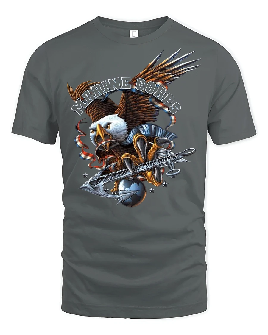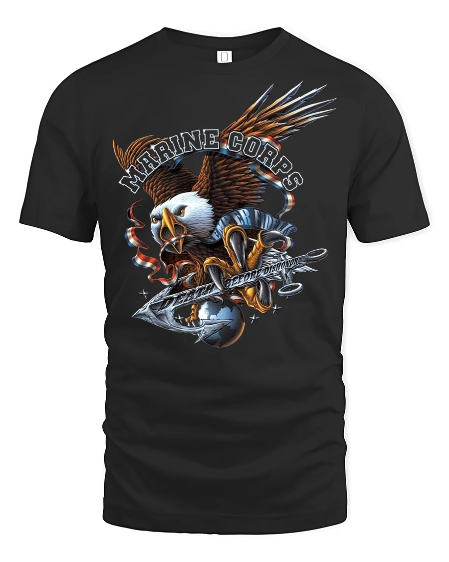 Whether worn for casual outings, Veterans Day events, or military reunions, the Marine Corps Eagle Death Before Dishonor T-Shirt stands as a proud salute to those who serve and protect.