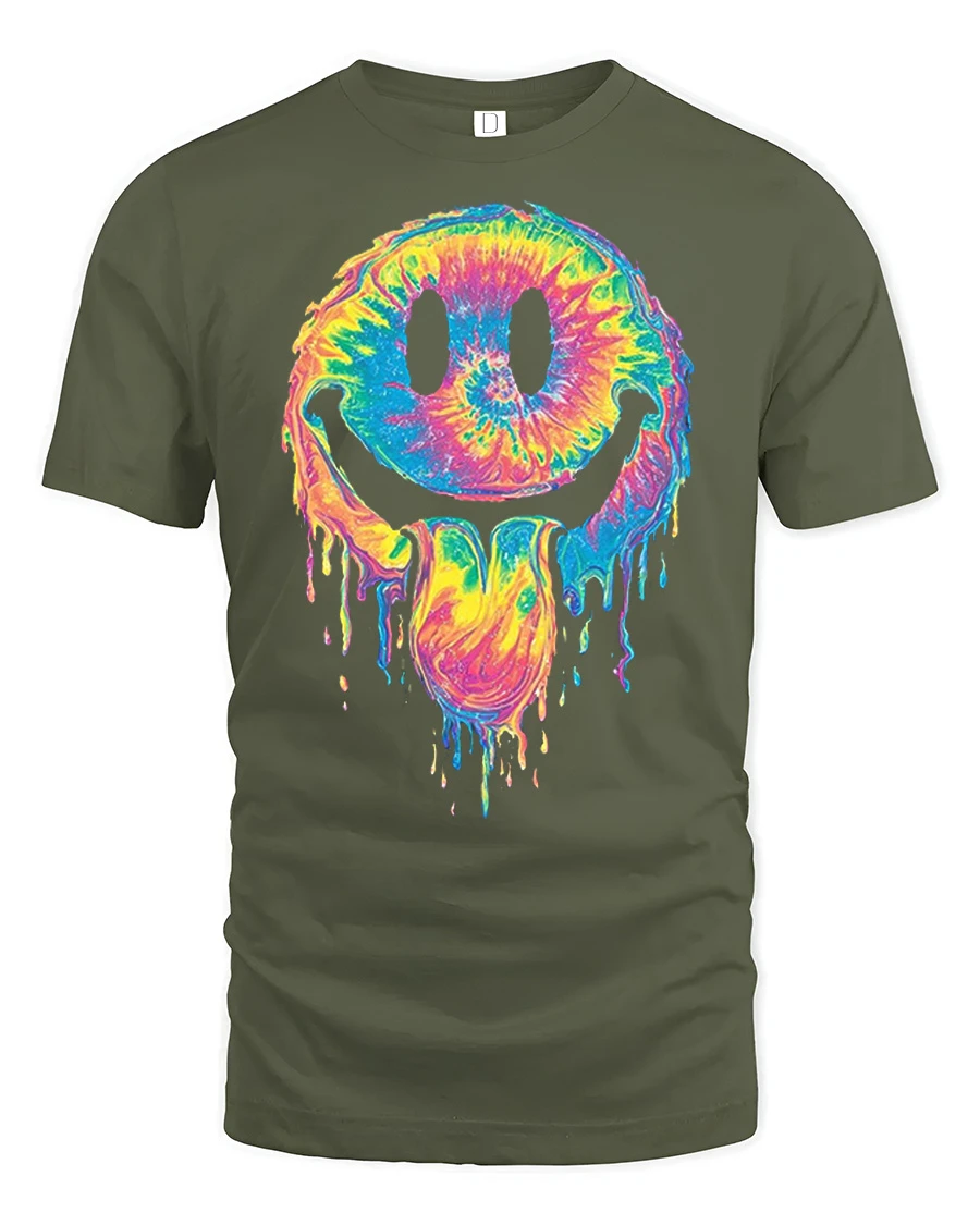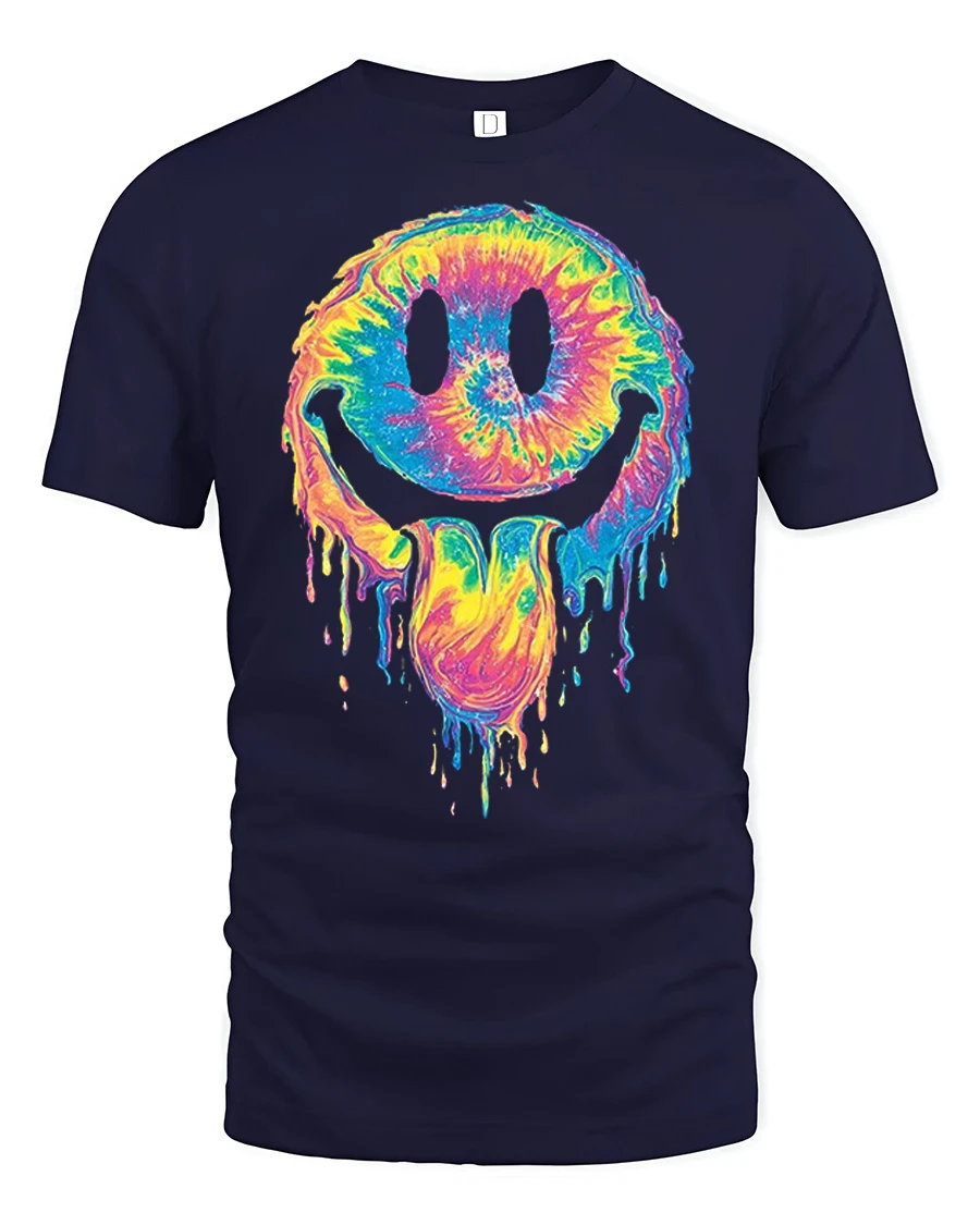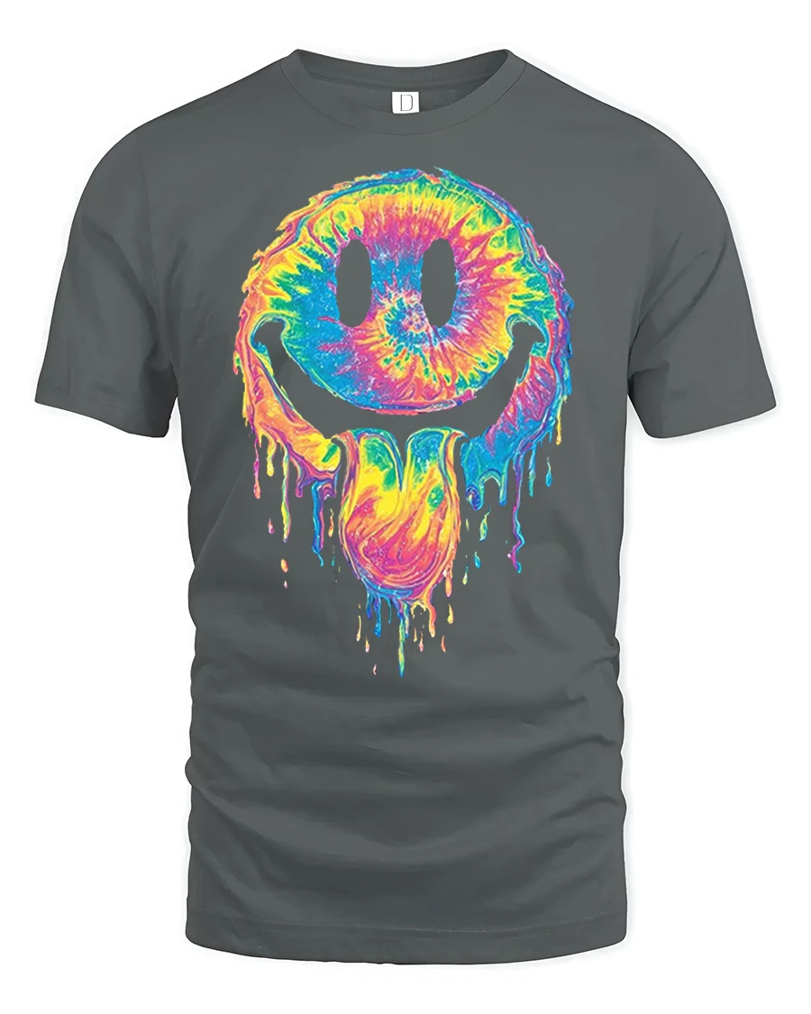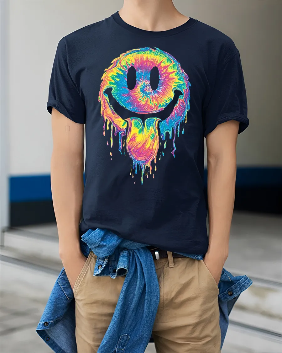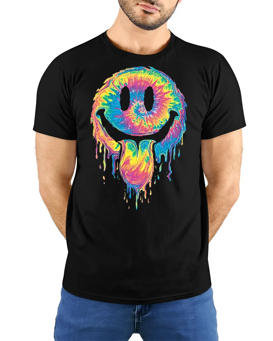 This graphic t shirt is made from soft comfortable fabric that feels light and breathable all day. The high quality print keeps the colors vibrant and detailed even after many washes. This shirt is perfect for casual wear, streetwear outfits, parties, festivals, or everyday fashion. The funny melting smiley design makes this graphic tee a stylish and fun addition to any graphic t shirt collection.