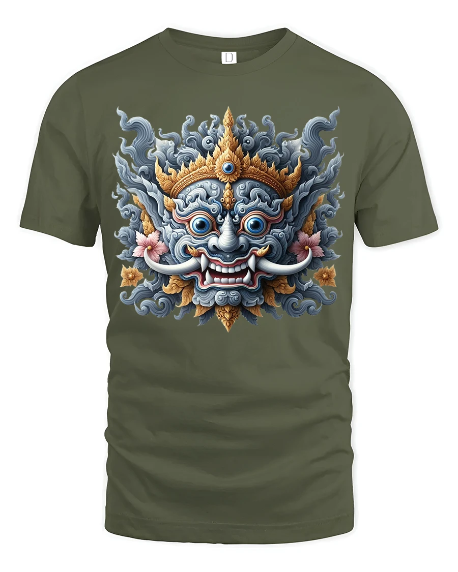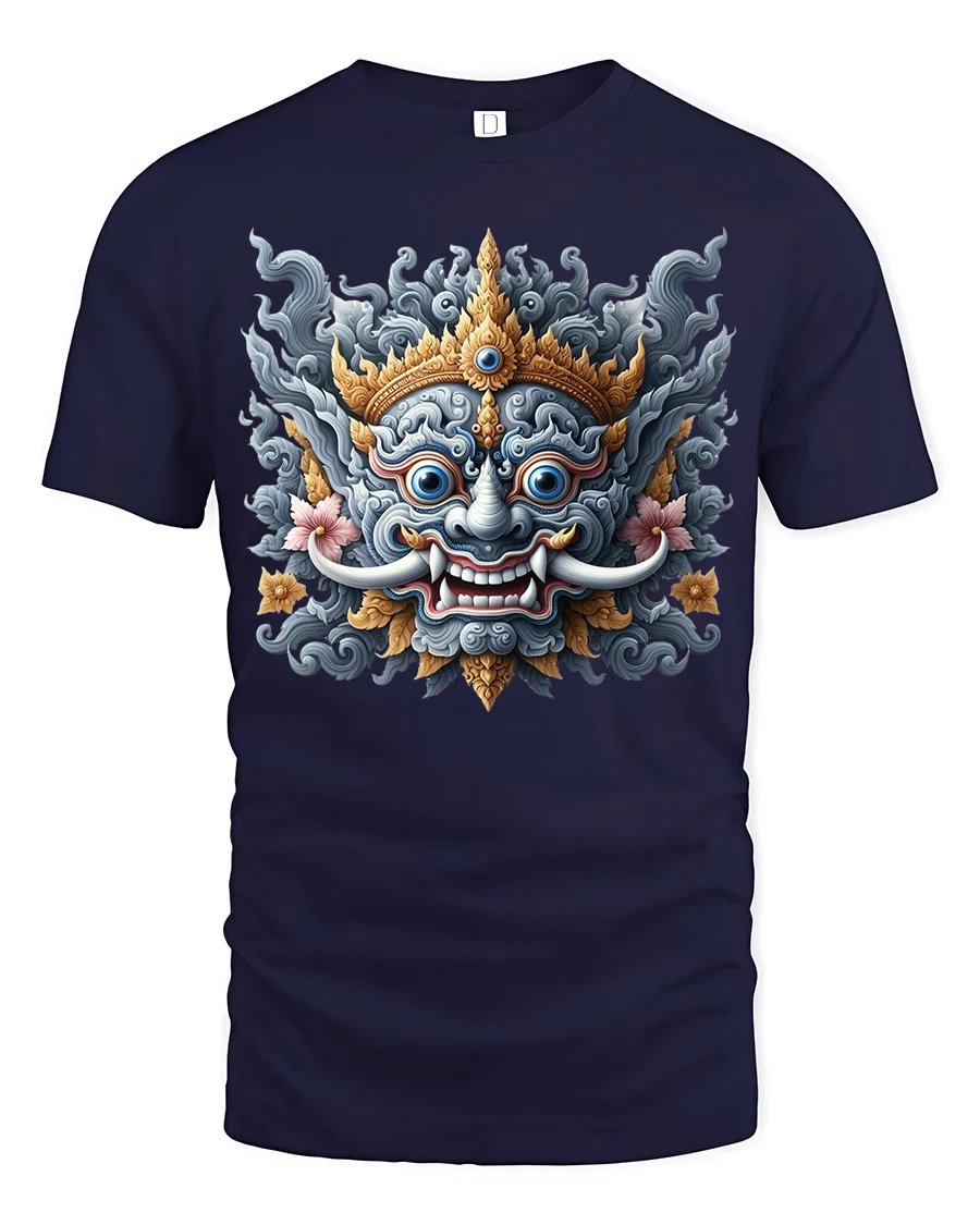 This Mythic Guardian Mask Tee Intricate Asian Spirit Art Tshirt brings striking cultural artistry and bold mythical energy to your wardrobe. Featuring an ornate guardian mask with detailed patterns, golden accents and flowing shapes, this design captures the essence of ancient legends and spiritual protectors. The expressive face and elegant decorative elements create a powerful visual statement that instantly stands out.